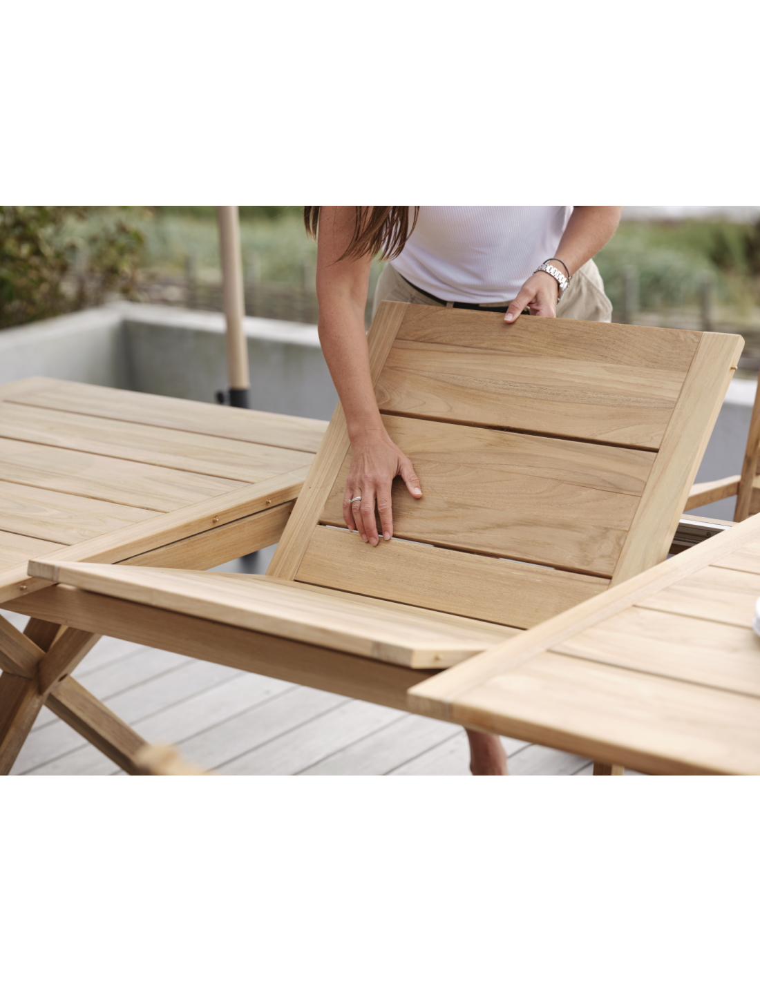 Mesa Extensible Exterior BRUTUS 200/265x100 cm de Comedor, Madera de Teca Natural - Brafab