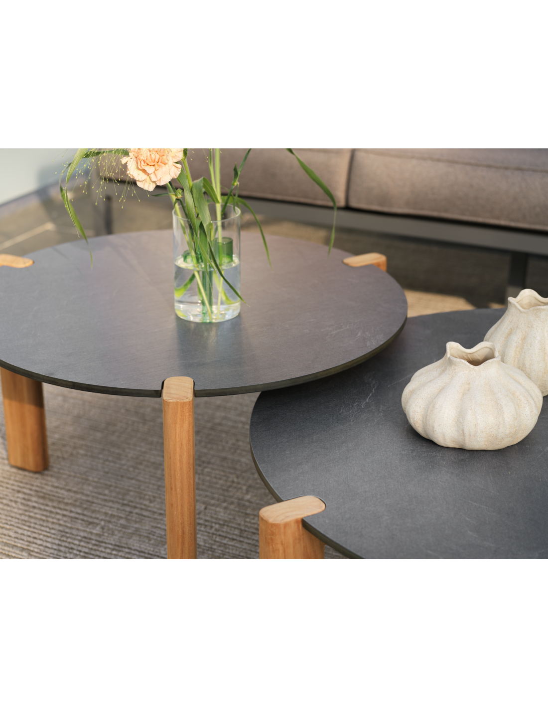 Mesas de centro en dos alturas diferentes mejoran tanto el disfrute como la practicidad de tu espacio exterior. Las mesas Domino aportan un extra de elegancia y materiales de primera calidad, con patas robustas de teca y un resistente tablero laminado.