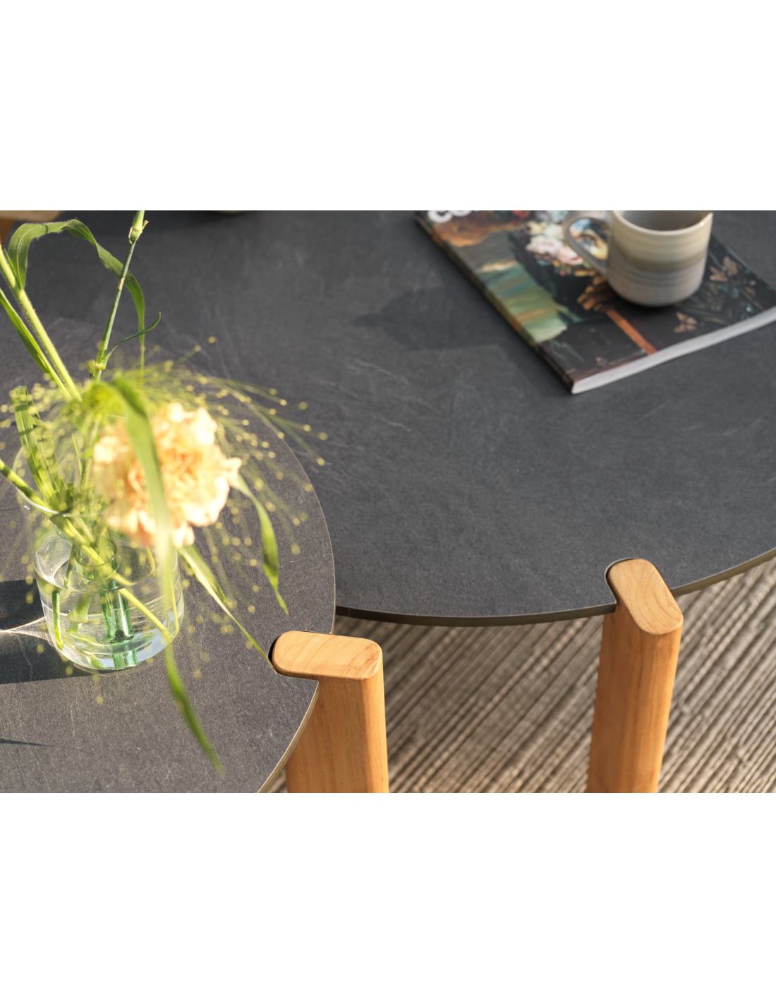 Mesas de centro en dos alturas diferentes mejoran tanto el disfrute como la practicidad de tu espacio exterior. Las mesas Domino aportan un extra de elegancia y materiales de primera calidad, con patas robustas de teca y un resistente tablero laminado.