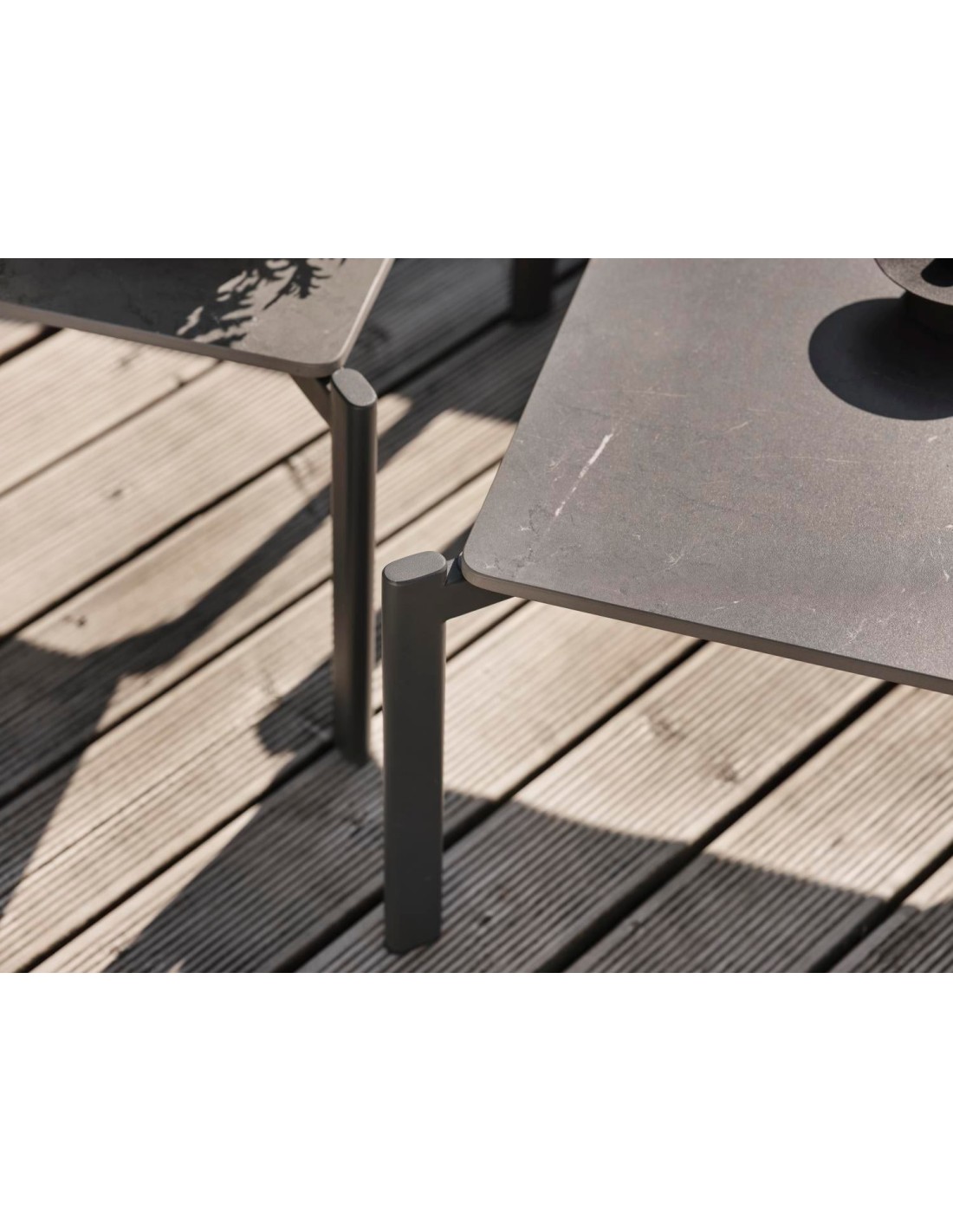 Mesa de Centro Exterior HALLAVARA 56x66 cm, Acero Inox, Piedra compuesta / Antracita / Gris - Brafab