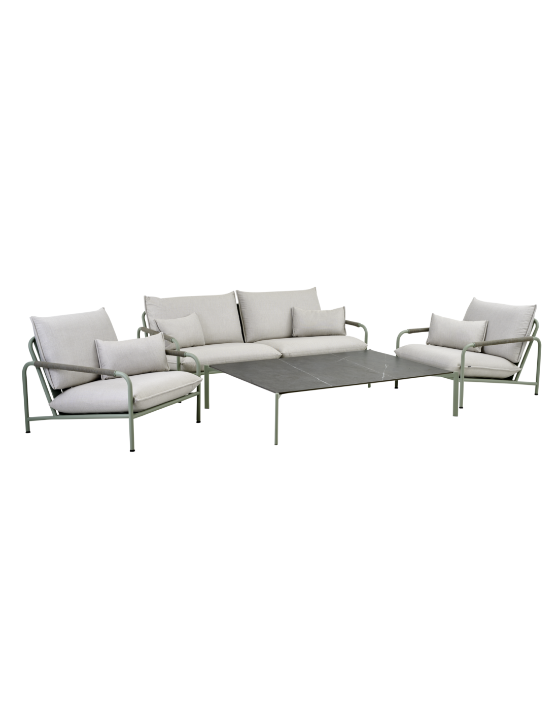 Mesa de Centro Exterior HALLAVARA 162x112 cm, Acero Inox, Piedra compuesta / Verde Empolvado / Gris - Brafab