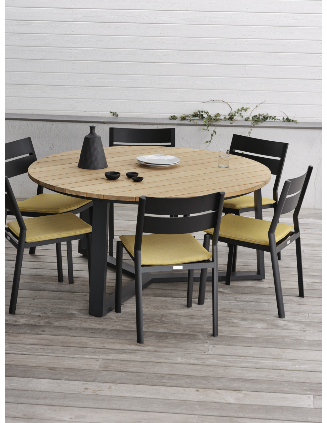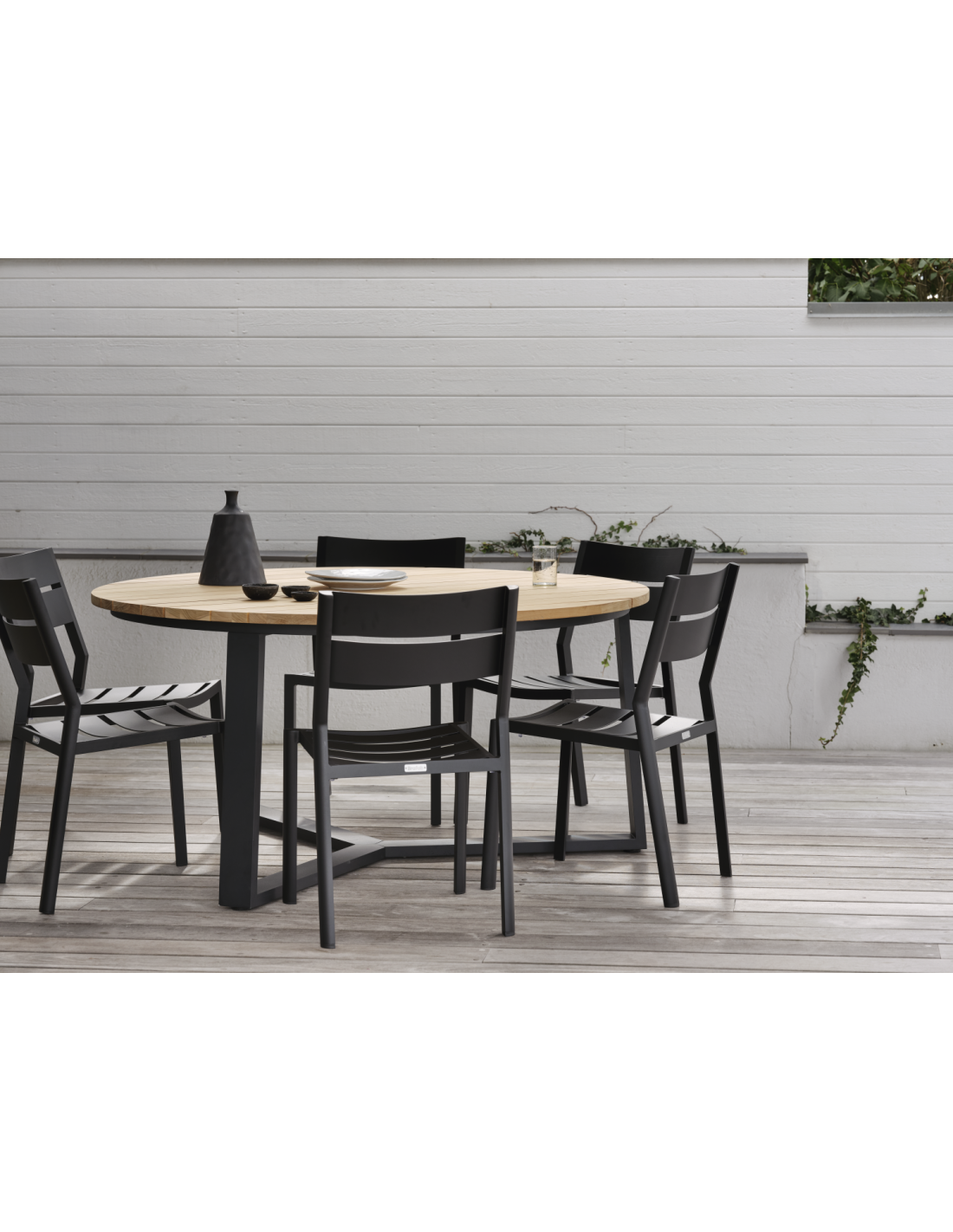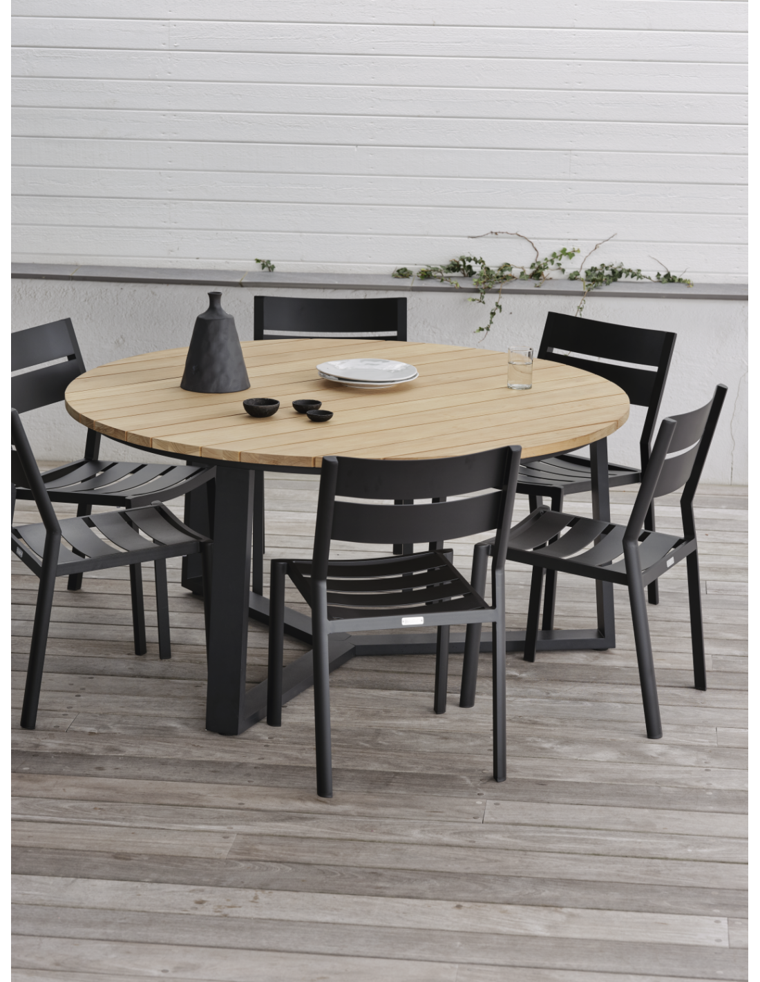 Mesa Exterior LAURION Ø150 cm de Comedor, Madera de Teca, Aluminio / Negro / Natural - Brafab