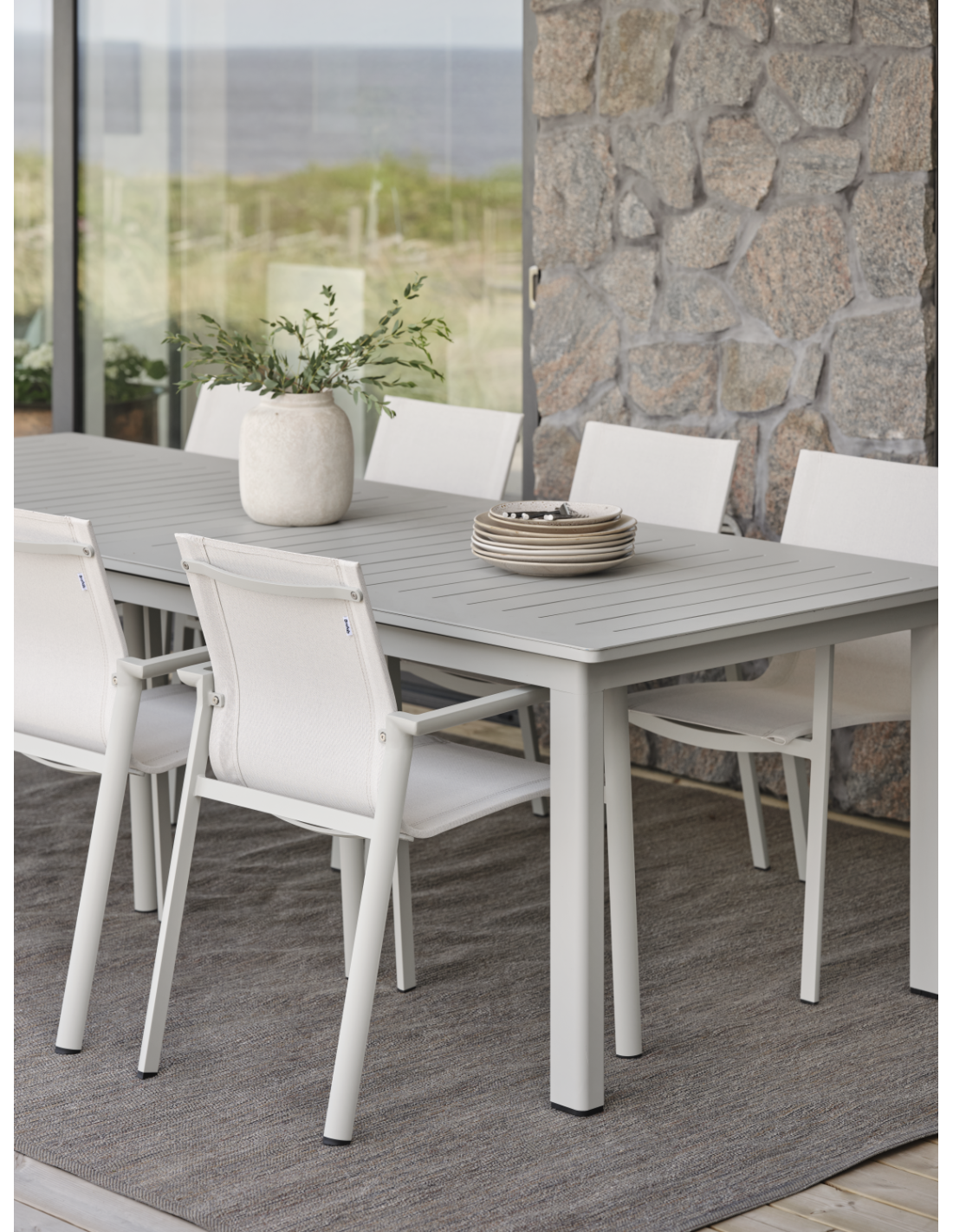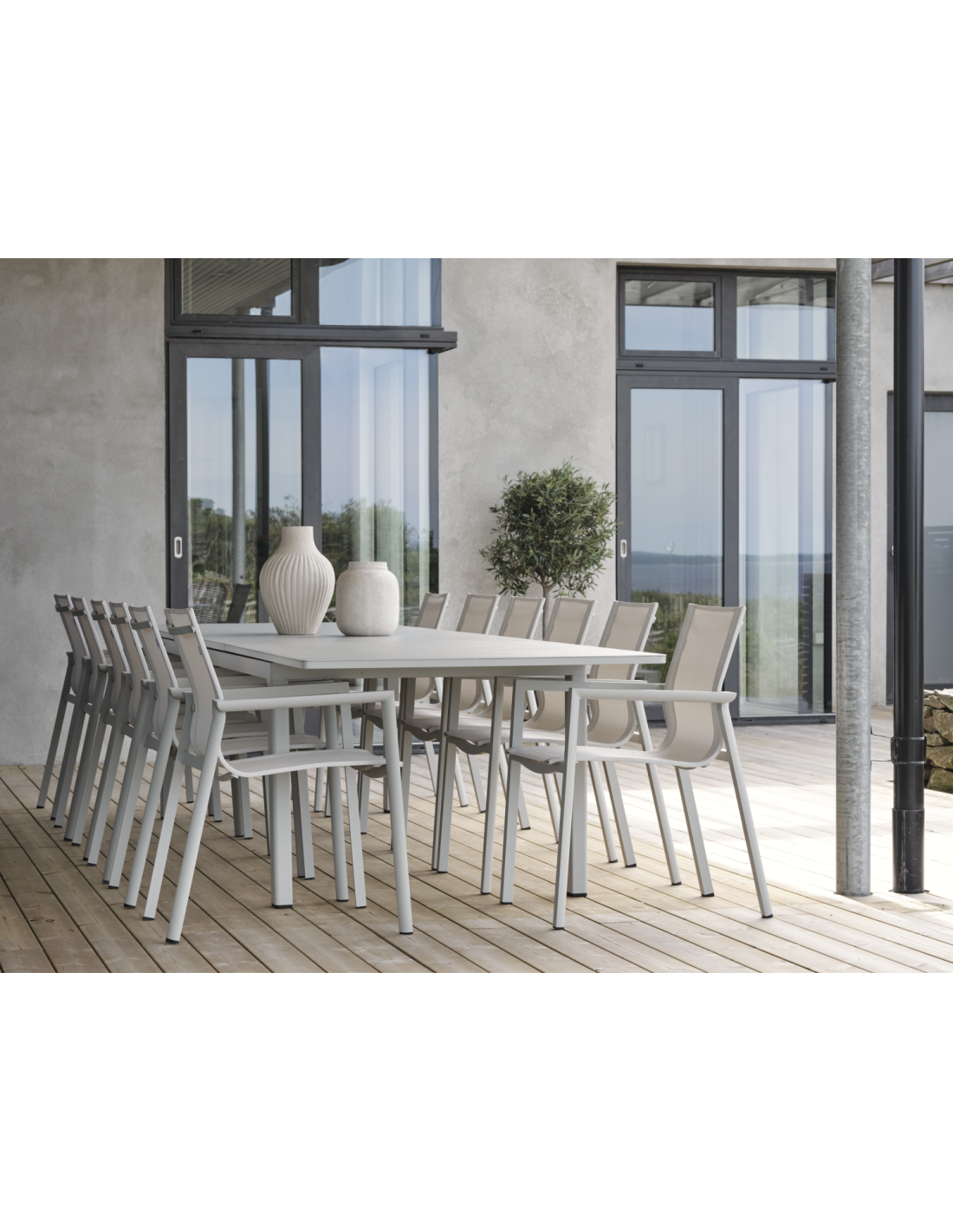 Una mesa de aluminio que realmente lo tiene todo. Lomma XL impresiona aún más con su nueva longitud, de hasta 380 cm. Al combinar diseño y funcionalidad, encarna la elegancia escandinava, la funcionalidad premium y un tamaño generoso. Con su extensión tipo mariposa, que añade 120 cm adicionales, es fácil adaptar la mesa tanto para comidas diarias como para reuniones más grandes.