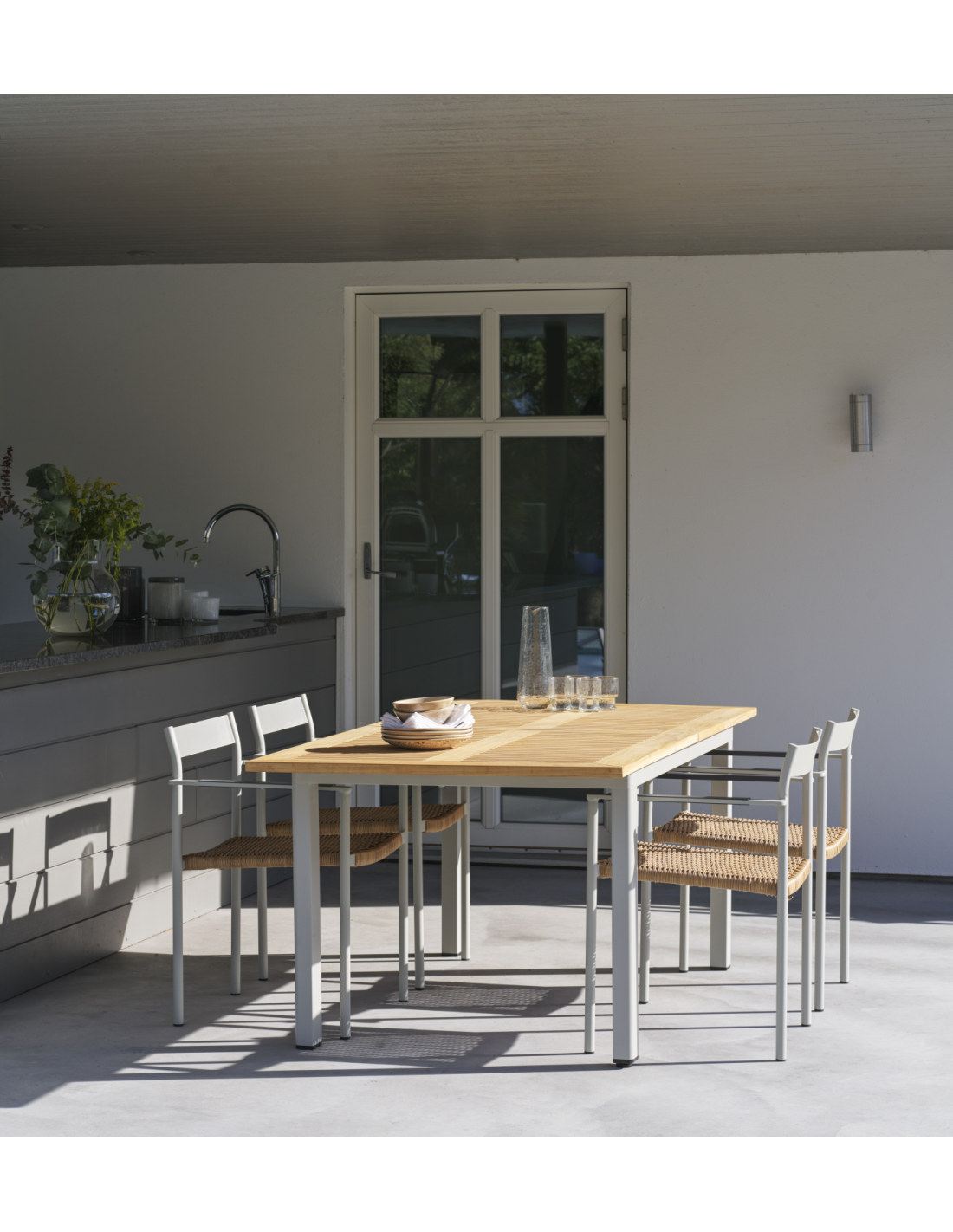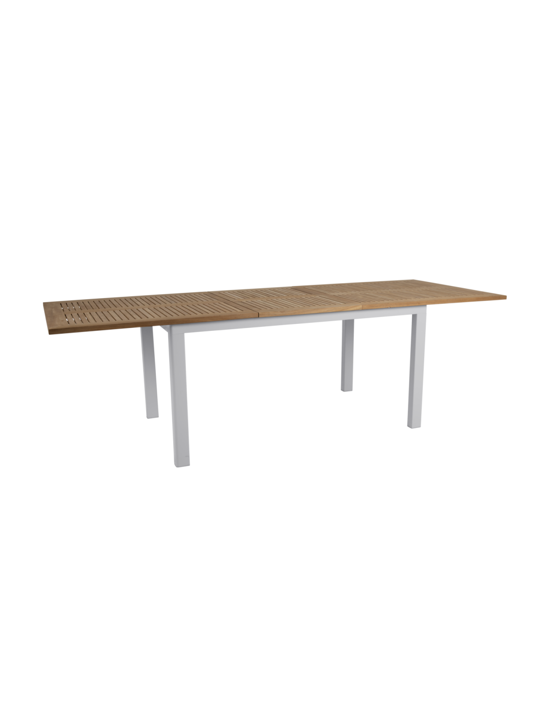 Mesa Extensible Exterior LYON 194/252x92 cm de Comedor, Aluminio, Teca FSC / Gris Claro / Natural - Brafab