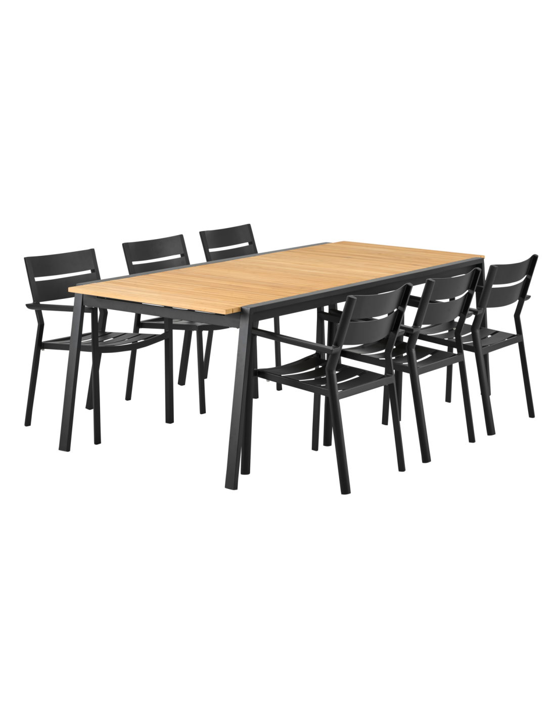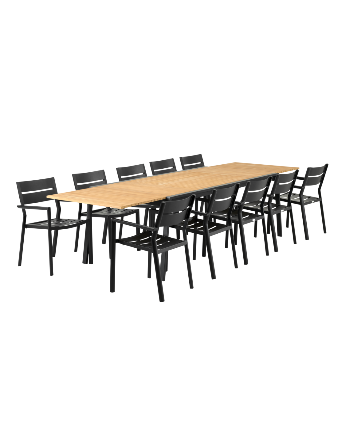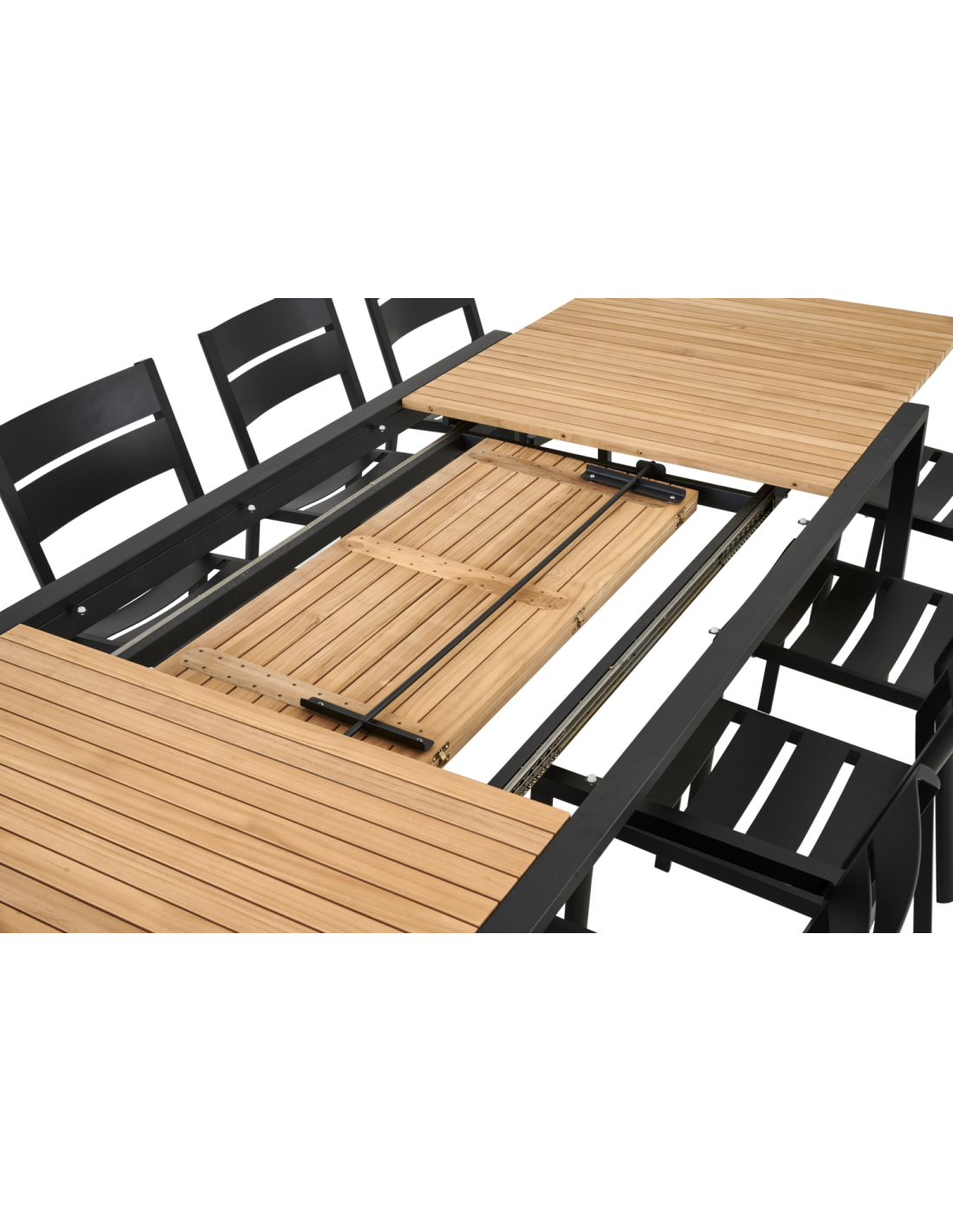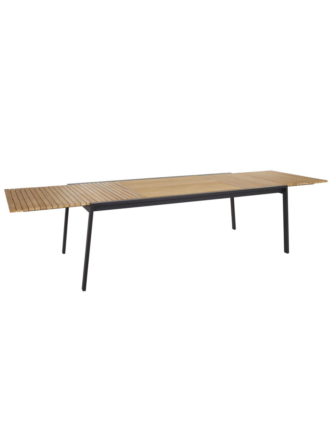 Mesa Extensible Exterior NAOS 220/320x100 cm de Comedor, Acero Inox, Teca FSC / Negro / Natural - Brafab