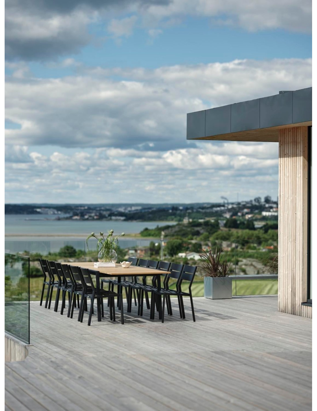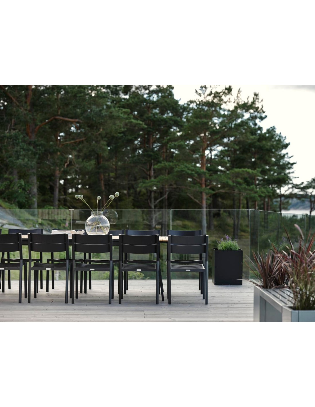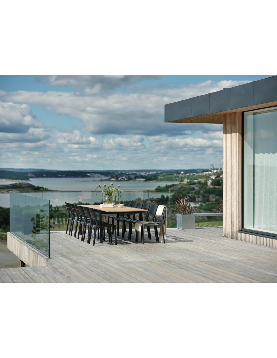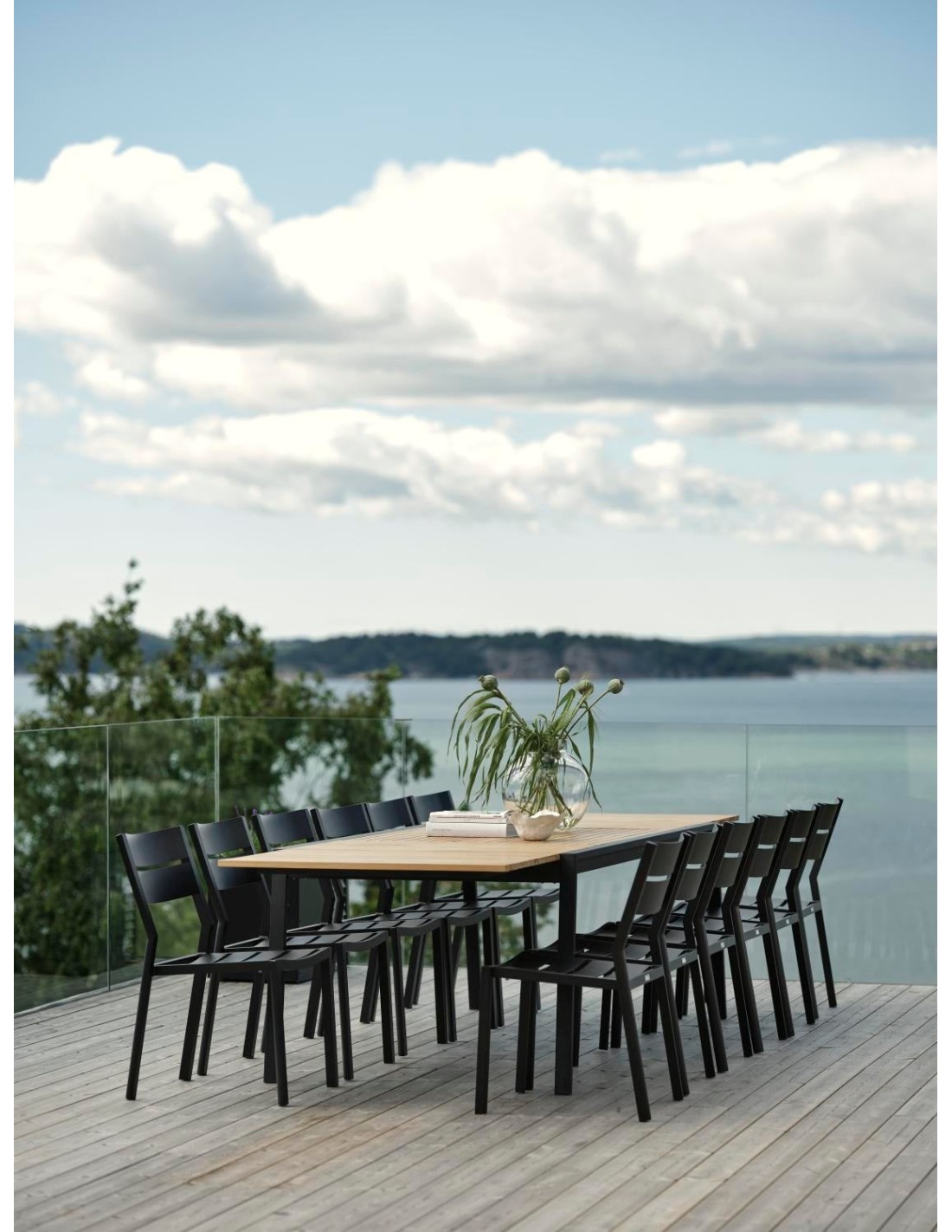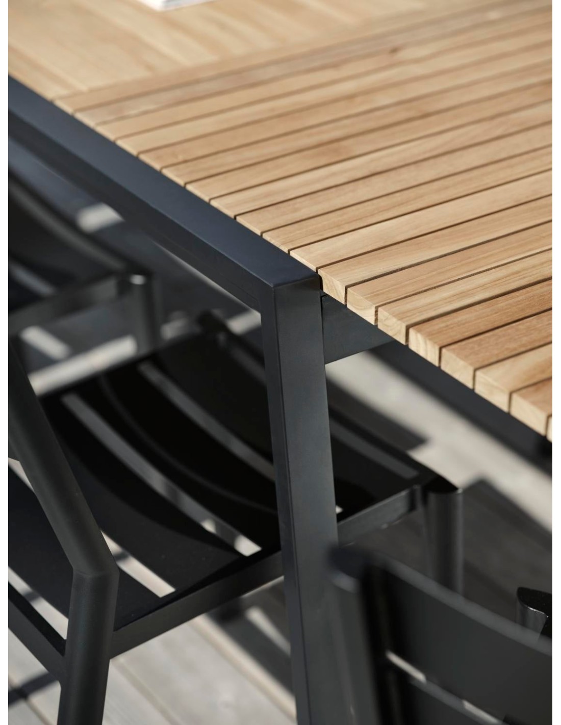 Una lujosa mesa de comedor que destaca y extiende el hogar hacia el exterior. Los bonitos listones de teca se refuerzan con patas rectas de acero. Y para grandes reuniones, las extensiones ocultas pueden desplegarse con un fantástico sistema mariposa. Totalmente extendida, la mesa mide 3,2 metros. Líneas limpias y diseño atemporal con un giro moderno. La combinación de materiales es emocionante: acero inoxidable (316) y detalles en teca.