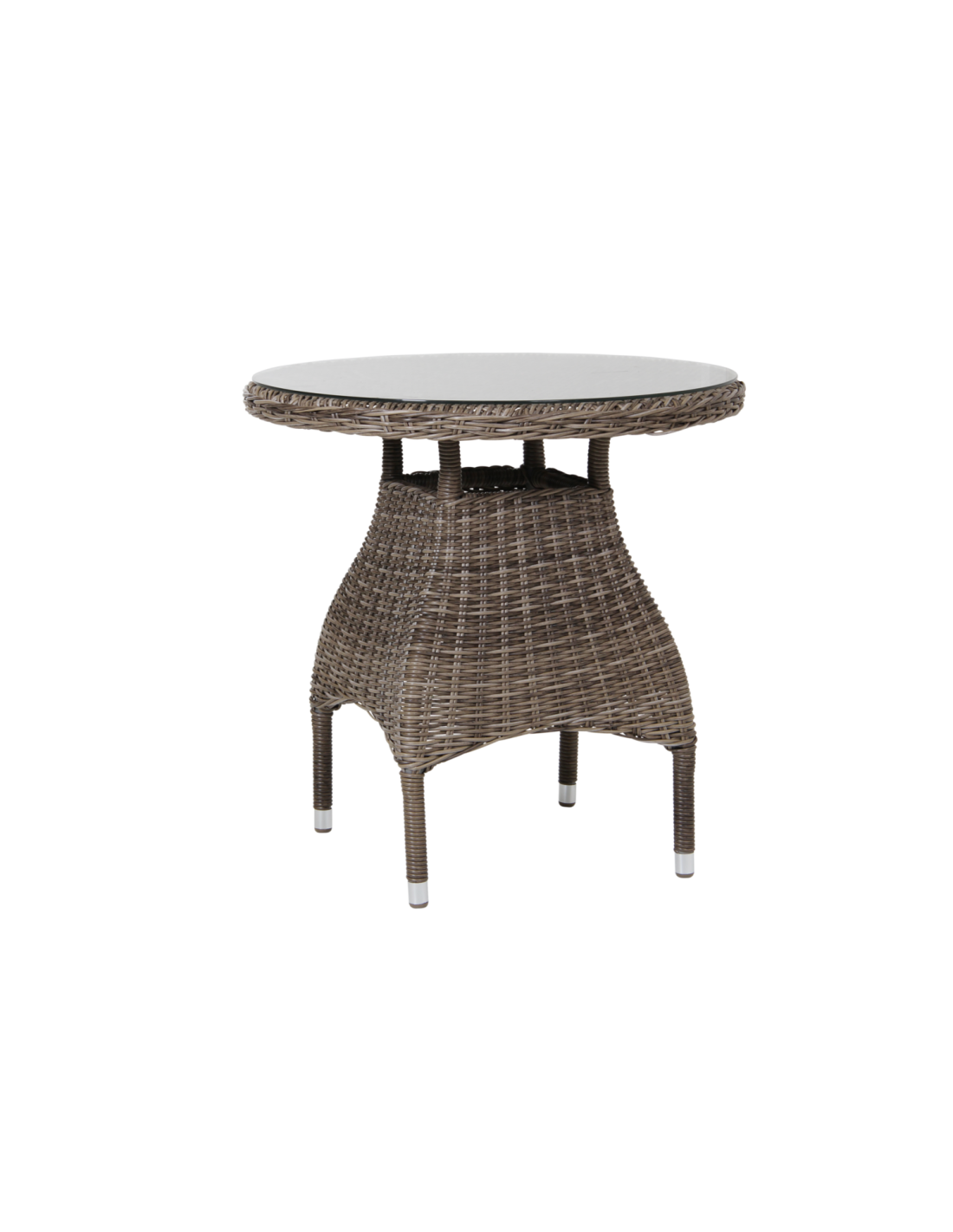 Mesa Bistró Redonda Exterior NINJA Ø70 cm, Ratán sintético, Cristal / Natural Rústico - Brafab