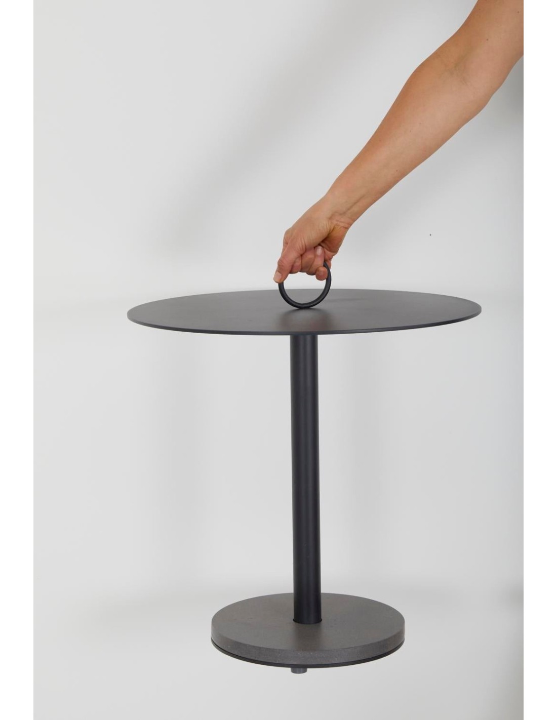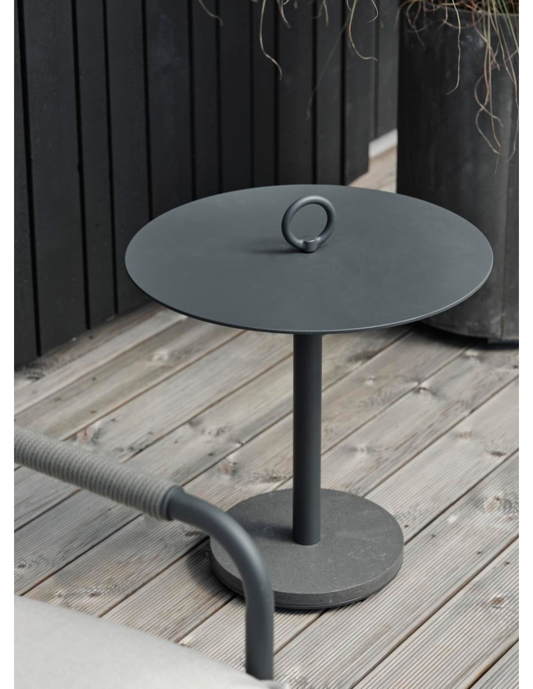 Mesa Auxiliar Exterior NIOBE Ø50 cm, Aluminio, Piedra compuesta / Antracita - Brafab