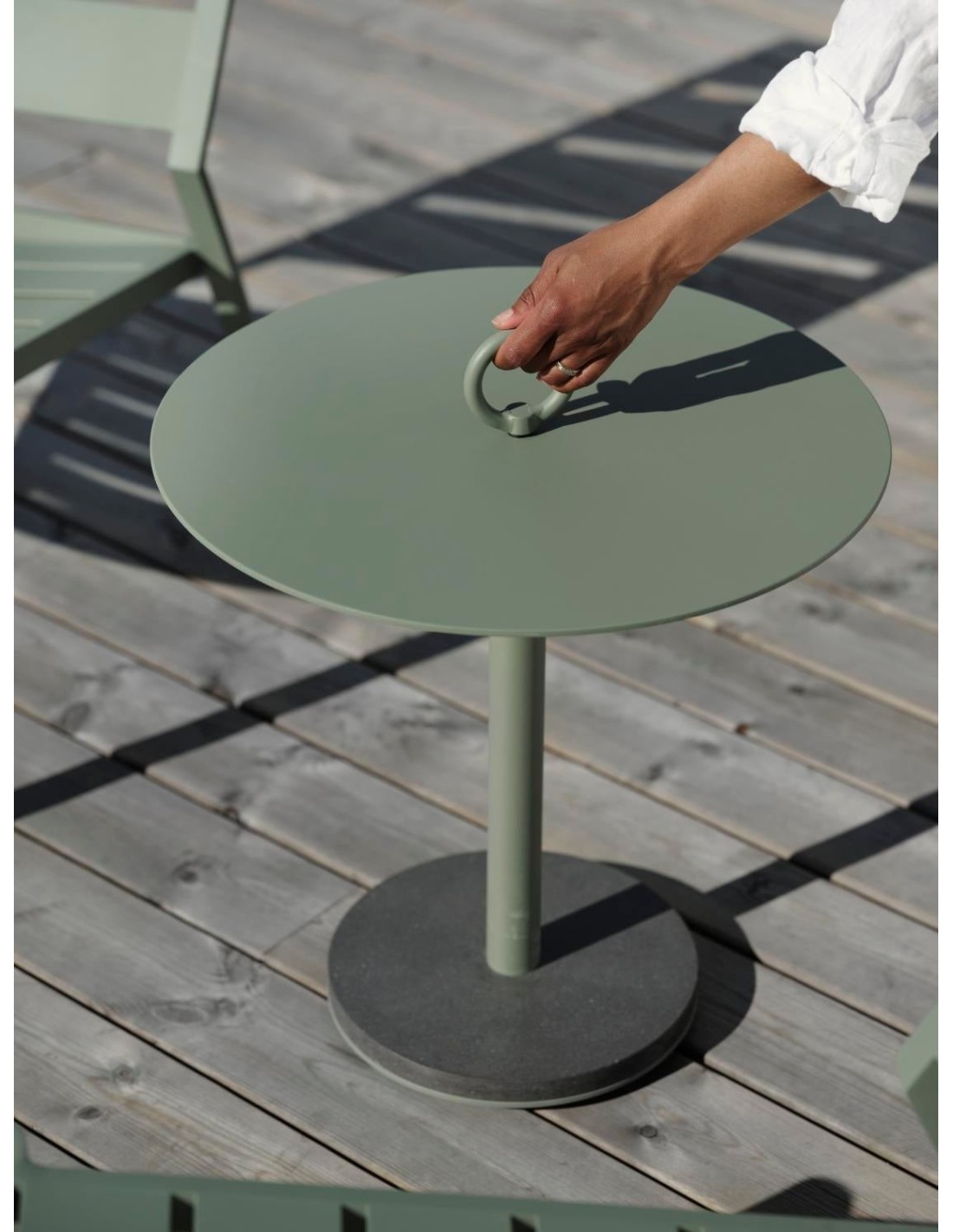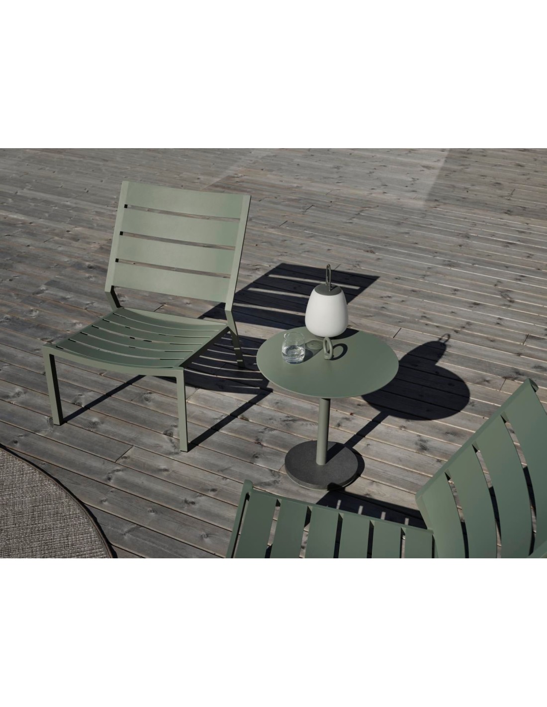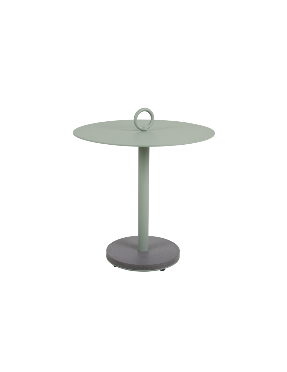 Mesa Auxiliar Exterior NIOBE Ø50 cm, Aluminio, Piedra compuesta / Verde Empolvado - Brafab