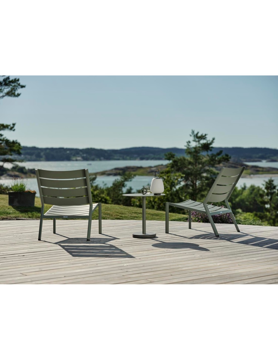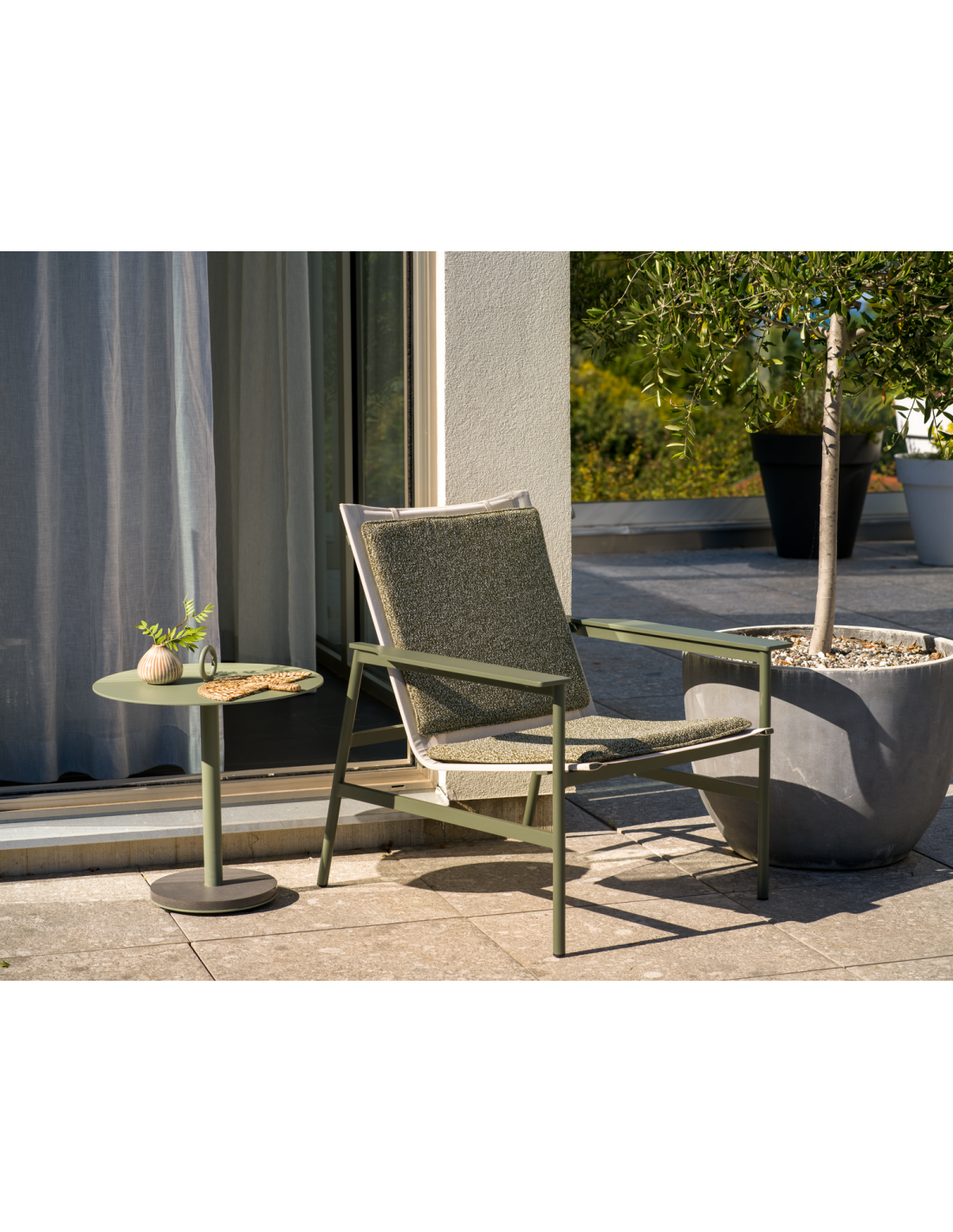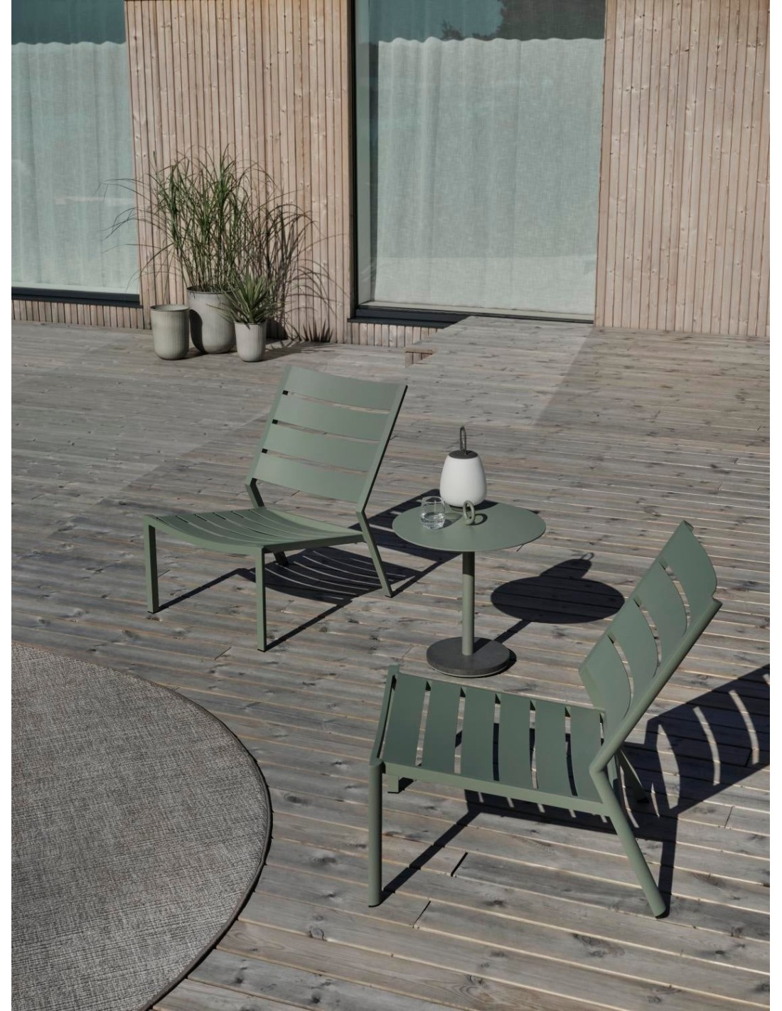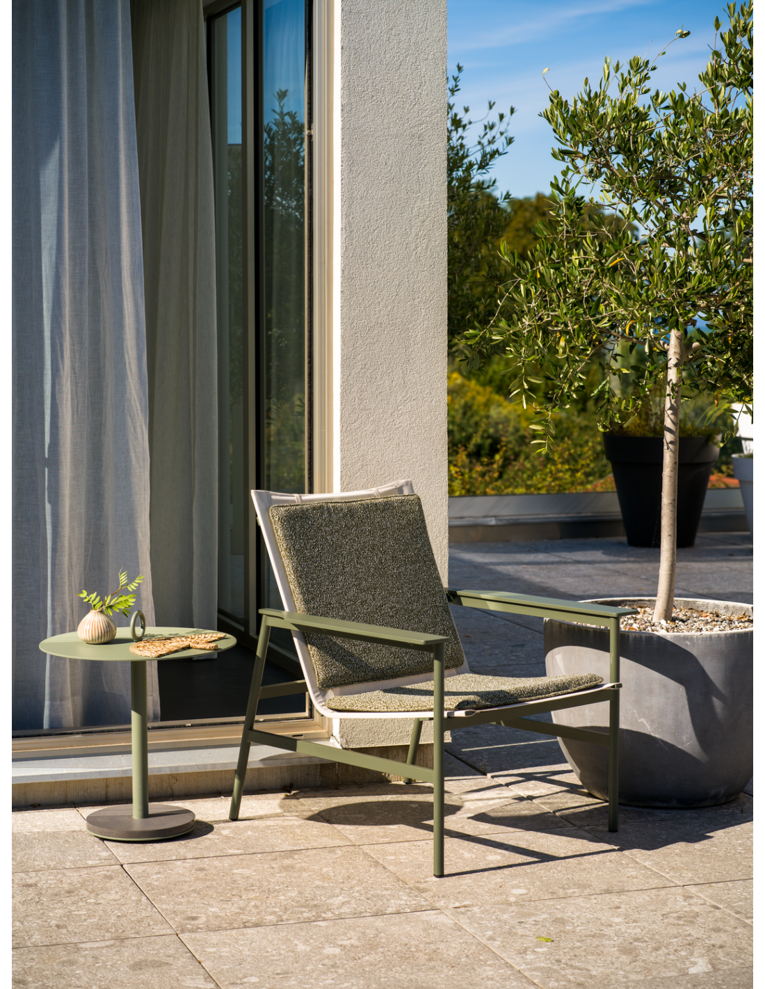 Mesa Auxiliar Exterior NIOBE Ø50 cm, Aluminio, Piedra compuesta / Verde Empolvado - Brafab