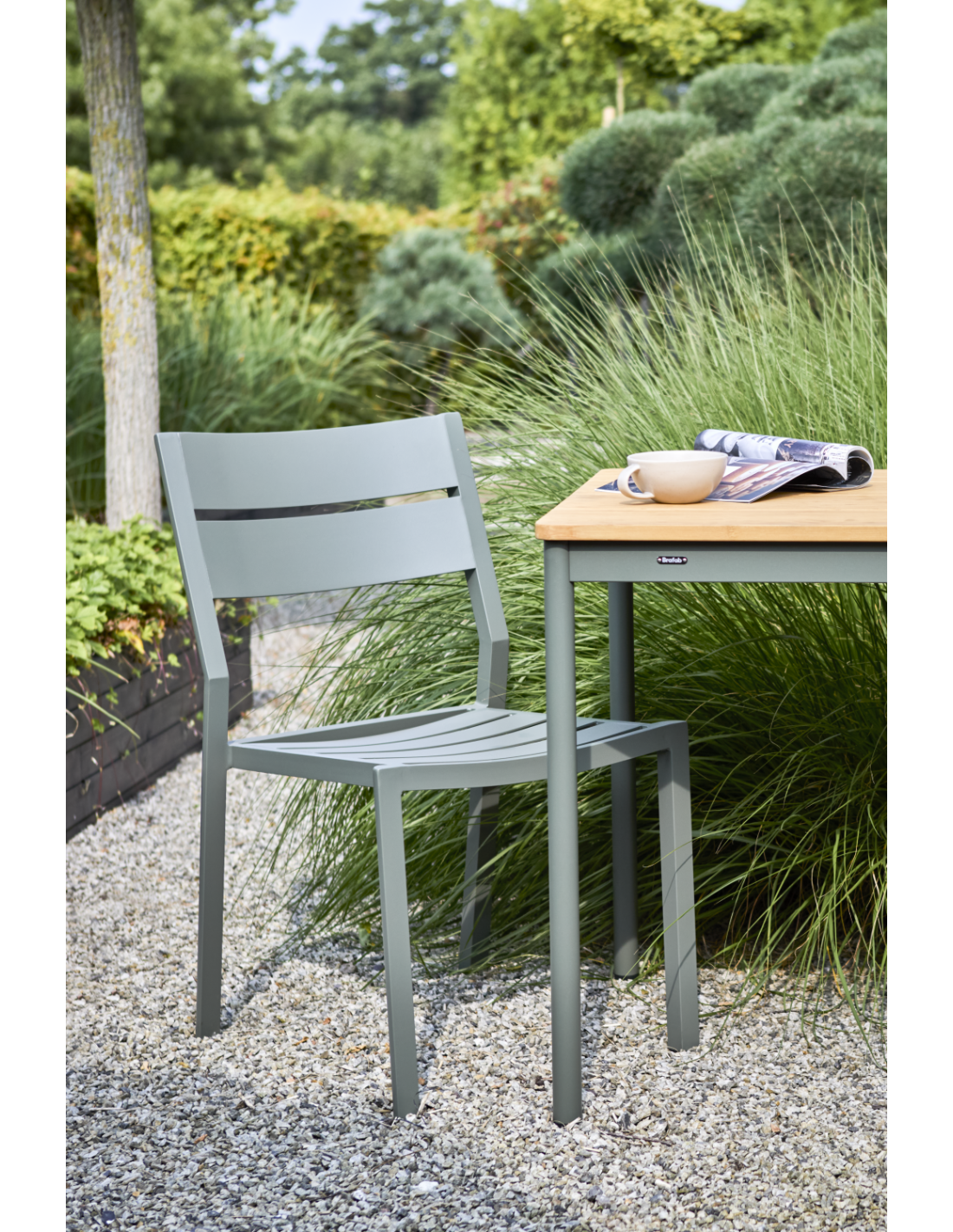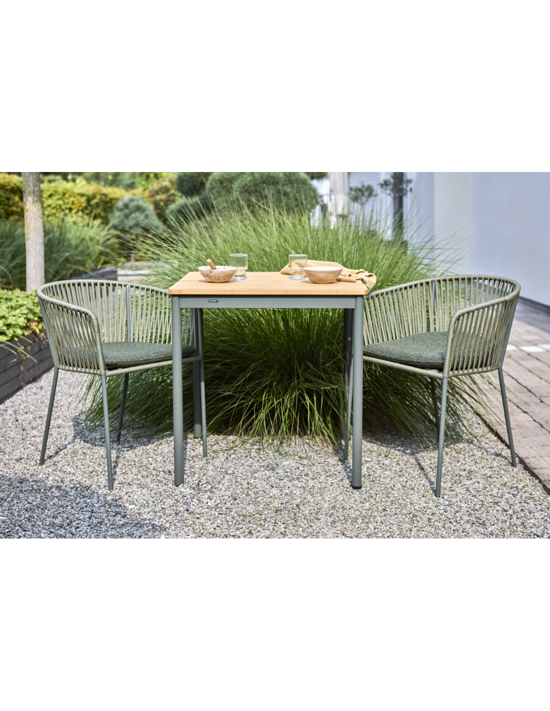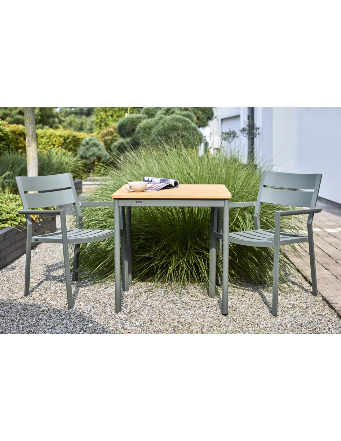 Mesa Bistró Exterior NOX 70x70 cm, Aluminio, Madera de Bambú / Verde / Natural - Brafab