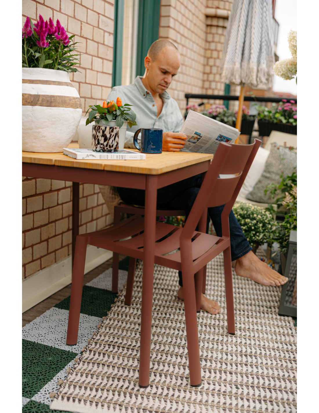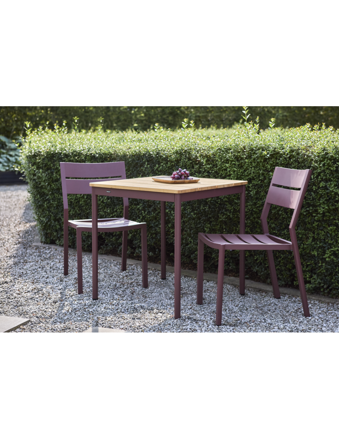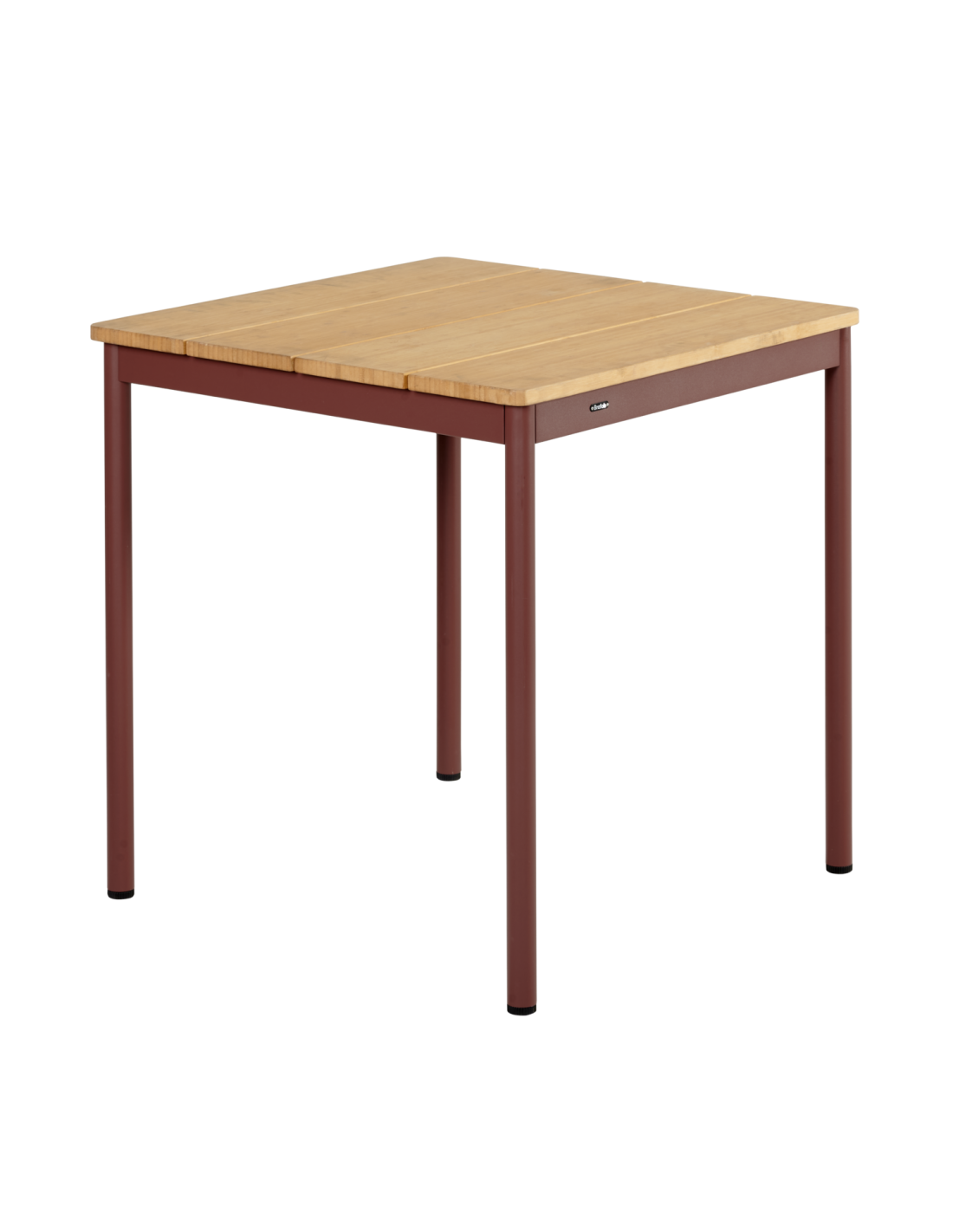 Mesa Bistró Exterior NOX 70x70 cm, Aluminio, Madera de Bambú / Rojo Zin / Natural - Brafab