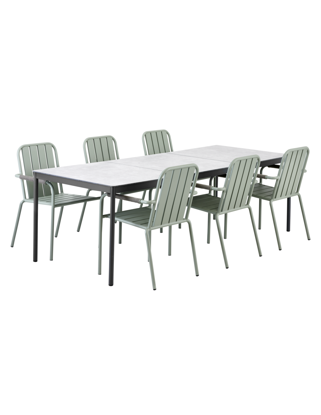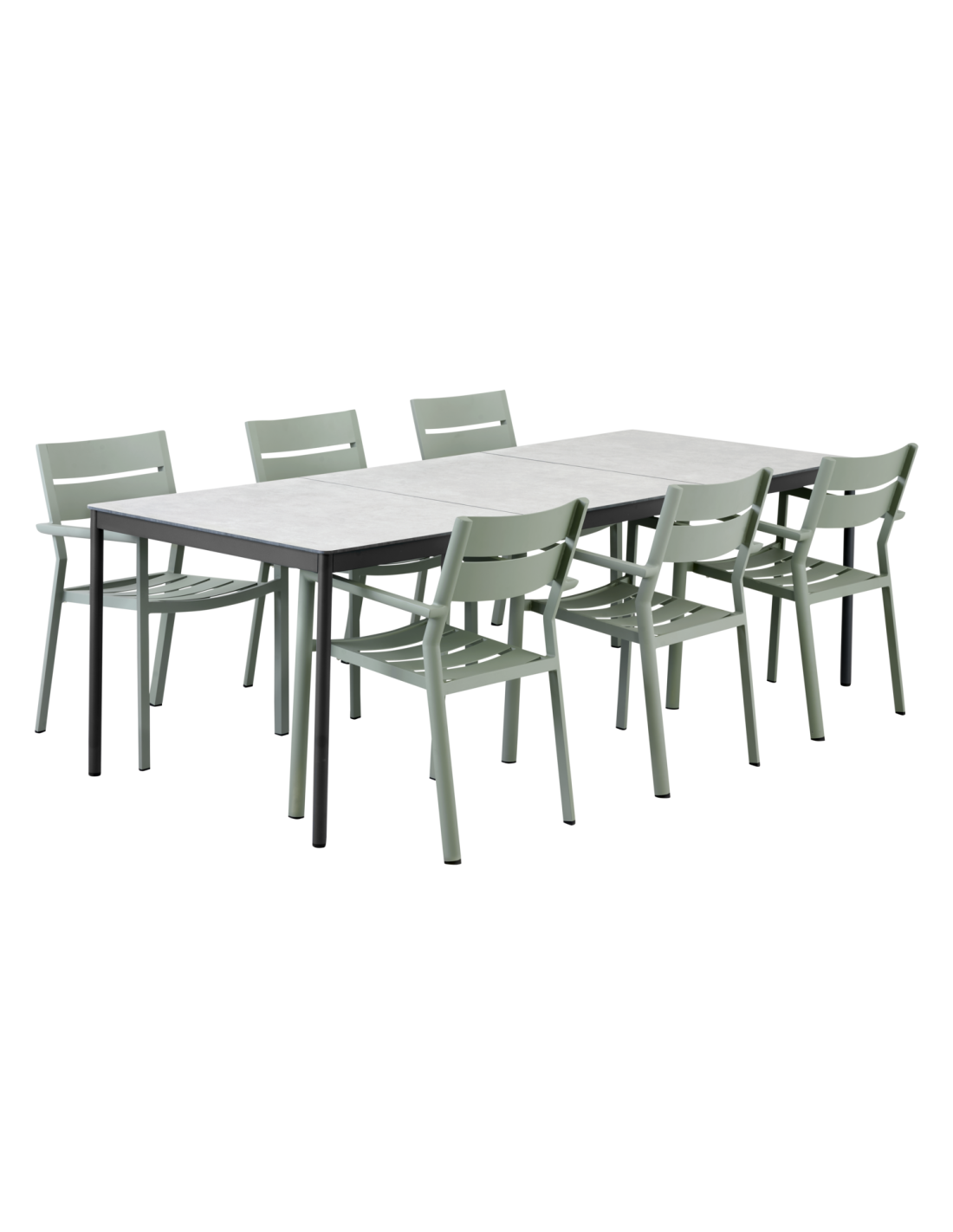 Estructura de mesa en aluminio robusto con patas regulables. Disponible en dos tamaños; esta es la versión grande. Elige según tu preferencia entre un gris antracita oscuro y un verde contemporáneo y discreto (Verde Empolvado). Combínala con tableros laminados de diseño elegante. Esta versión grande de la mesa Nox también requiere un tablero de extensión.