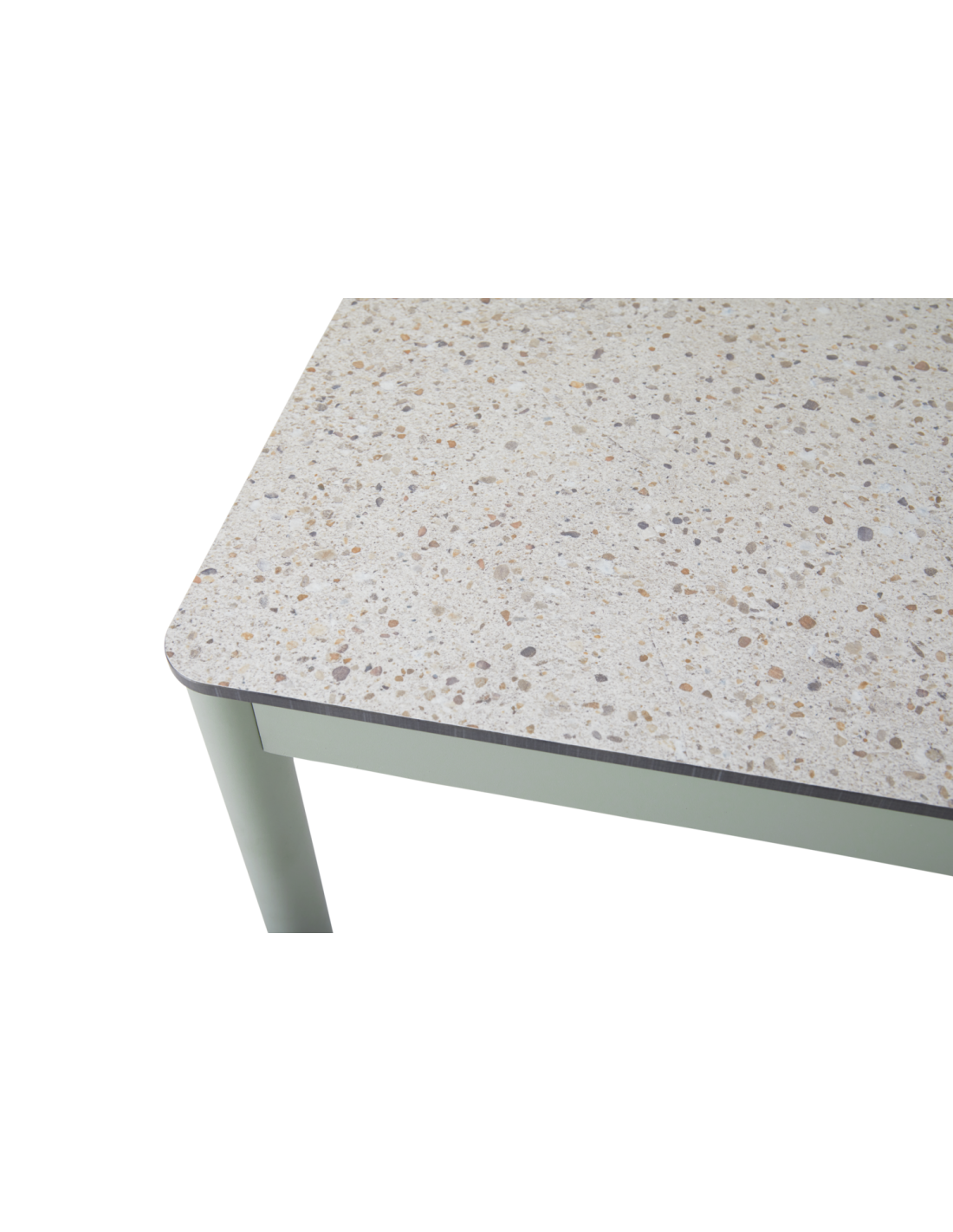Estructura de mesa en aluminio robusto con patas regulables. Disponible en dos tamaños; esta es la versión grande. Elige según tu preferencia entre un gris antracita oscuro y un verde contemporáneo y discreto (Verde Empolvado).