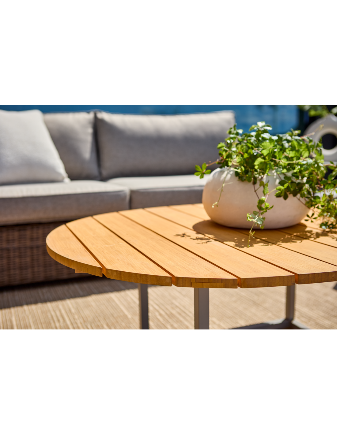 Mesa de Centro Exterior OLIVE 80x110 cm, Aluminio, Madera de Bambú / Caqui / Natural - Brafab