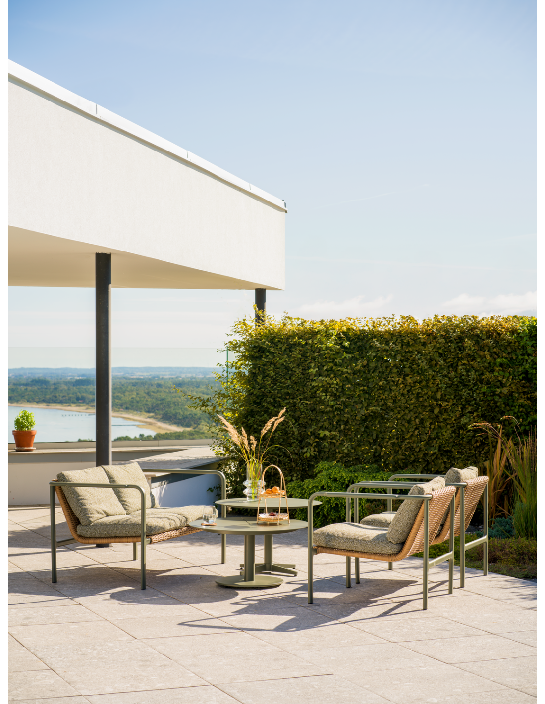 La mesa de centro Peace tiene estructura con recubrimiento en polvo y está disponible en dos alturas, perfectas para combinar en un conjunto con estilo. Con sus formas suaves y redondeadas y la estable columna central, aportan la misma elegancia cuidada que el resto de la serie Peace.