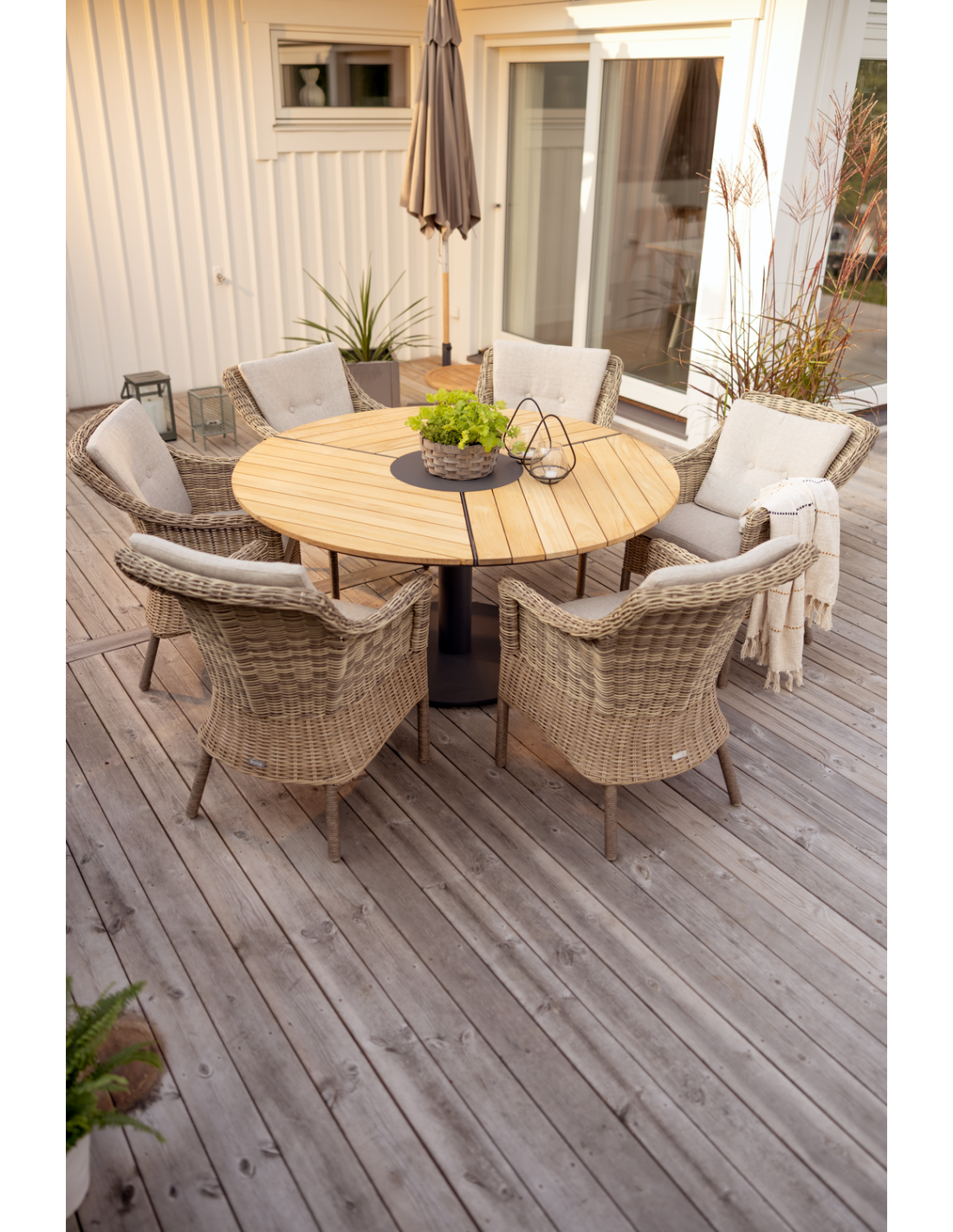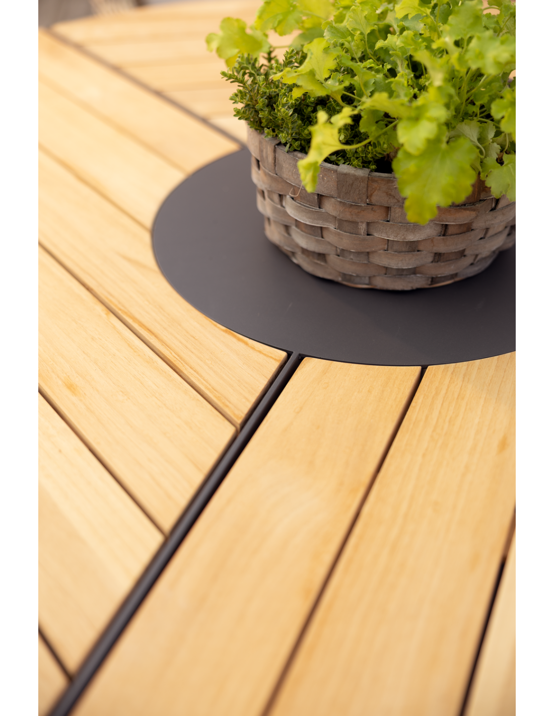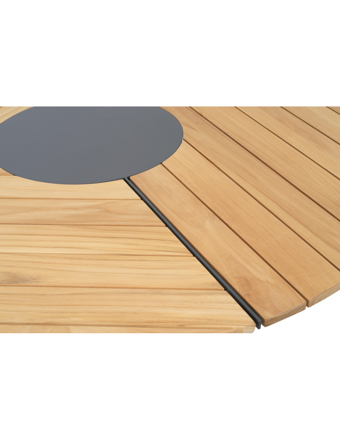 Mesa Exterior PEACE WOOD Ø150 cm de Comedor, Aluminio, Madera de Teca / Antracita / Natural - Brafab