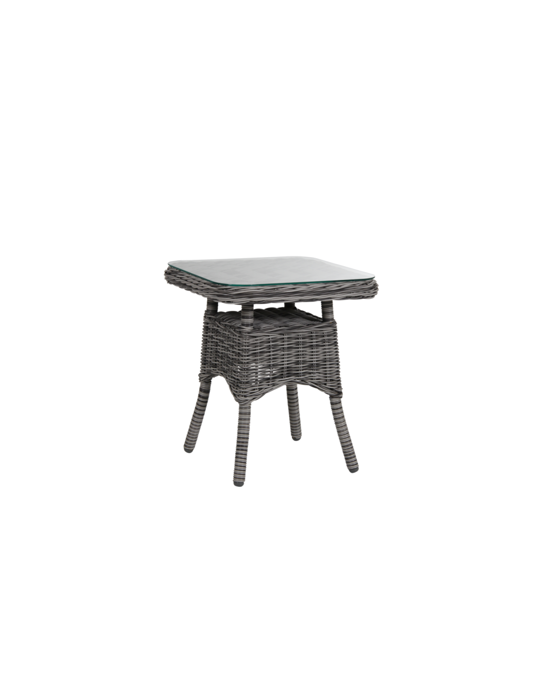 Mesa Auxiliar Exterior ROSITA 50x50 cm, Ratán sintético, Cristal / Gris - Brafab