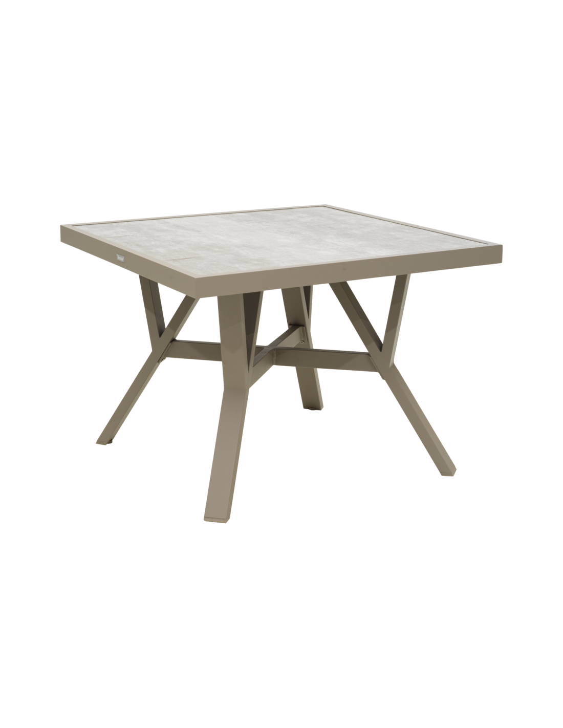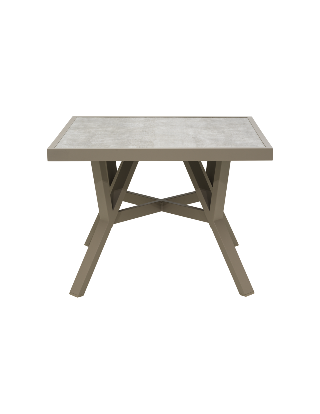 Mesa de Centro Alta Exterior SAMVARO 90x90 cm, Aluminio, Cristal / Caqui - Brafab