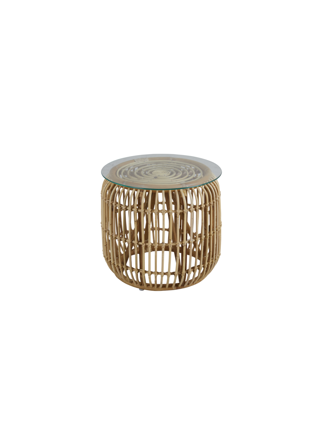 Mesa Auxiliar Exterior VALLDA Ø49 cm, Ratán, Cristal / Natural - Brafab