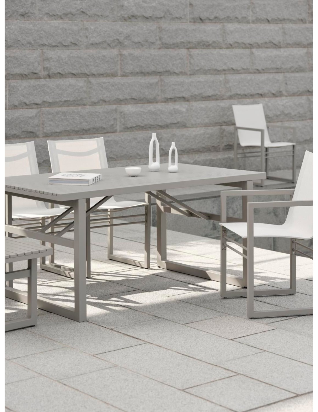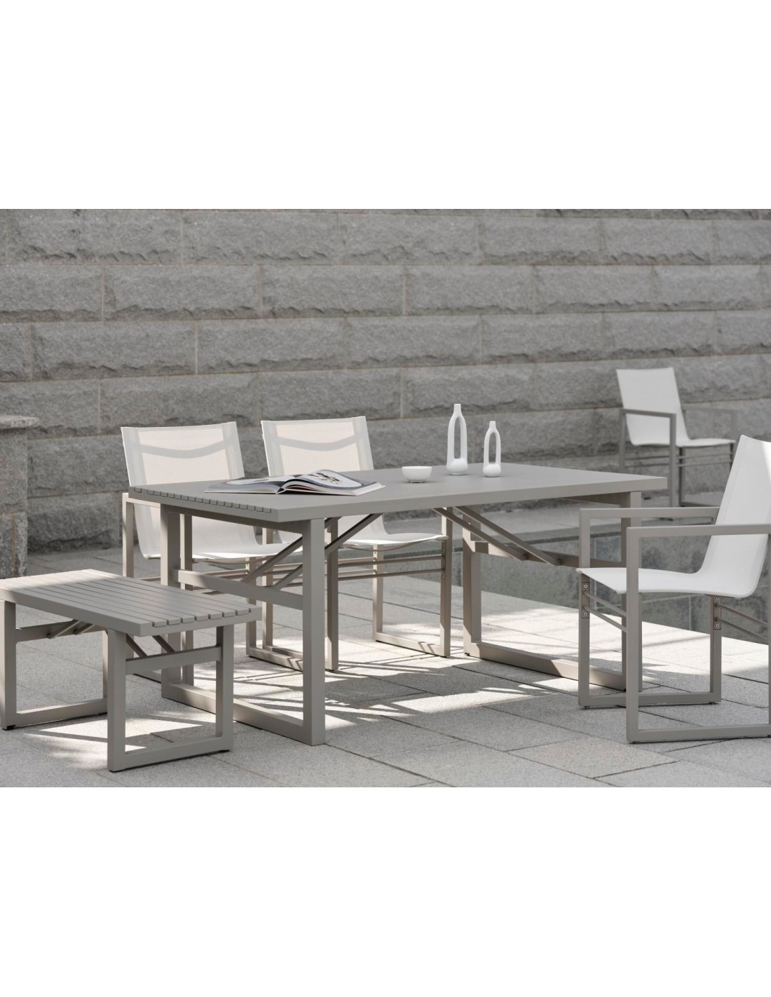 Mesa VEVI 160x90 cm de Comedor, Aluminio / Caqui - Brafab