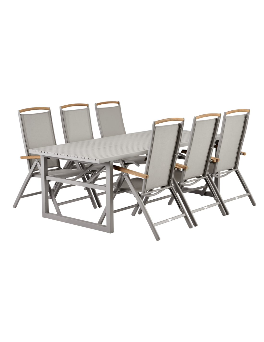 Esta serie se caracteriza por una estética nórdica y un diseño moderno y elegante. Con una generosa mesa de comedor con espacio para familia y amigos y sillas cómodas, mesas auxiliares, sillones lounge y mucho más, esta serie convierte tu terraza en el escenario perfecto para relajarte y reunirte. Muchas de las distintas unidades están disponibles tanto en aluminio combinado con Textilene como en teca combinada con acero inoxidable. Diseño: Dick Björk.