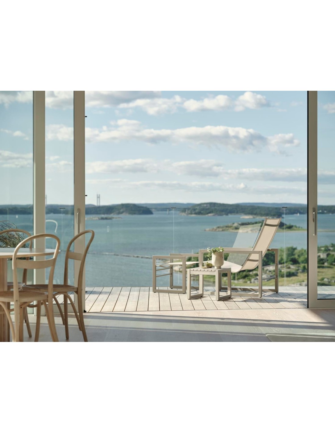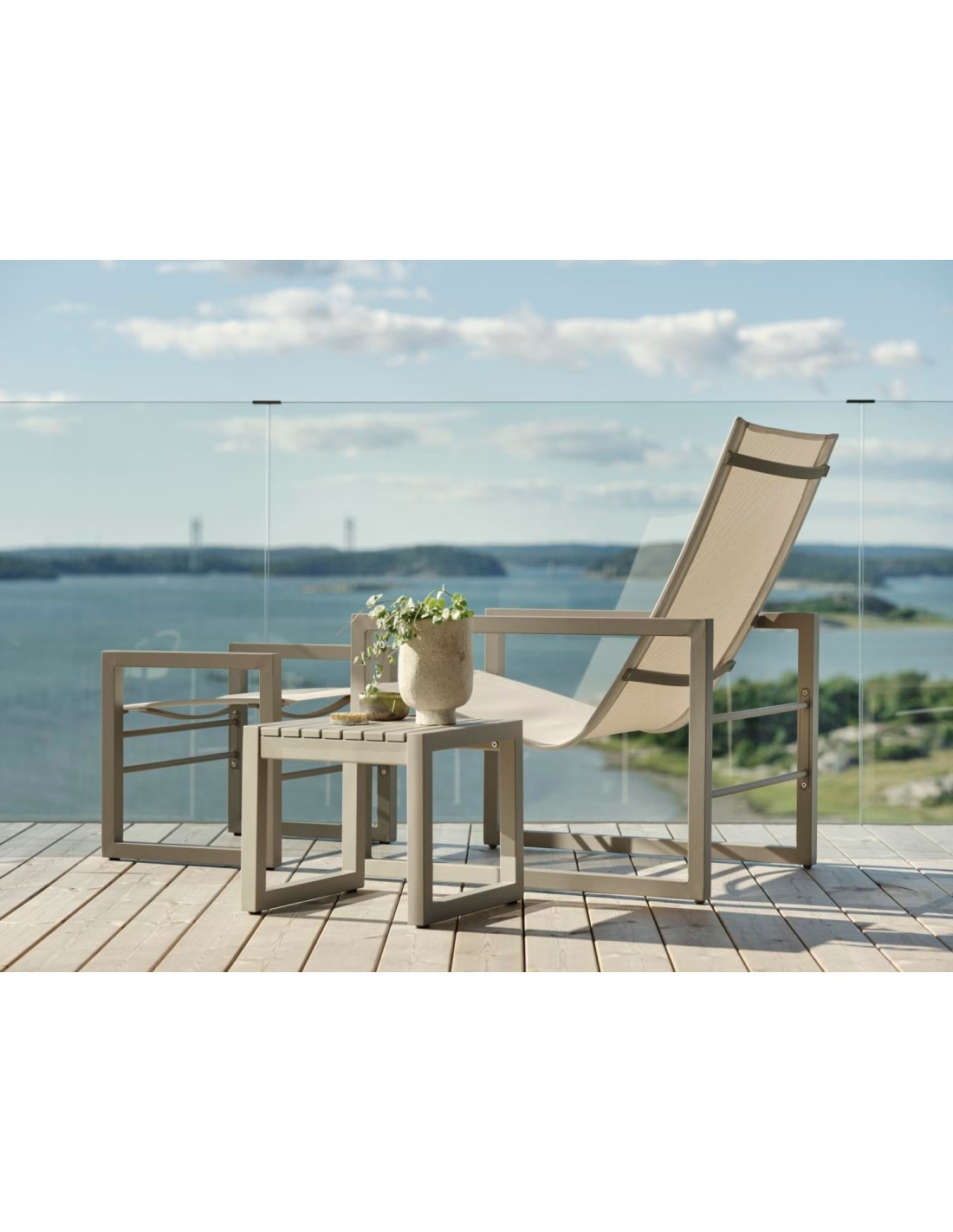 Esta serie se caracteriza por una estética nórdica y un diseño moderno y elegante. Con una generosa mesa de comedor con espacio para familia y amigos y sillas cómodas, mesas auxiliares, sillones lounge y mucho más, esta serie convierte tu terraza en el escenario perfecto para relajarte y reunirte. Muchas de las distintas unidades están disponibles tanto en aluminio combinado con Textilene como en teca combinada con acero inoxidable. Diseño: Dick Björk.