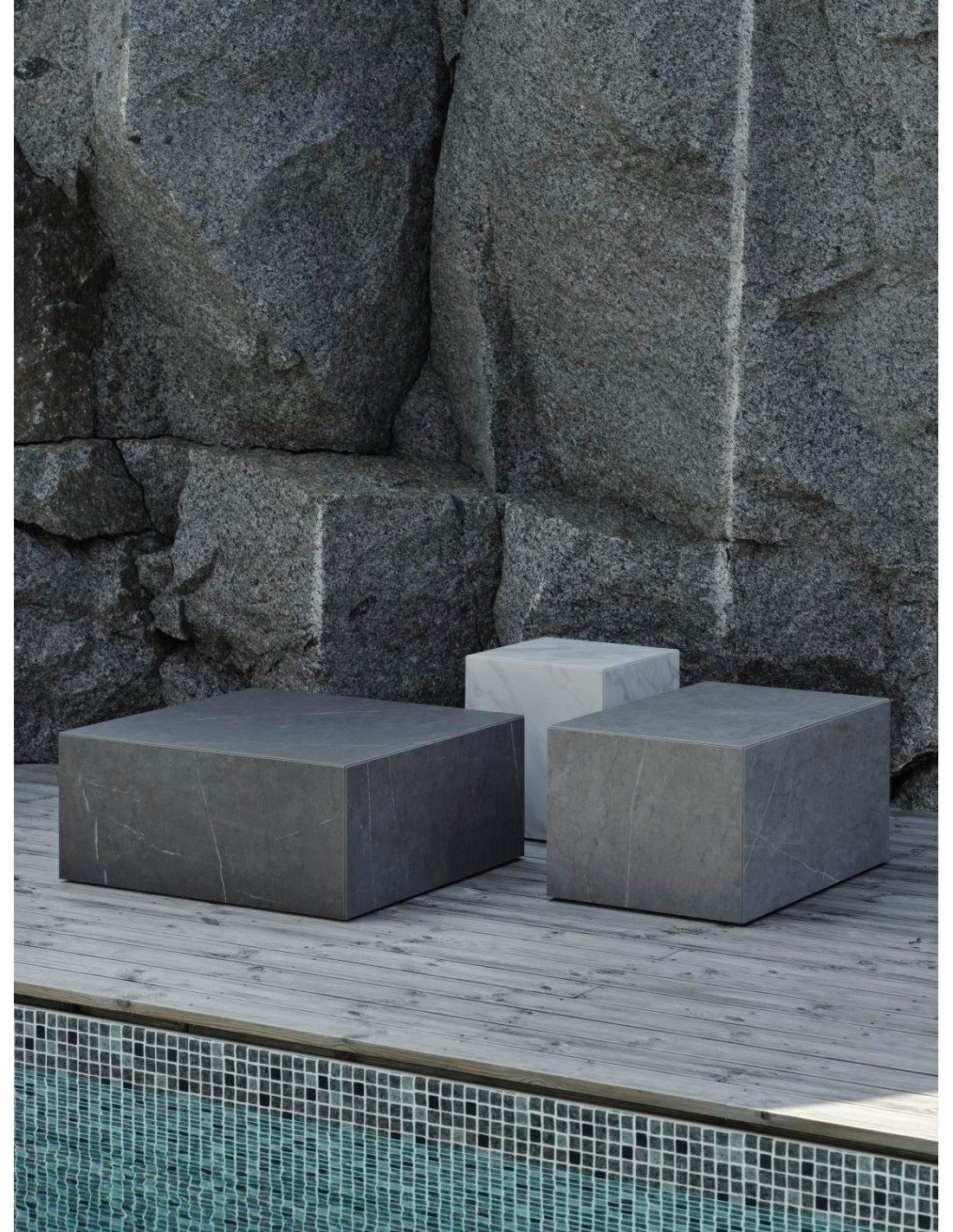 Mesa de Centro Exterior ZTEN 80x50 cm, Piedra compuesta, Aluminio / Gris - Brafab