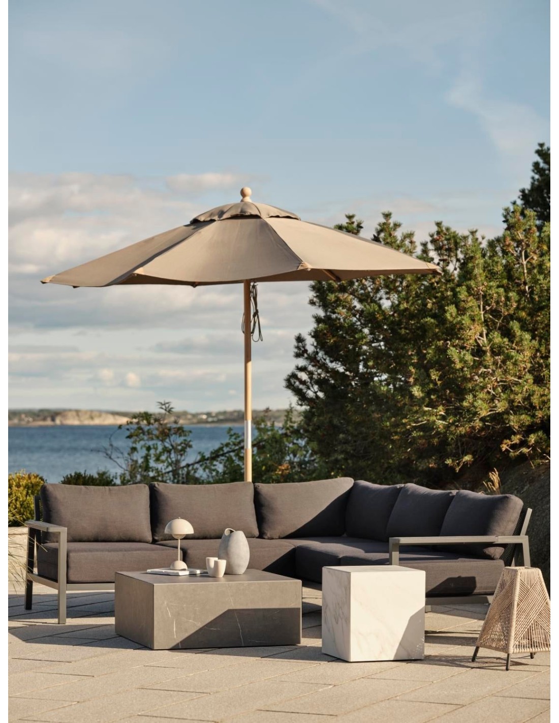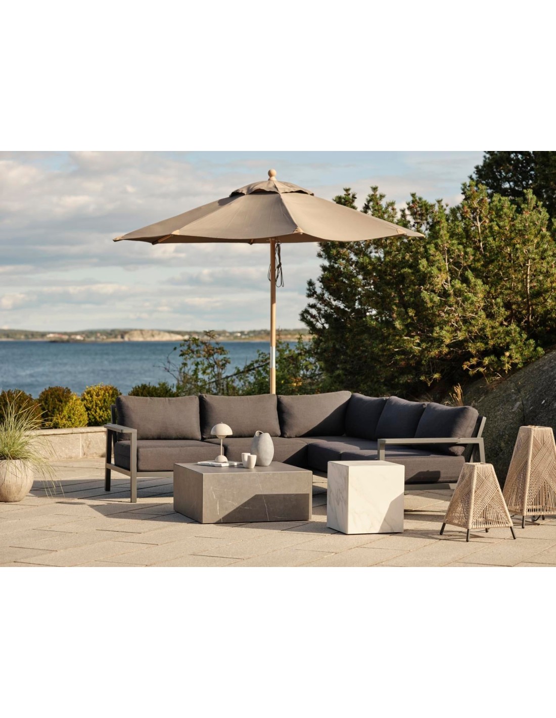 Mesa de Centro Exterior ZTEN 40x40 cm, Piedra compuesta, Aluminio / Blanco - Brafab
