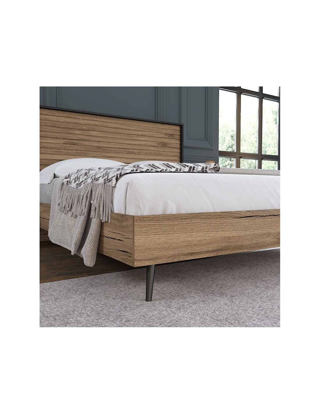 Cama Doble SOVE 169x205 cm, MDF Acabado Nogal