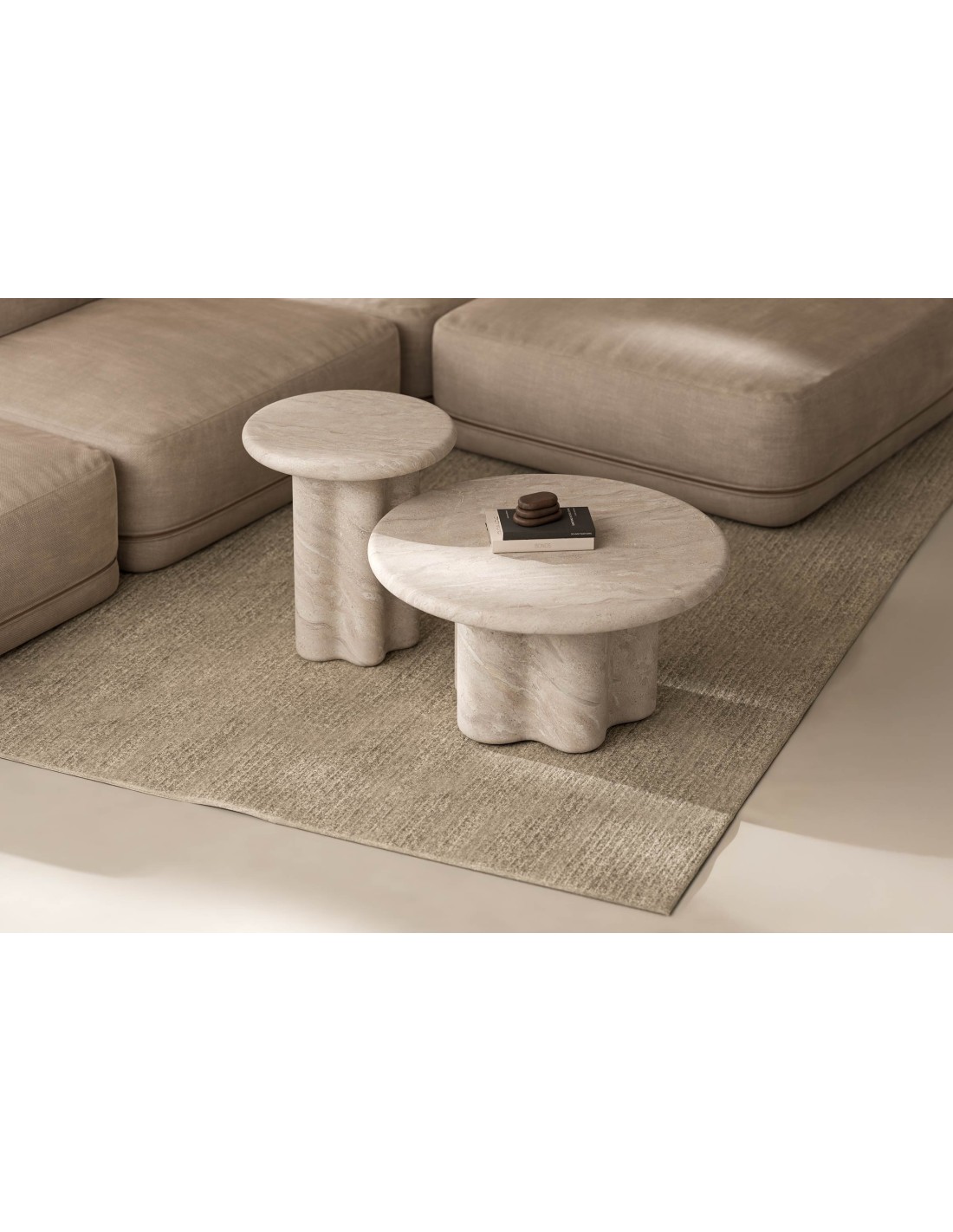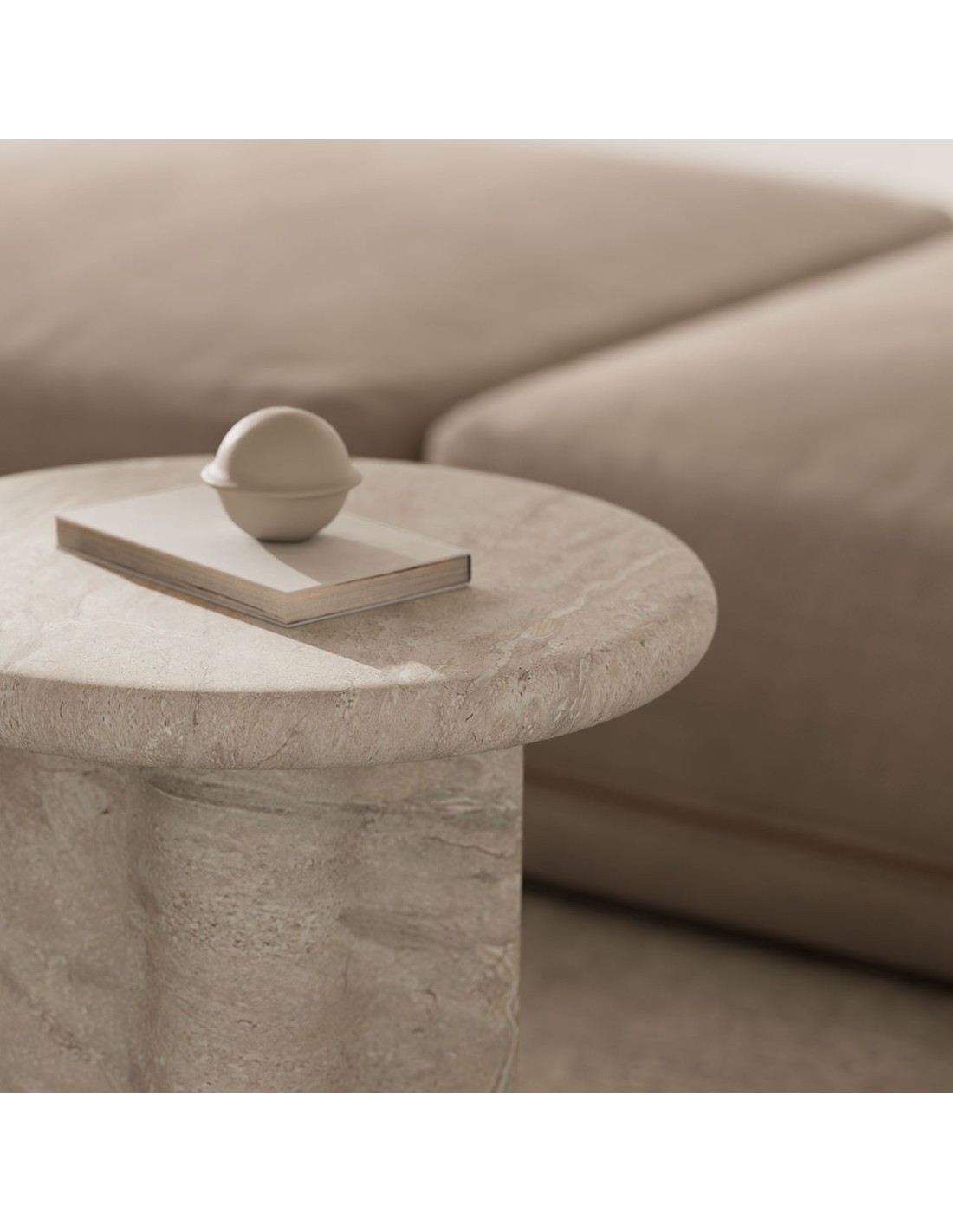 Mesa de Centro Exterior ODENSE Ø50 cm, Mármol Travertino