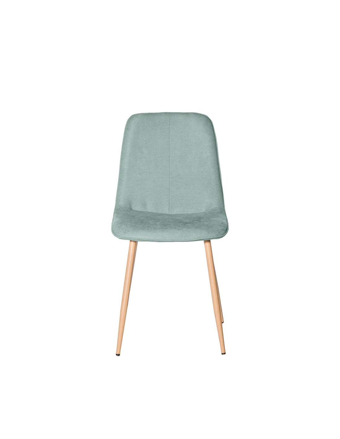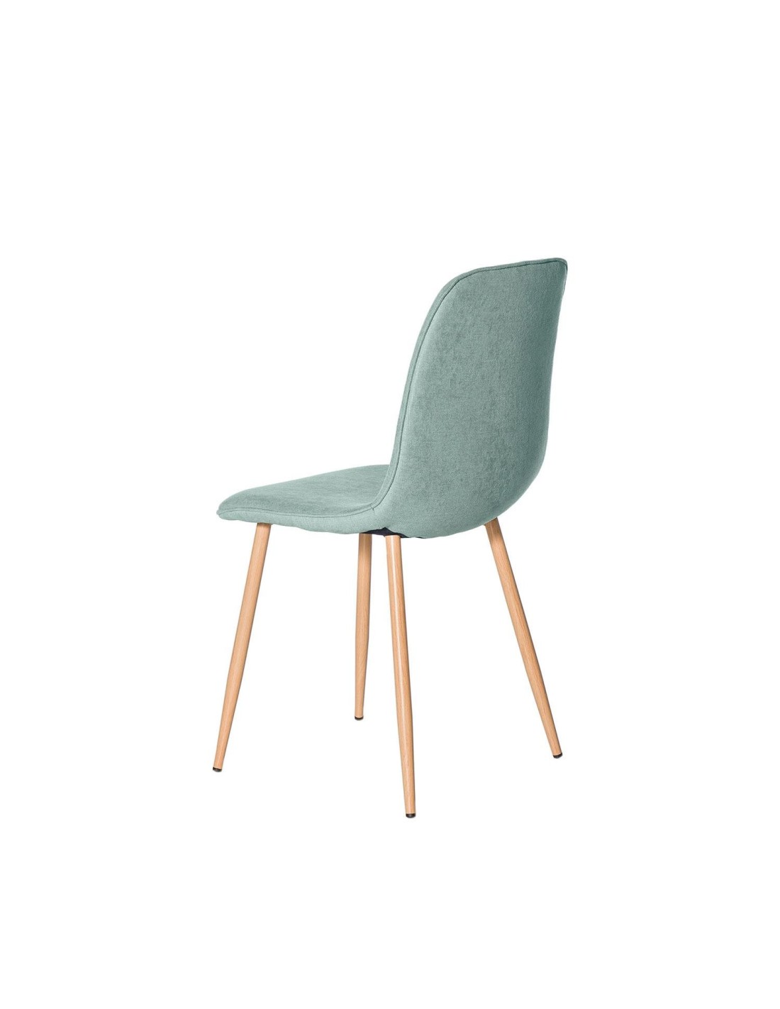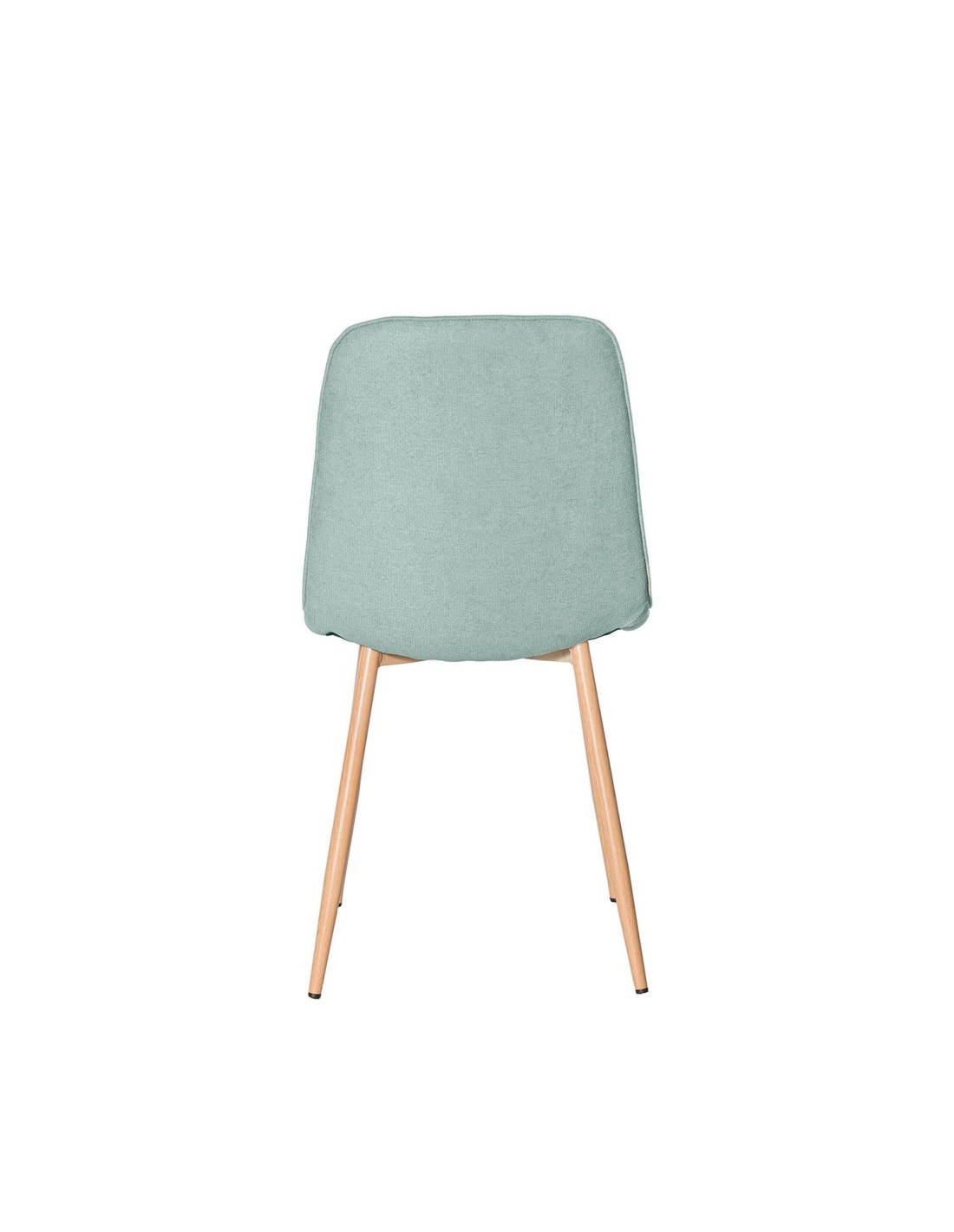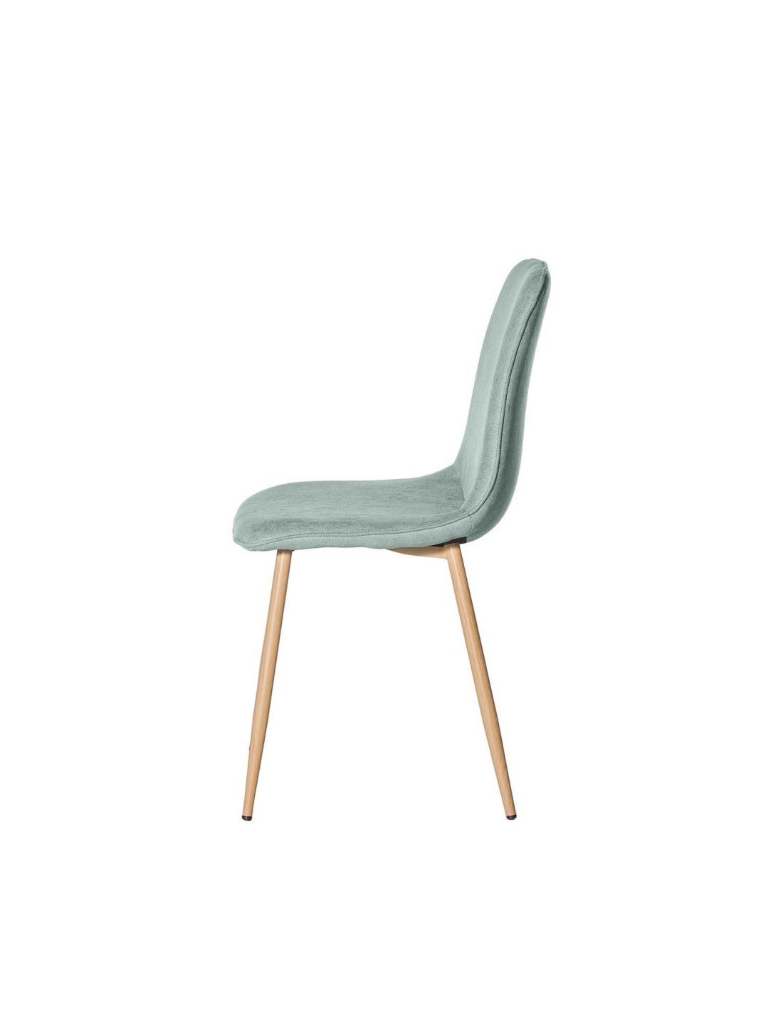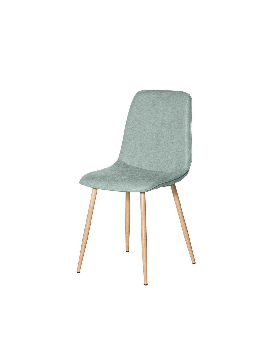 Añade un toque natural y elegante con la silla SUNE. Tapizada en tejido 100% poliéster de color menta, su combinación con las patas de metal con efecto madera aporta un aire natural y sofisticado a cualquier estancia. Además, su estructura monobloque de respaldo y asiento acolchado garantiza una comodidad excepcional.
