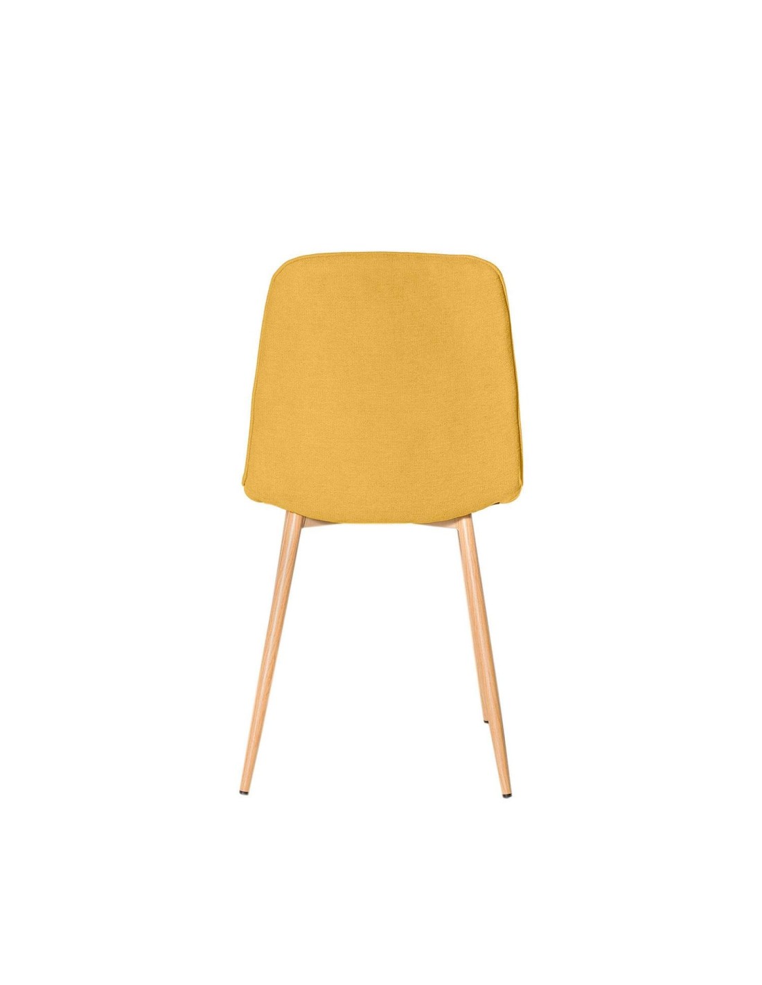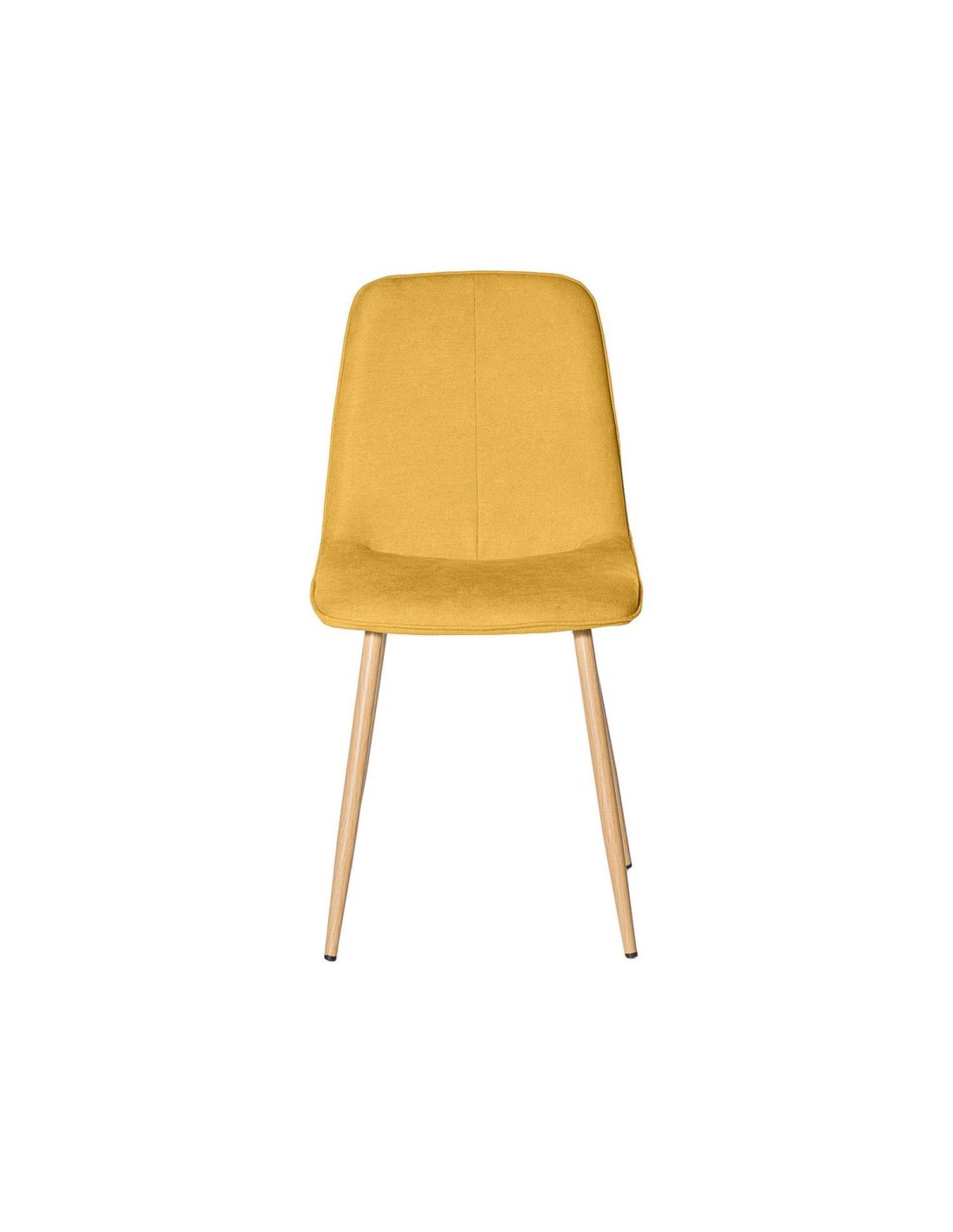 Añade un toque natural y elegante con la silla SUNE. Tapizada en tejido 100% poliéster de color mostaza, su combinación con las patas de metal con efecto madera aporta un aire natural y sofisticado a cualquier estancia. Además, su estructura monobloque de respaldo y asiento acolchado garantiza una comodidad excepcional.