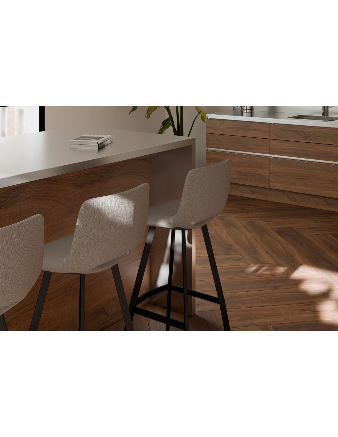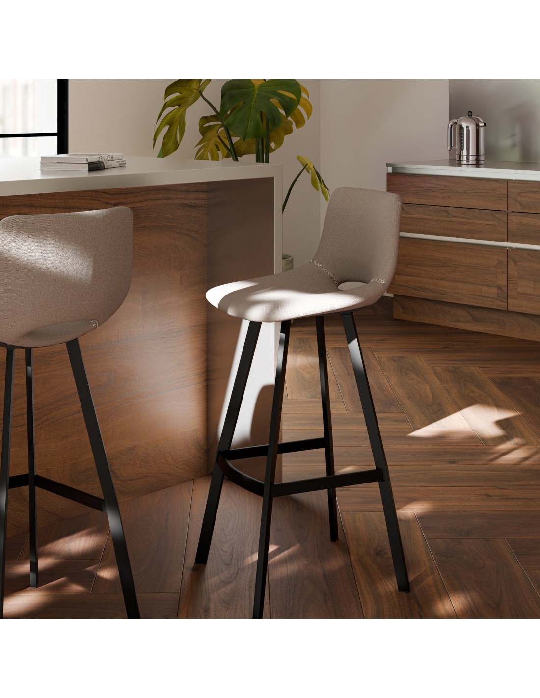 Taburete Alto ASTRO 78 cm, Textil / Metal / Taupe