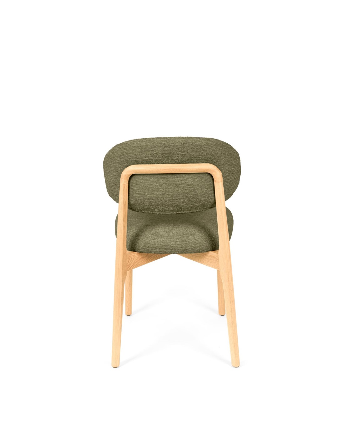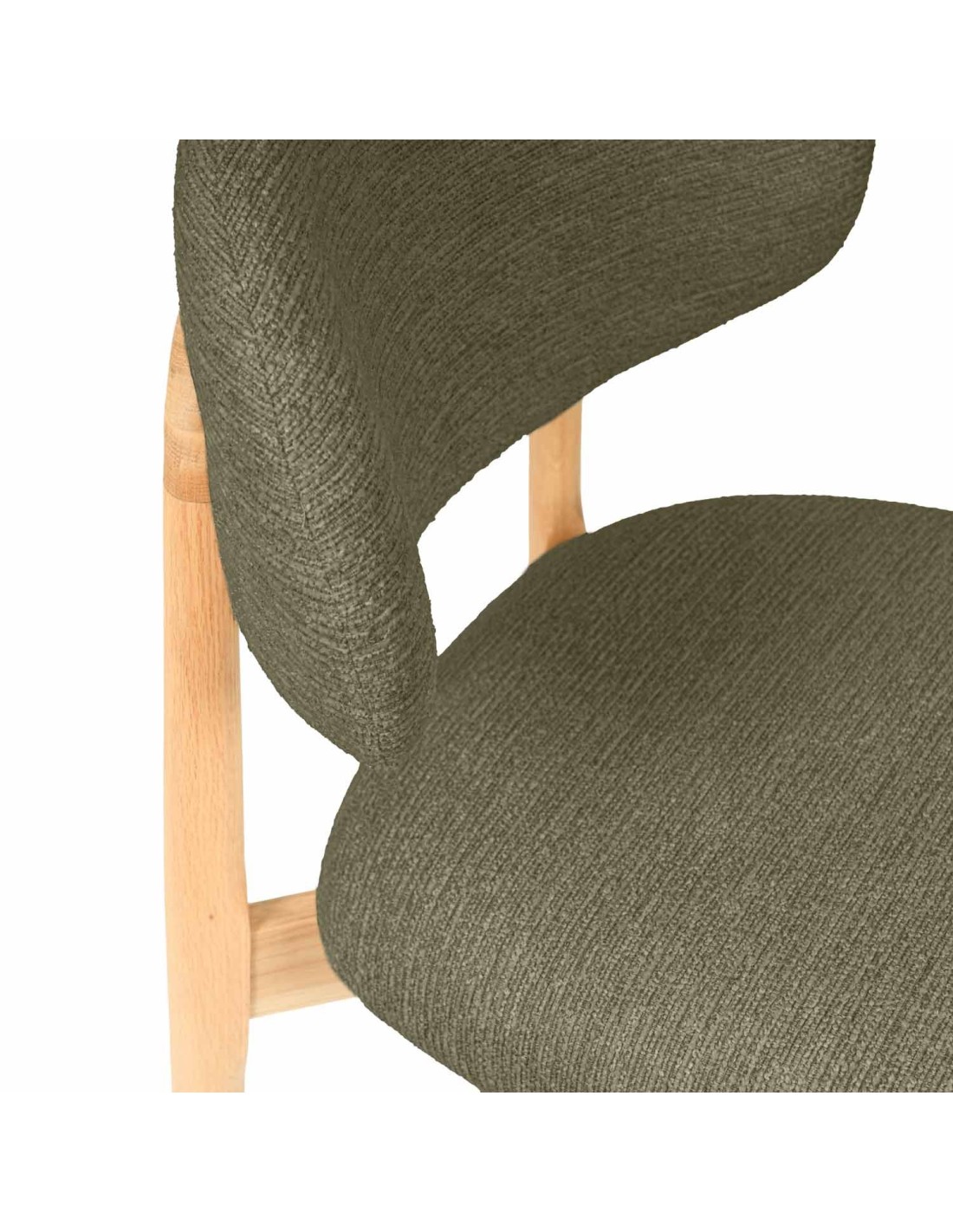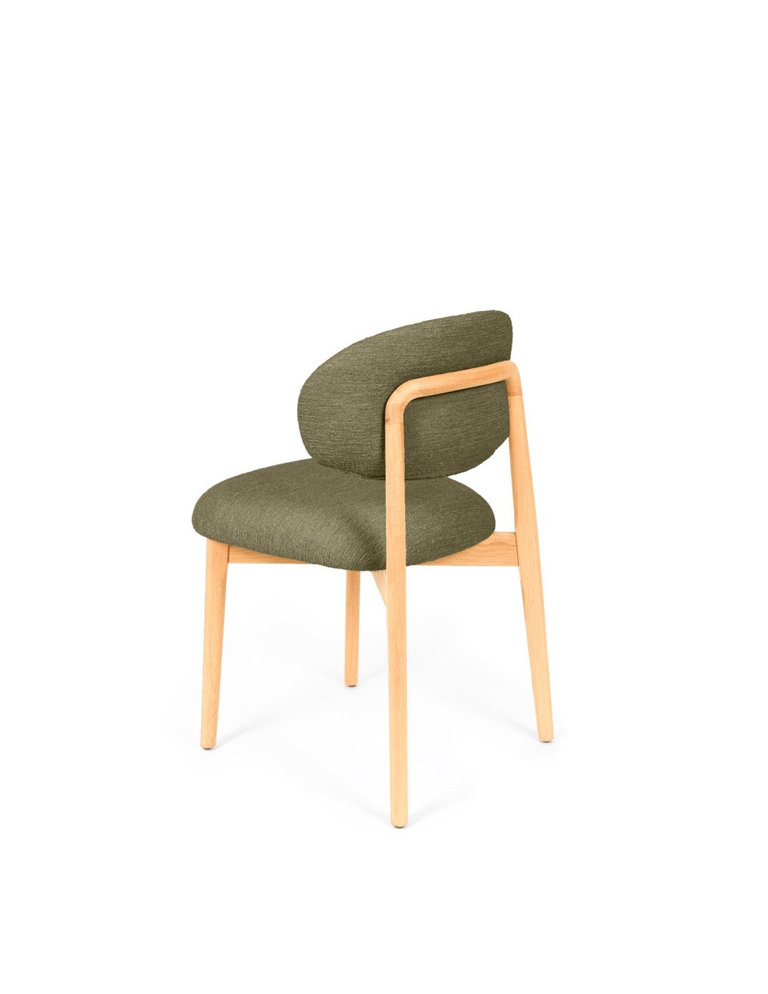 La silla ØDGER destaca por su elegancia natural y su diseño envolvente, ideal para quienes buscan un equilibrio entre estilo y funcionalidad. Apoyada sobre sólidas patas de madera de haya, su estructura transmite calidez y estabilidad, aportando un carácter sereno que encaja a la perfección en espacios contemporáneos, nórdicos o de inspiración orgánica. El respaldo y el asiento, tapizados en tejido suave y disponible en tres tonos neutros —beige, verde y taupe—, invitan al confort sin perder de vista la estética. Pero es su parte trasera la que revela un detalle único: una estructura de madera vista que enmarca el respaldo con un diseño curvo y artesanal, convirtiendo la silla en un objeto decorativo incluso cuando se observa desde atrás.