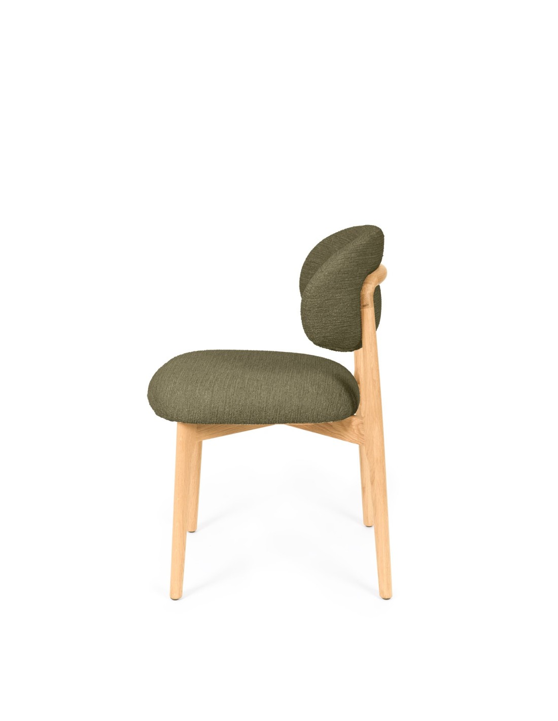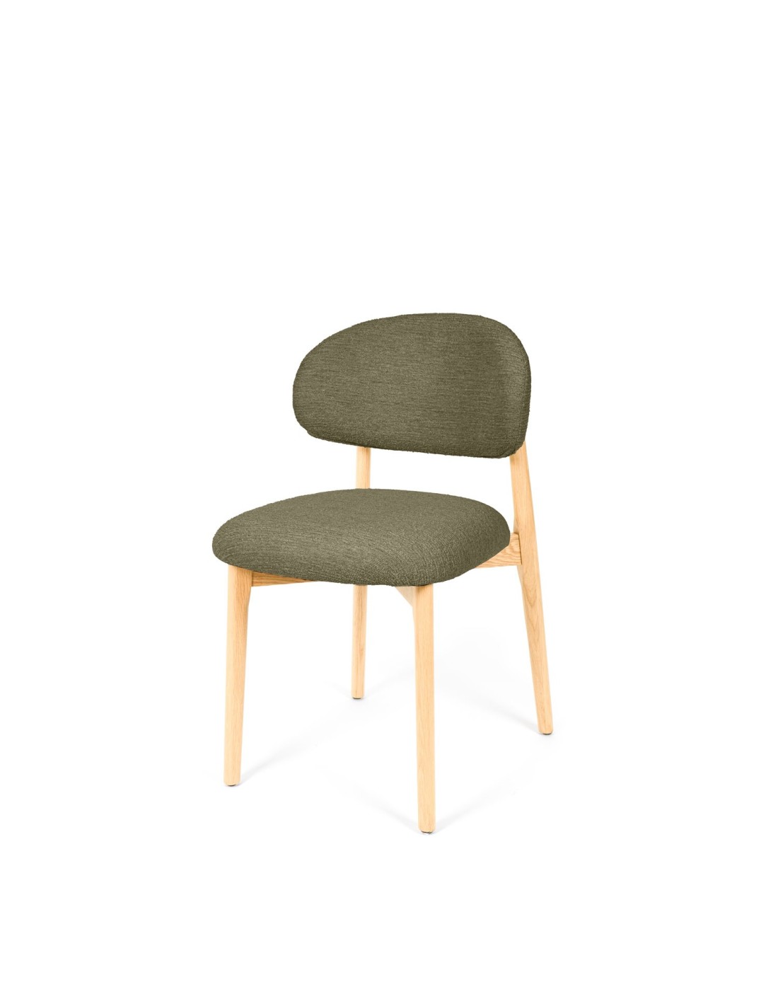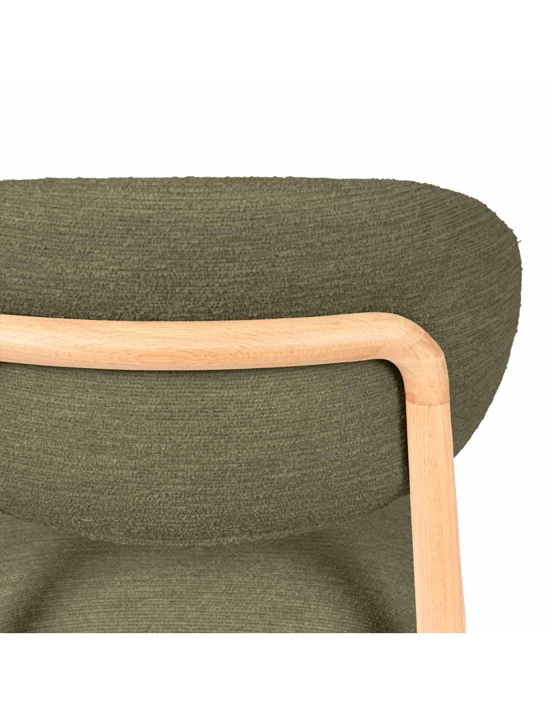 La silla ØDGER destaca por su elegancia natural y su diseño envolvente, ideal para quienes buscan un equilibrio entre estilo y funcionalidad. Apoyada sobre sólidas patas de madera de haya, su estructura transmite calidez y estabilidad, aportando un carácter sereno que encaja a la perfección en espacios contemporáneos, nórdicos o de inspiración orgánica. El respaldo y el asiento, tapizados en tejido suave y disponible en tres tonos neutros —beige, verde y taupe—, invitan al confort sin perder de vista la estética. Pero es su parte trasera la que revela un detalle único: una estructura de madera vista que enmarca el respaldo con un diseño curvo y artesanal, convirtiendo la silla en un objeto decorativo incluso cuando se observa desde atrás.