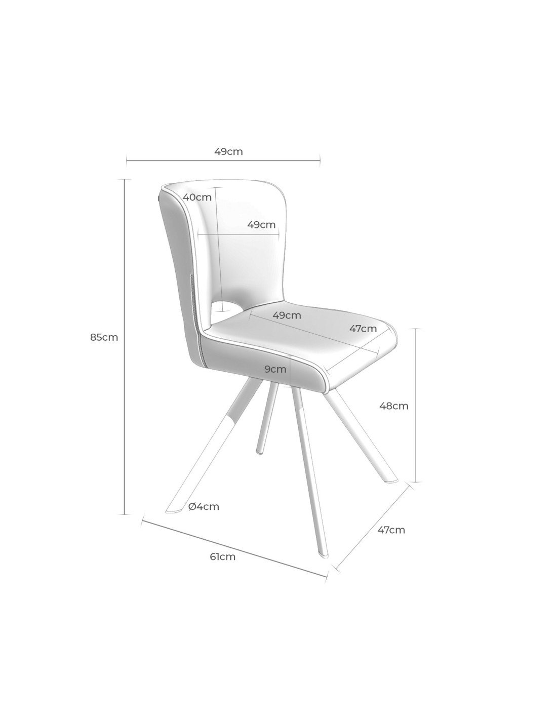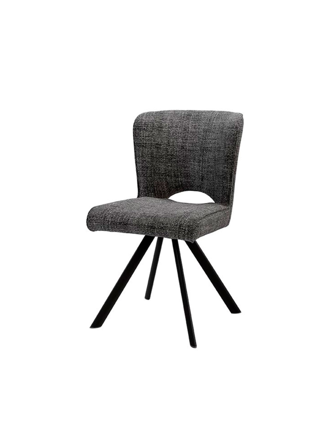 La silla AMELIE ofrece una comodidad excepcional gracias a su asiento y respaldo acolchados. El tejido en color gris oscuro se complementa armoniosamente con las patas metálicas, proporcionando una gran estabilidad. Con un diseño elegante y minimalista, la silla AMELIE se distingue por el detalle de la apertura en su respaldo, añadiendo un toque de sofisticación. Es la elección perfecta para decorar cualquier estancia de tu hogar o tu oficina.
