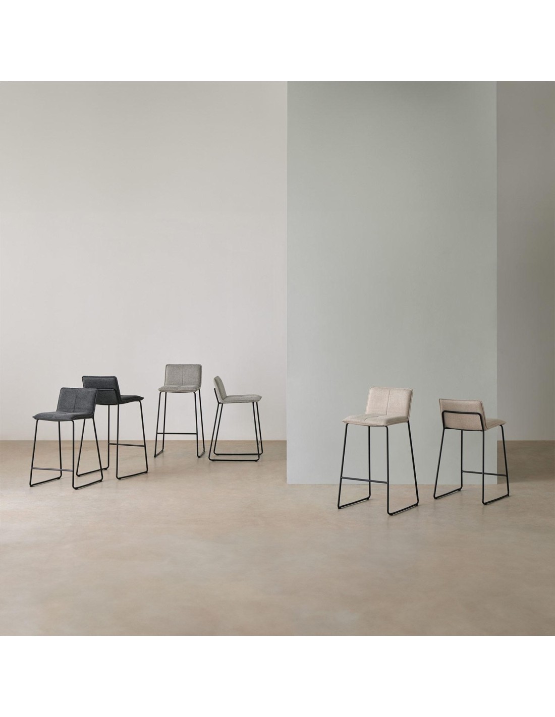 Taburete Alto ABEL 74 cm, Textil / Metal / Contrachapado / Beige