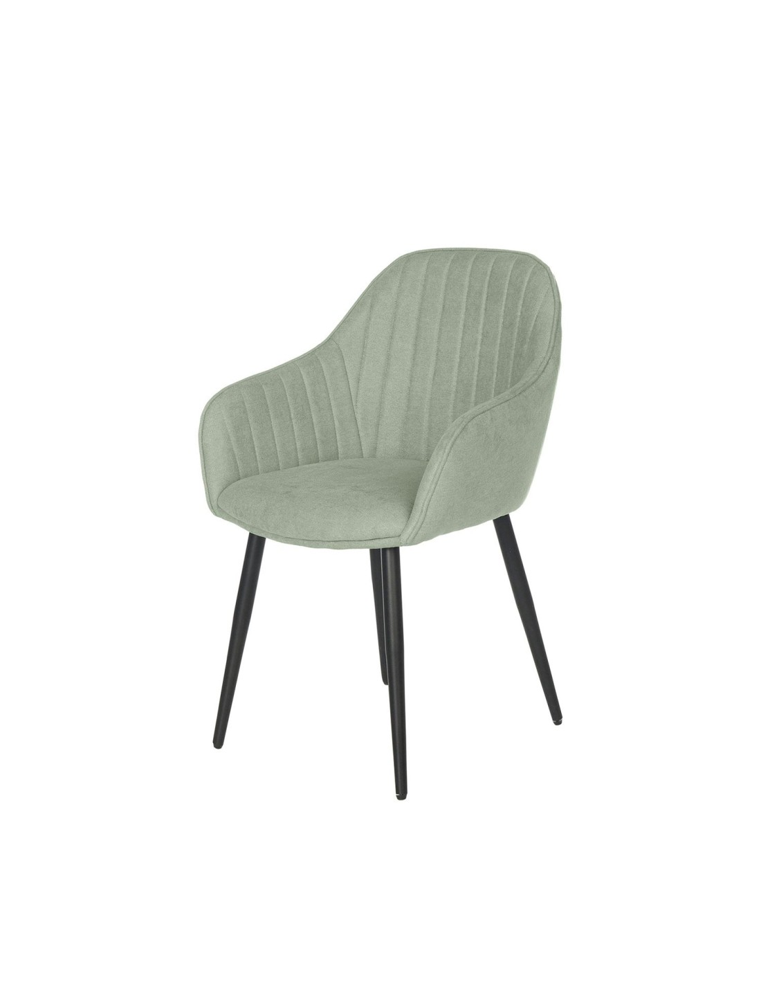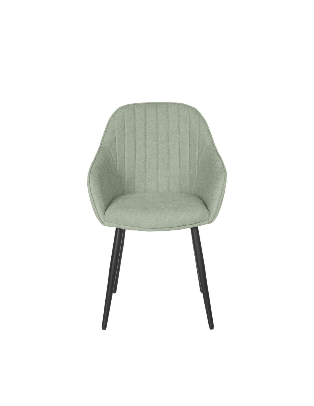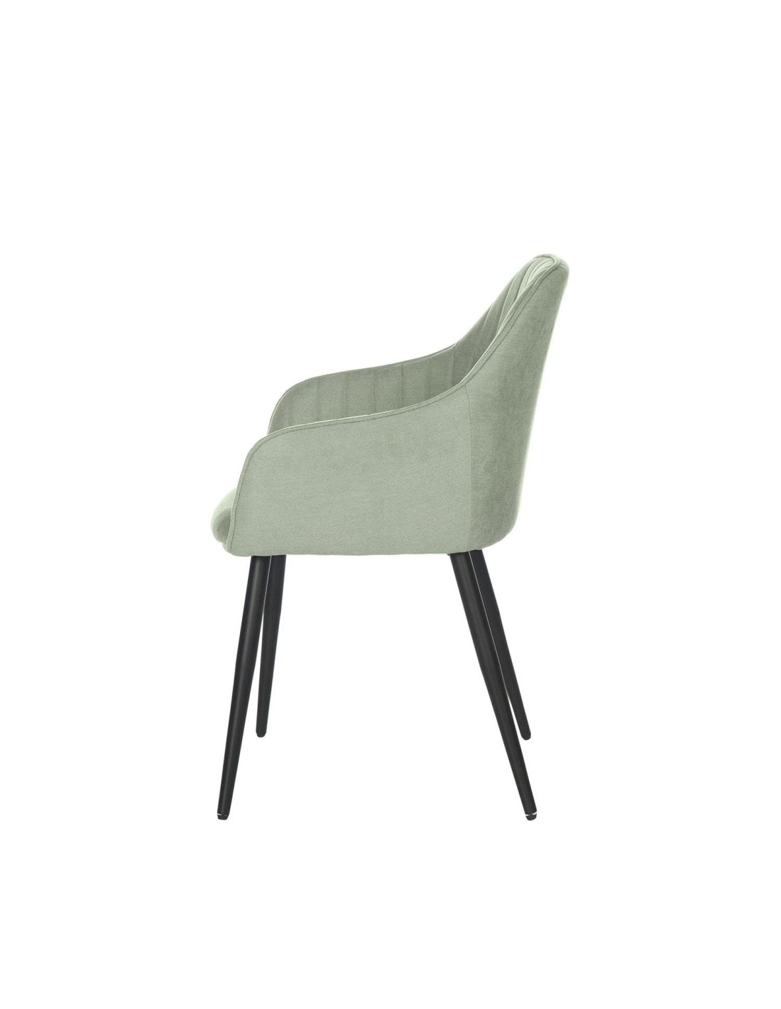 La silla LIDWINA combina comodidad y diseño. Su estructura acolchada con reposabrazos y respaldo alto, junto con su tejido en color menta con grabado en líneas verticales, le confiere un estilo elegante y sofisticado. Además, es una silla muy cómoda, ideal para comedores o salas de estar. Sus patas metálicas en color negro proporcionan durabilidad y estabilidad, asegurando una larga vida útil.