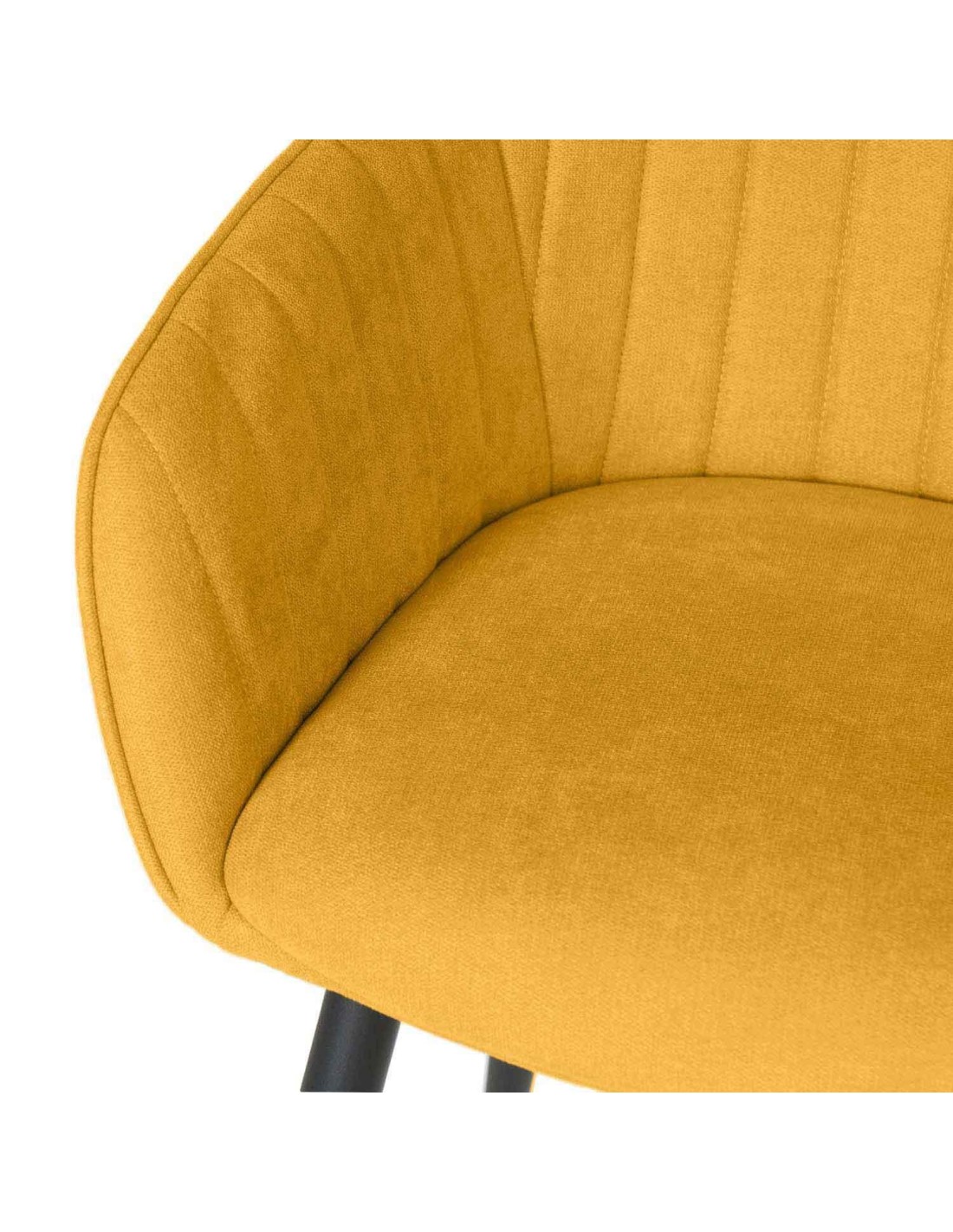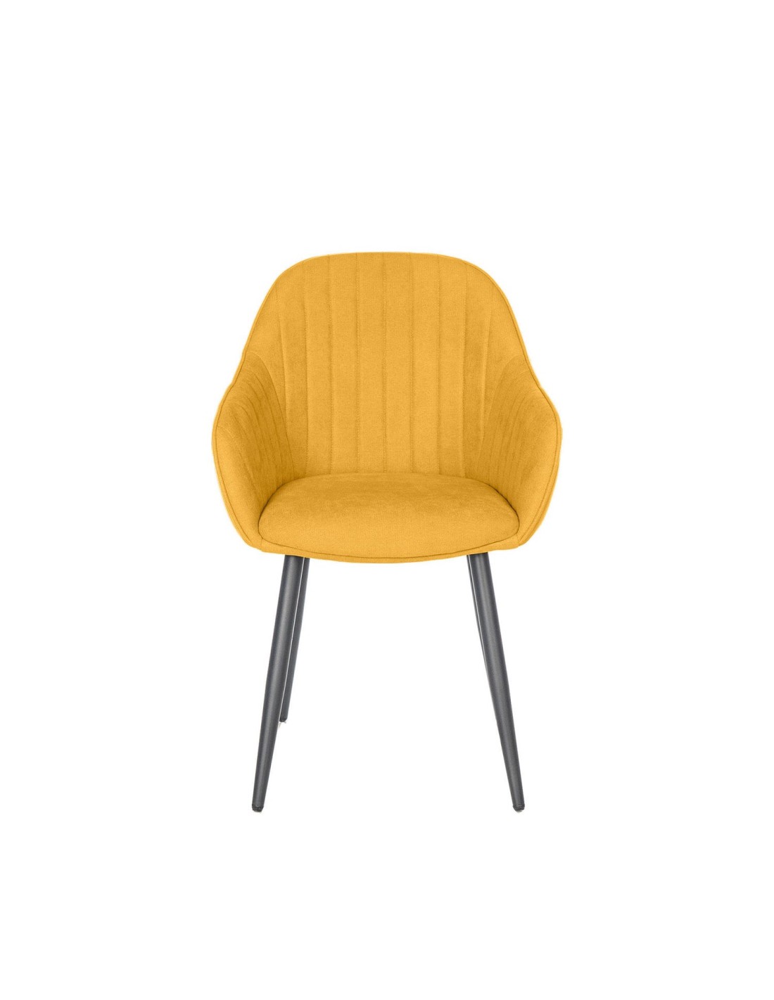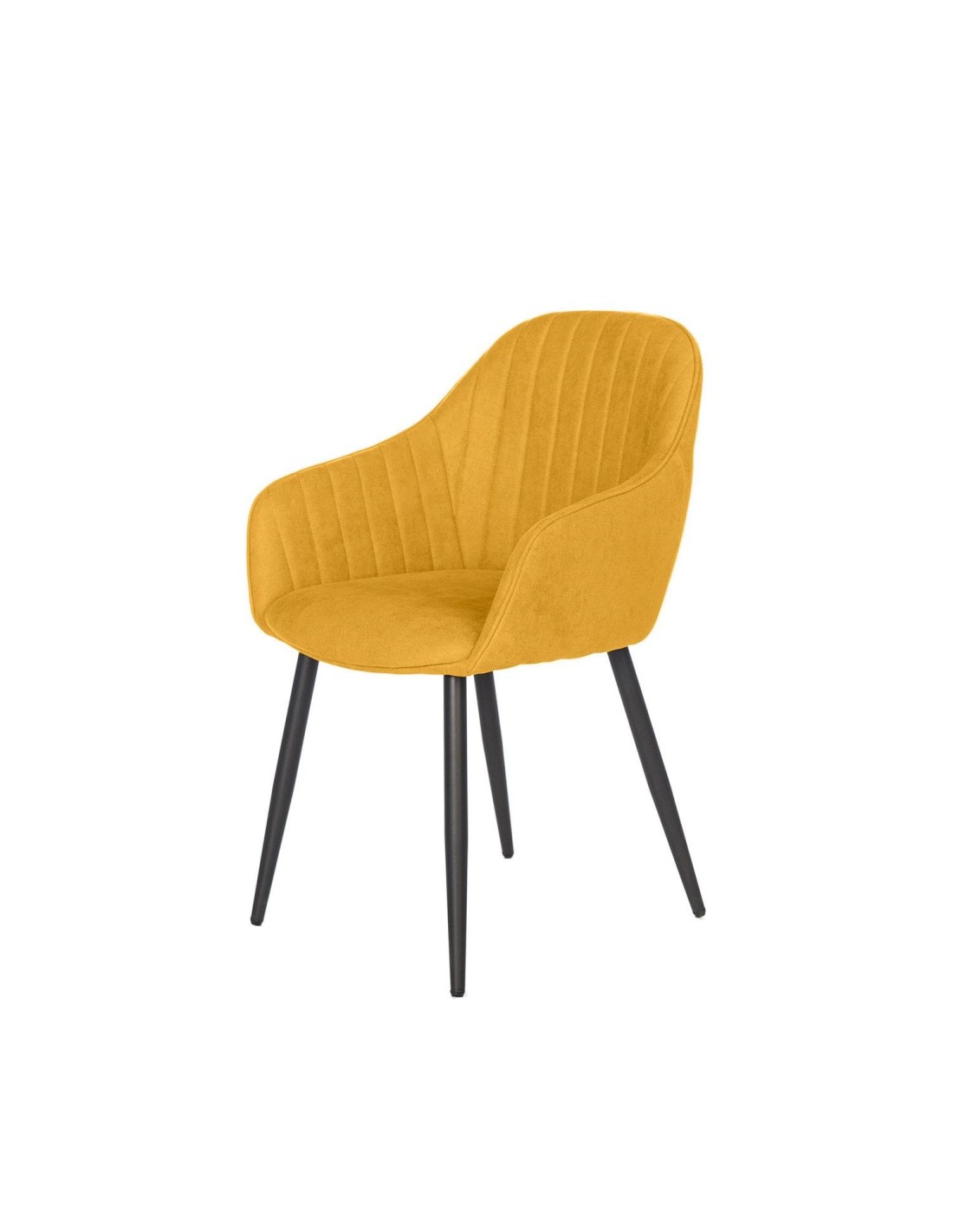 La silla LIDWINA combina comodidad y diseño. Su estructura acolchada con reposabrazos y respaldo alto, junto con su tejido en color mostaza con grabado en líneas verticales, le confiere un estilo elegante y sofisticado. Además, es una silla muy cómoda, ideal para comedores o salas de estar. Sus patas metálicas en color negro proporcionan durabilidad y estabilidad, asegurando una larga vida útil.