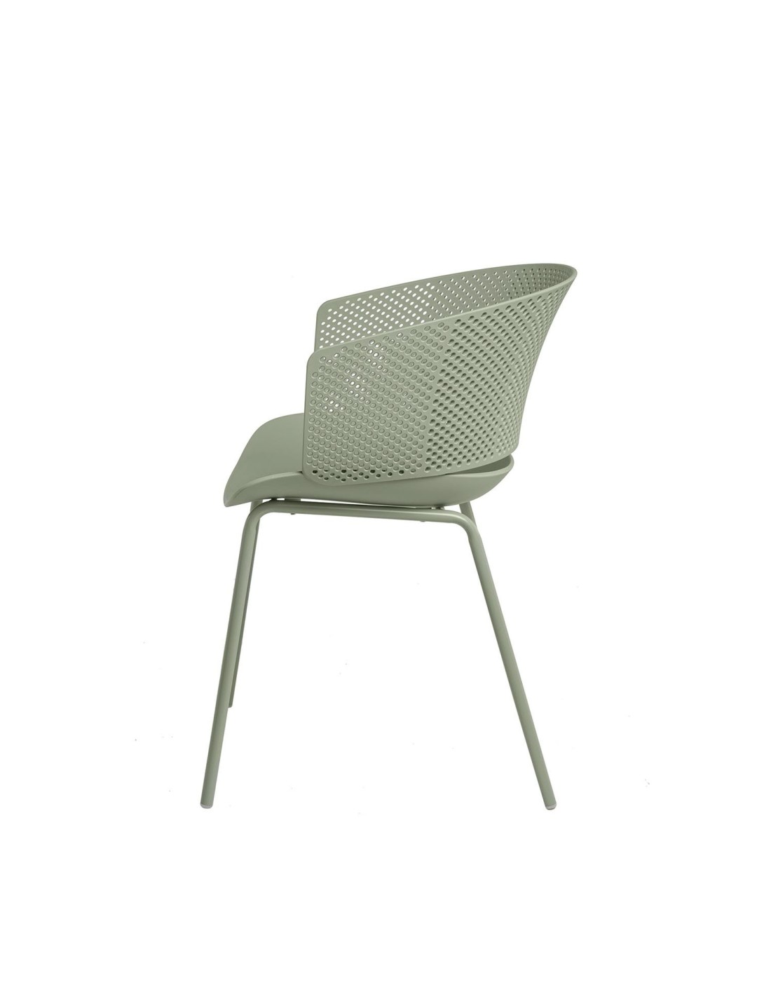 La silla KRISTINE combina diseño vanguardista con comodidad. Su respaldo ergonómico, con perforaciones que aportan un toque de estilo, se adapta perfectamente a la curva de la espalda. La estructura de polipropileno y las patas de metal en color menta le proporcionan resistencia y un diseño atemporal.