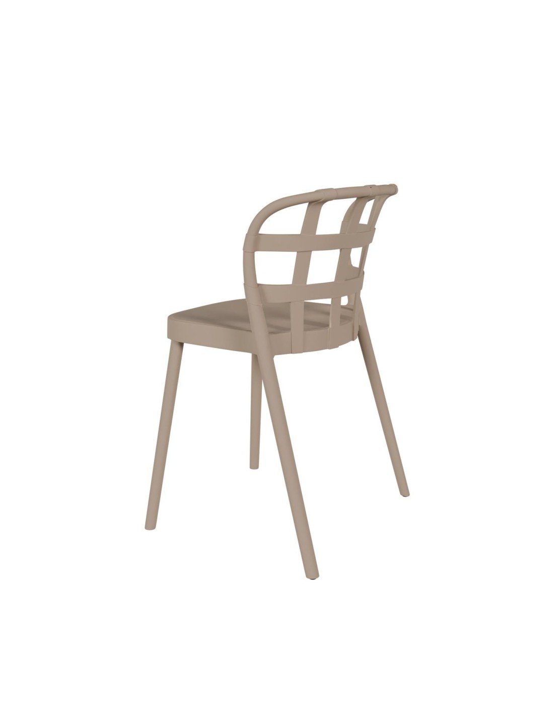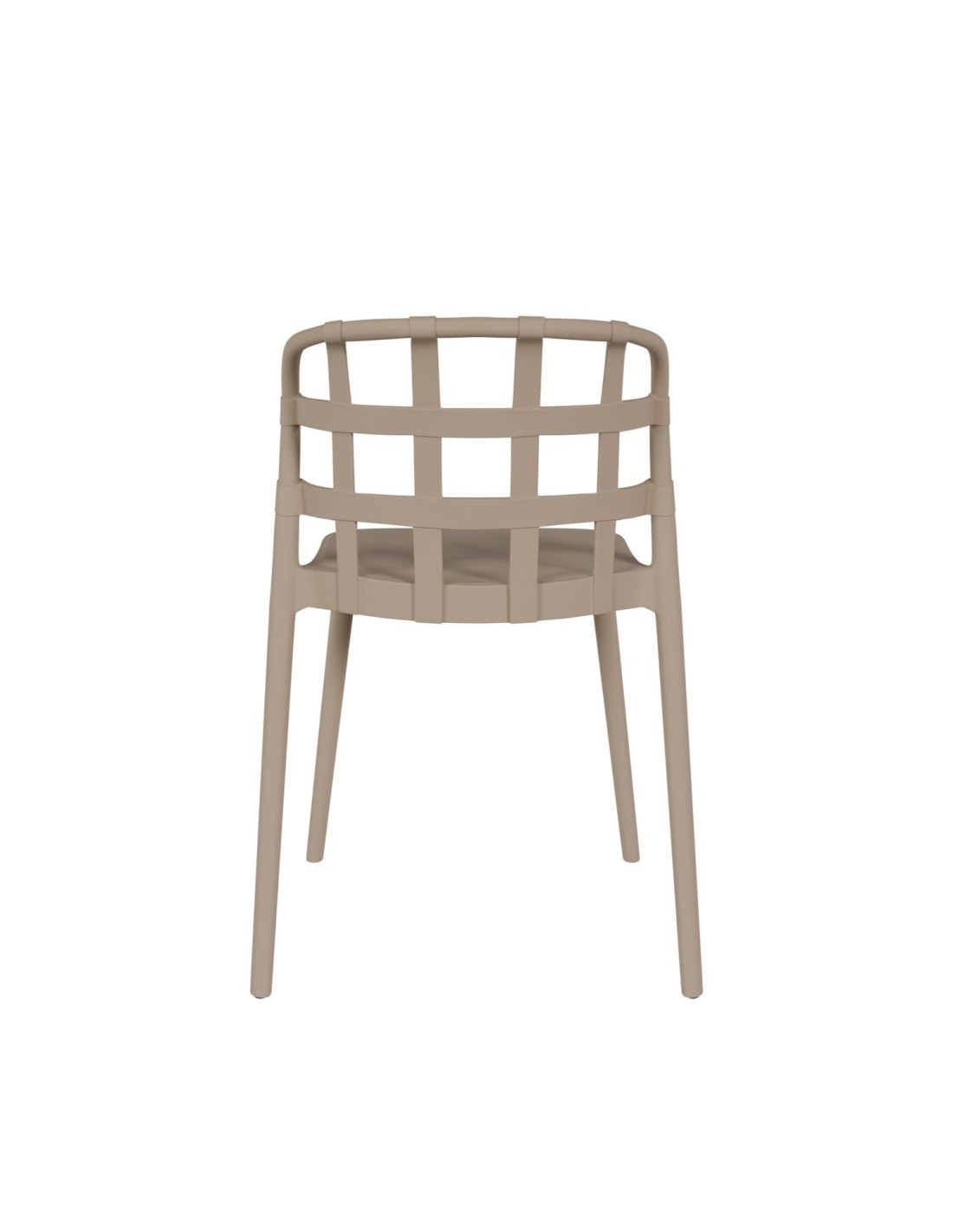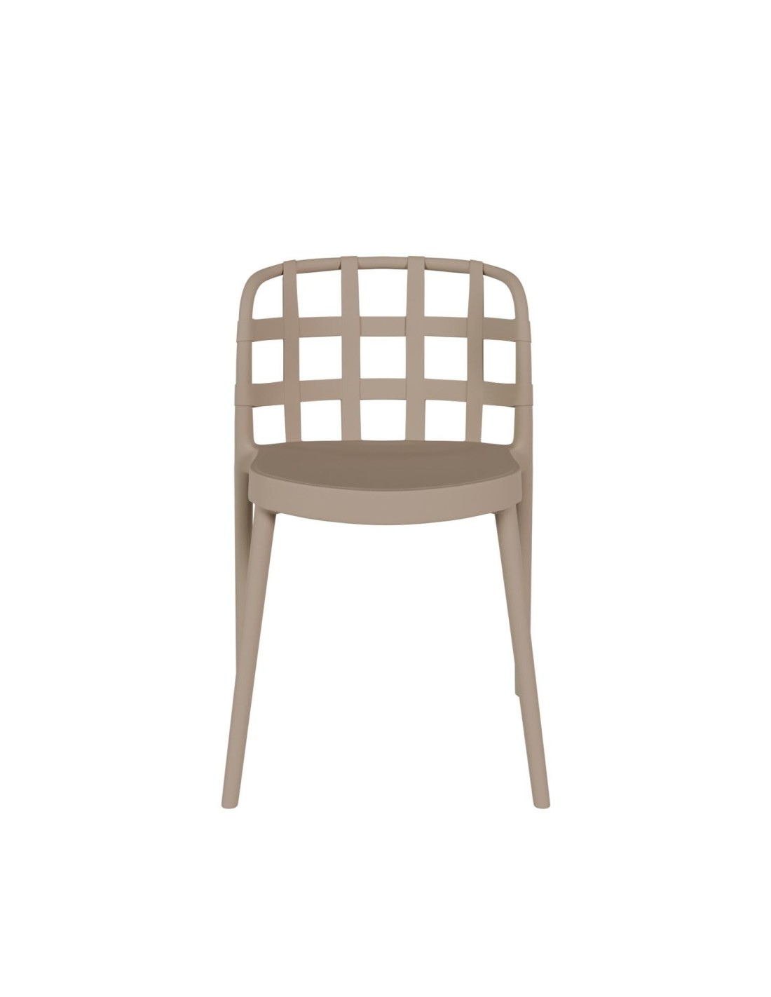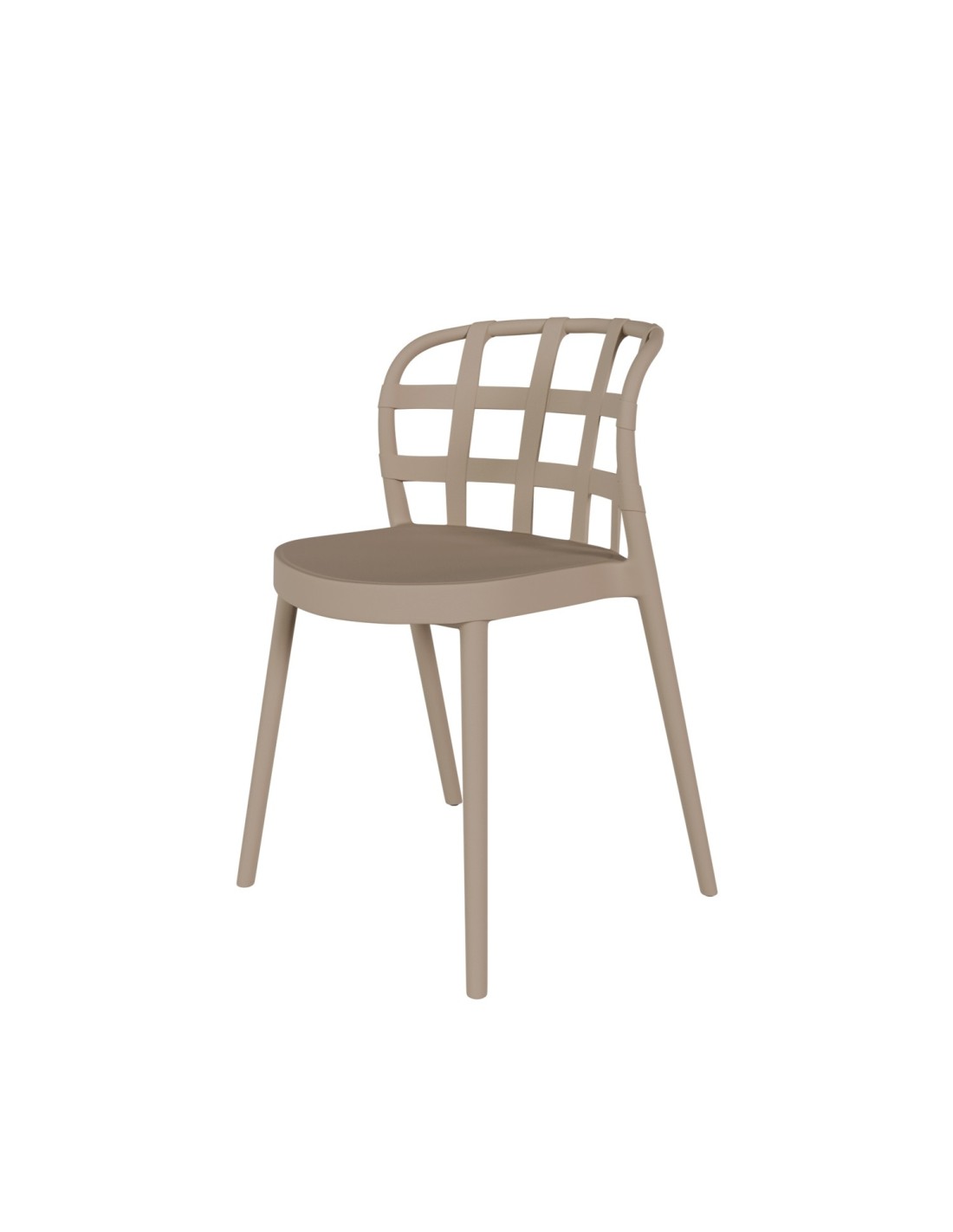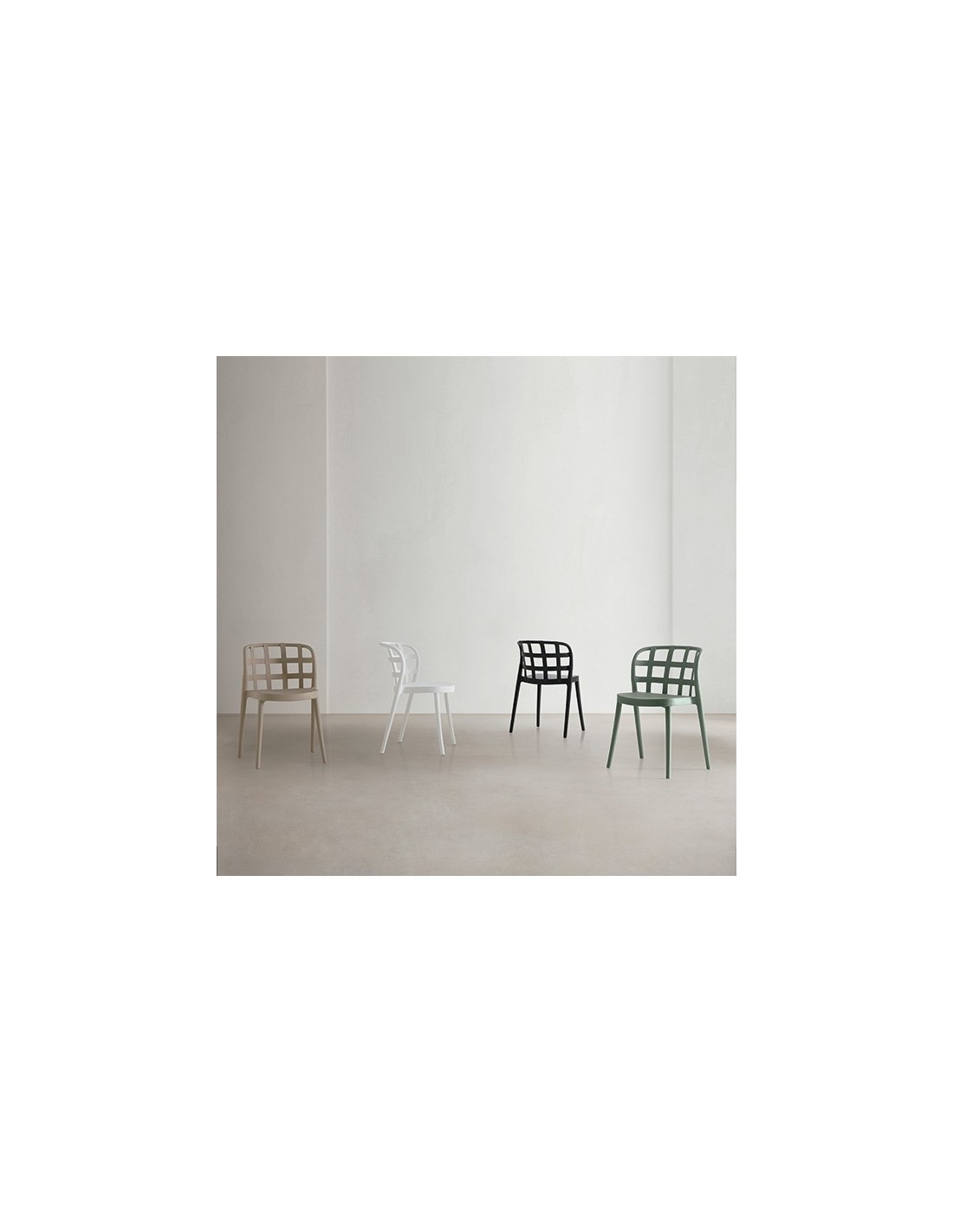 La silla BLOBE se caracteriza por su diseño elegante y contemporáneo. El asiento, de grosor generoso, ofrece mayor comodidad y estabilidad, mientras que el respaldo, ligeramente curvado, está diseñado para adaptarse ergonómicamente a la forma de la espalda, brindando una experiencia de asiento más cómoda y relajada. Este último, además, destaca por su distintivo patrón de rejilla de tiras anchas entrecruzadas, aportando un toque moderno y sofisticado. Fabricada completamente en polipropileno de alta calidad, esta silla no solo es duradera, sino que también es apilable, lo que facilita su almacenamiento y transporte.