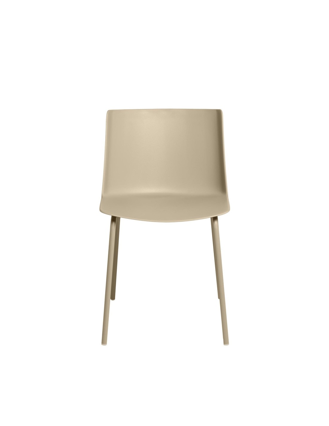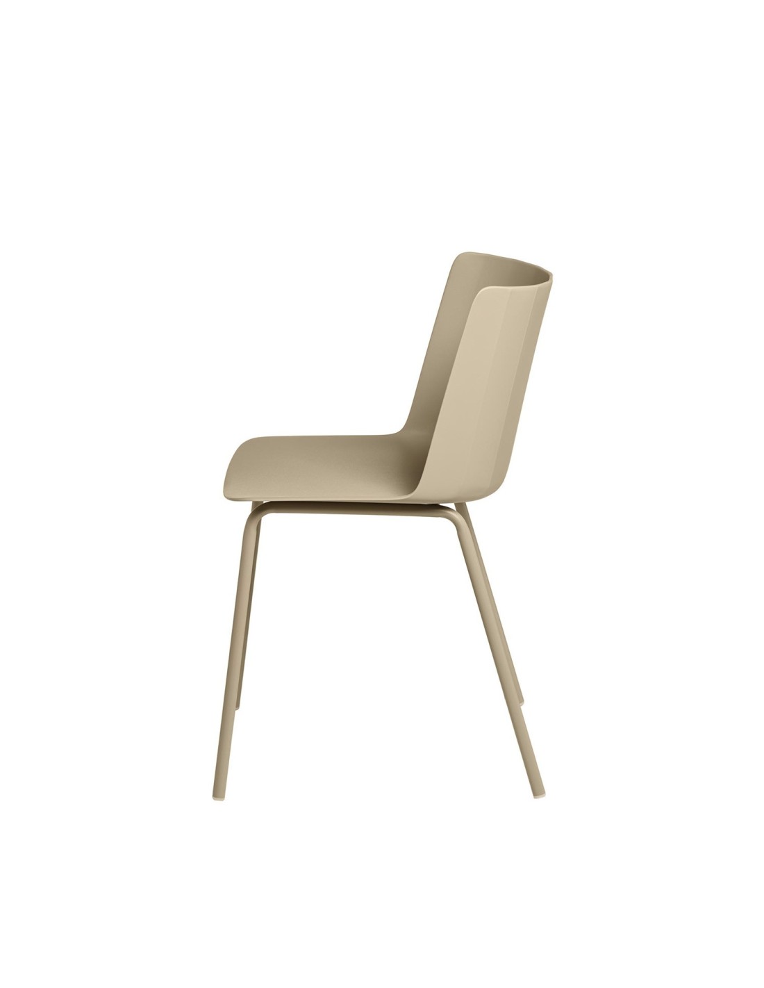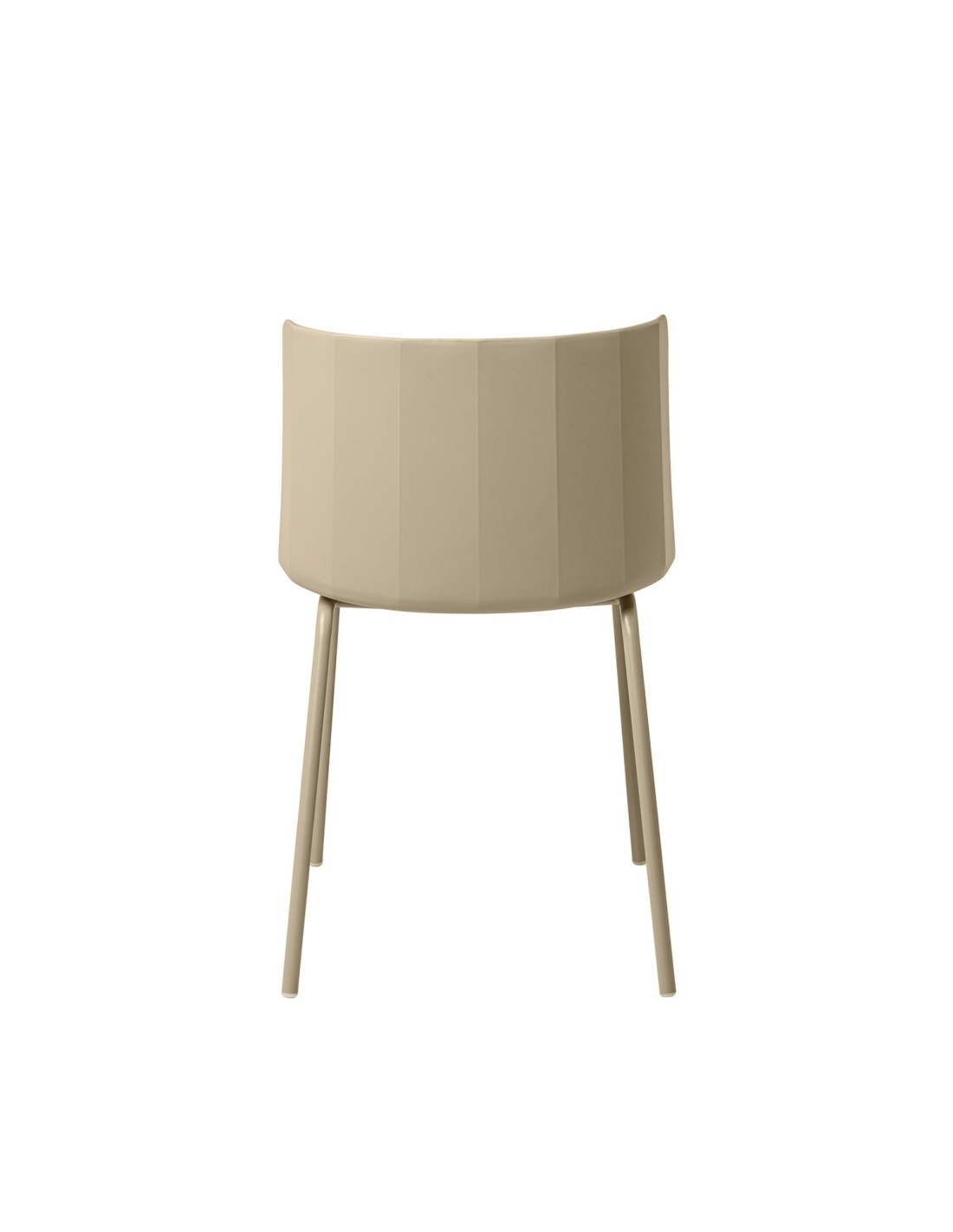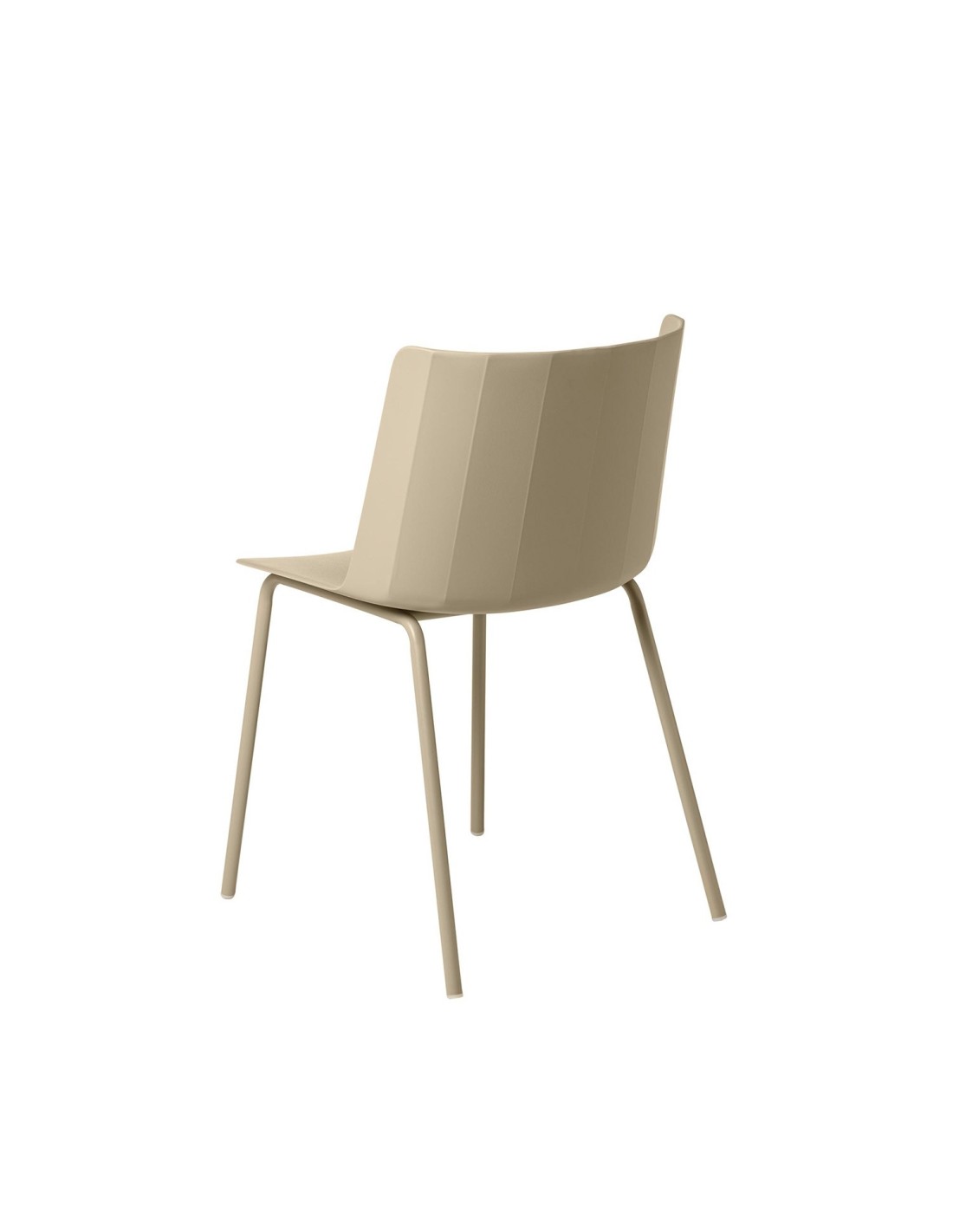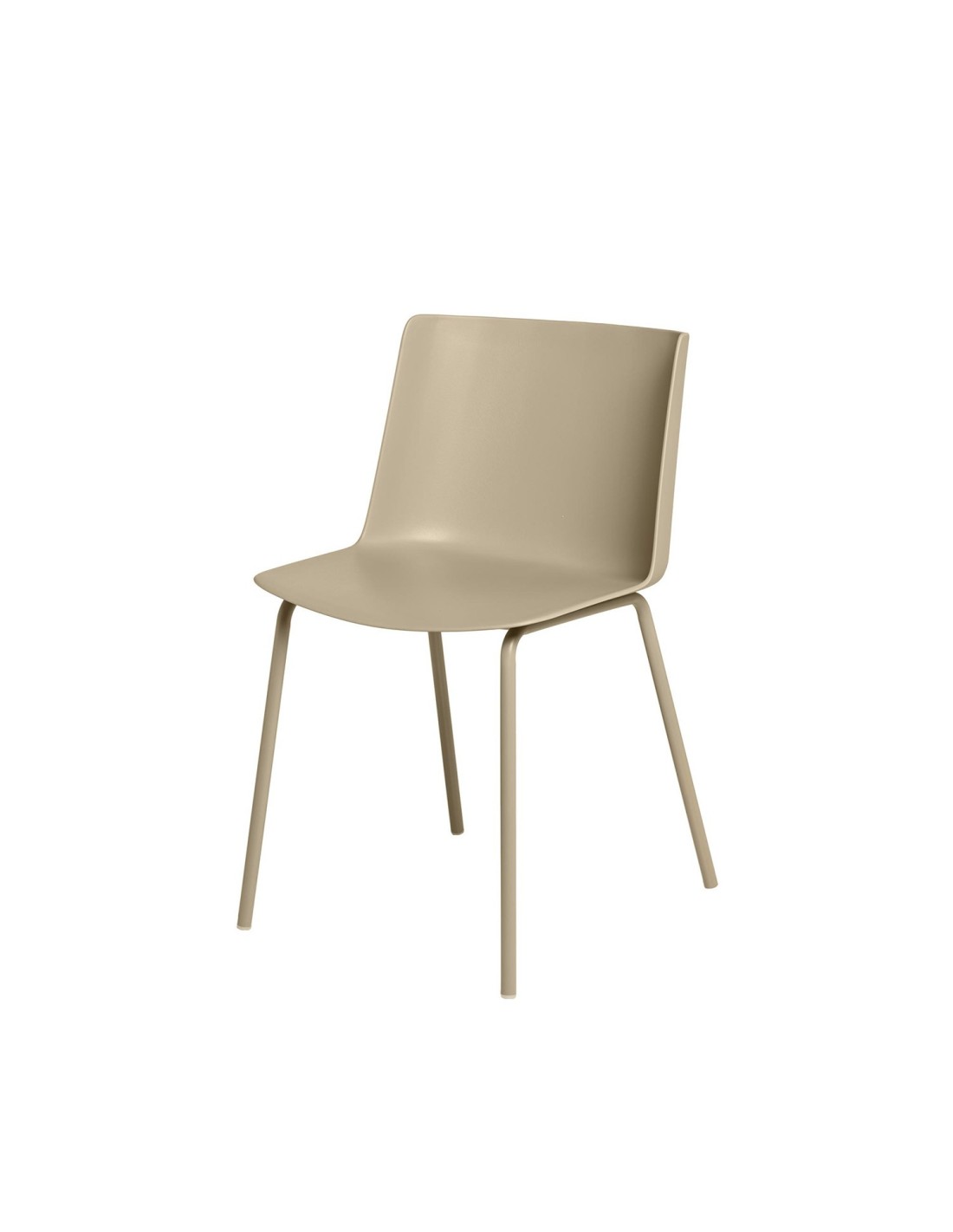 Esta silla destaca por su diseño sencillo y elegante, ideal para diferentes espacios. El respaldo tiene un ligero relieve en la parte trasera que le ofrece un punto de distinción a nivel visual, complementando a la perfección con las líneas rectas y suaves. La silla CARL está fabricada en polipropileno resistente y patas de metal.