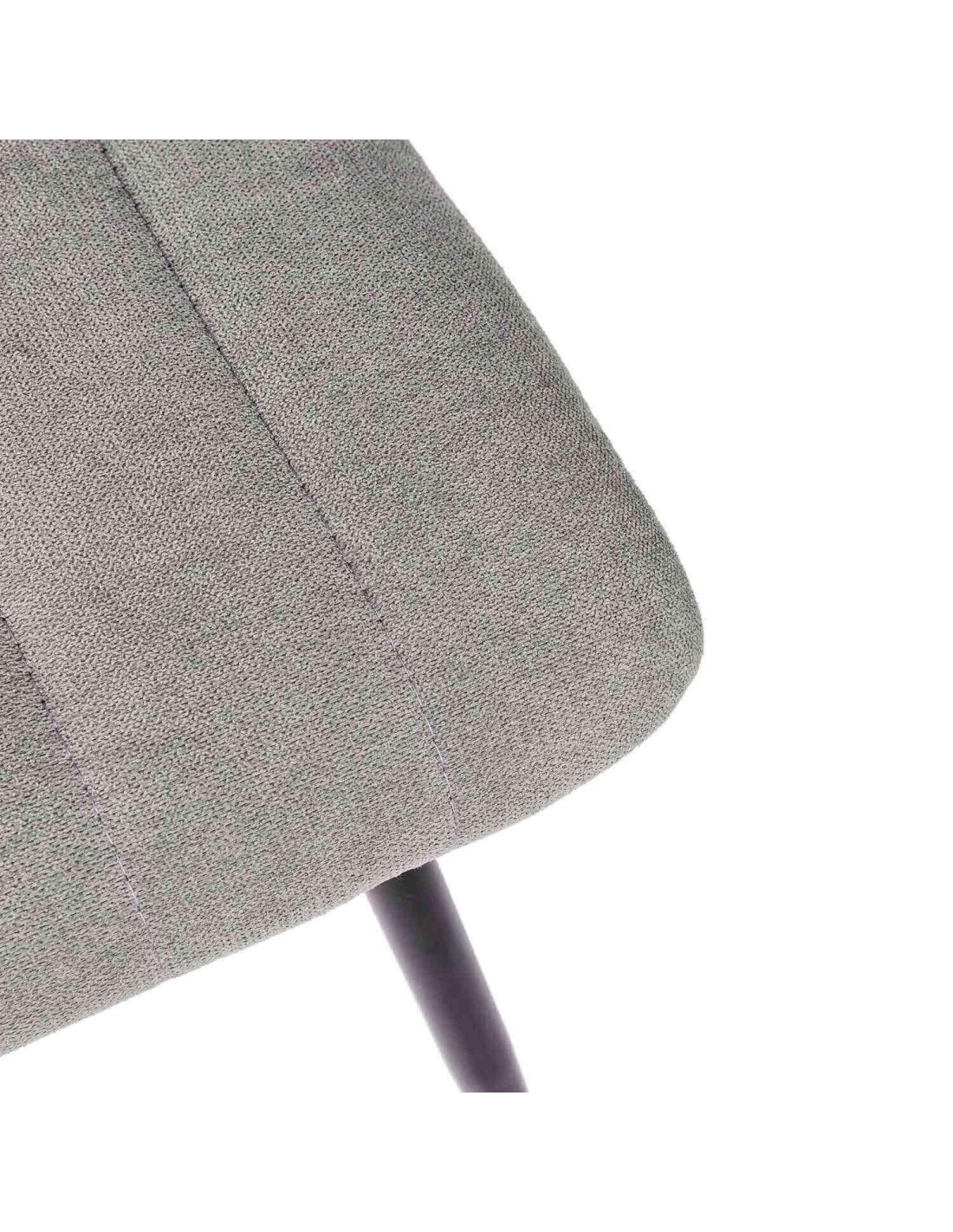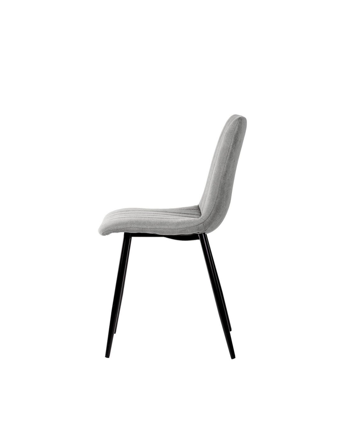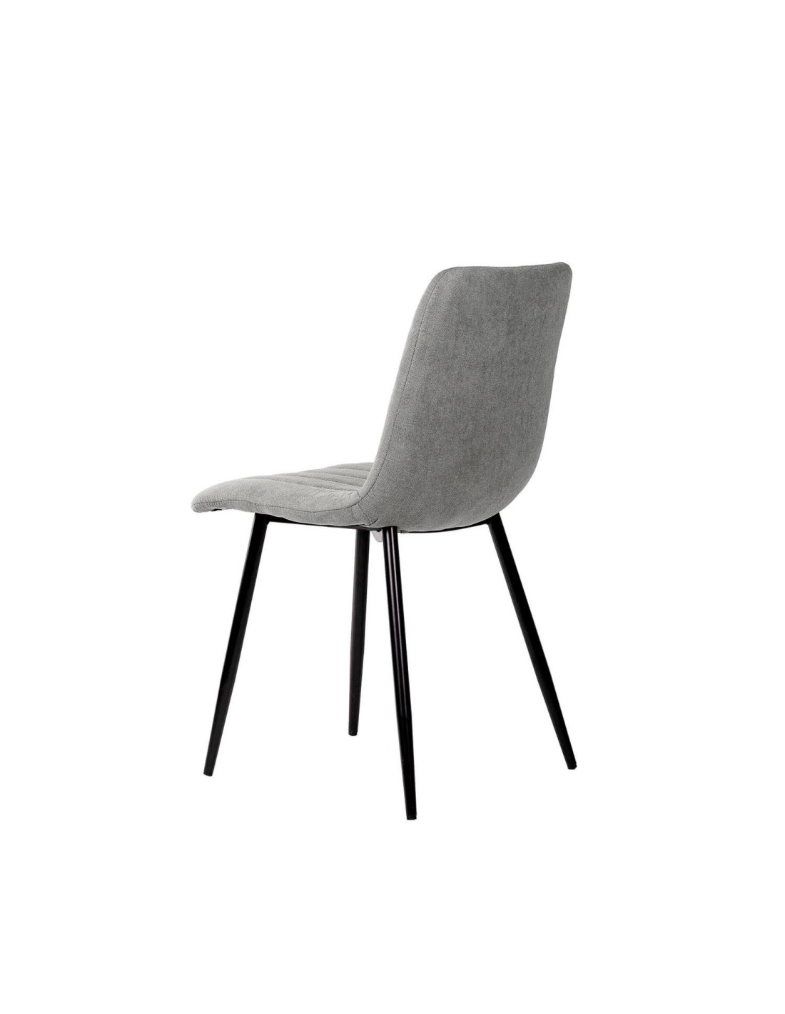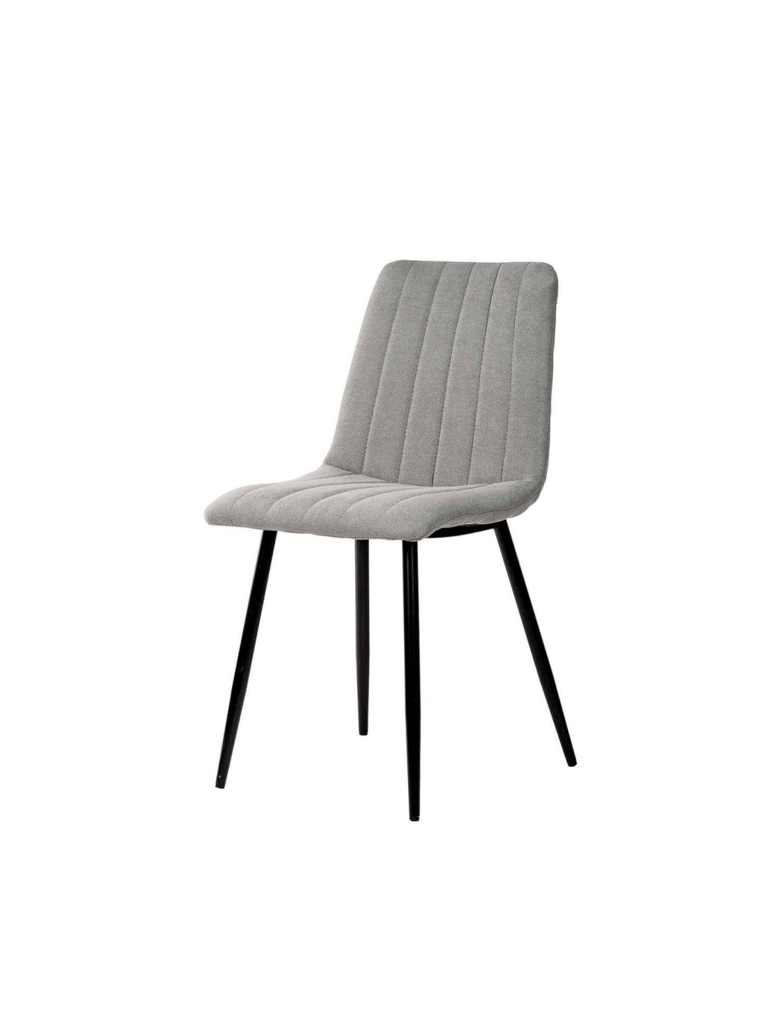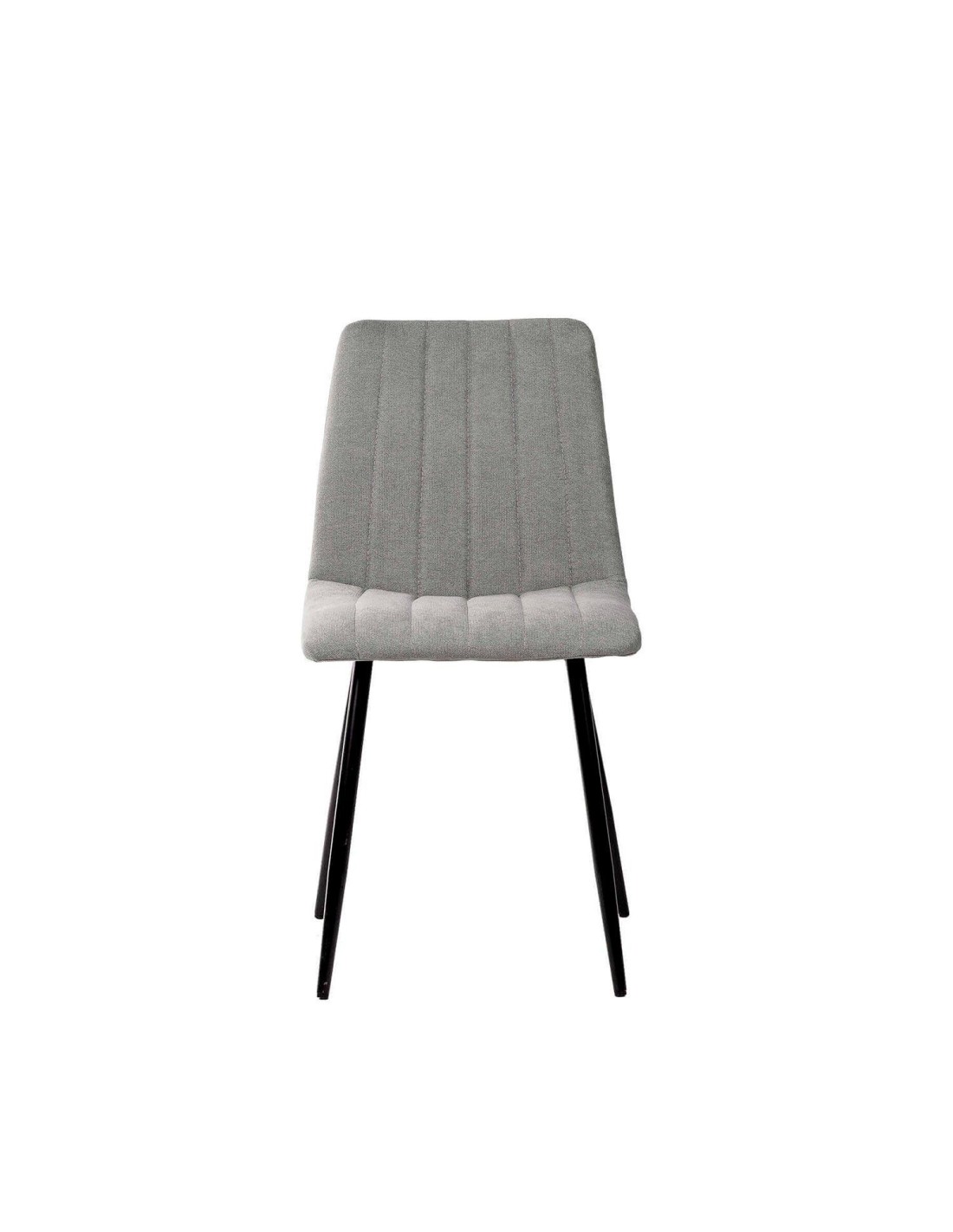 Silla metálica de diseño minimalista y elegante. El asiento y el respaldo están acolchados y presentan un tapizado en tela gris claro con costuras verticales que crean una textura acanalada, añadiendo tanto comodidad como interés visual. El respaldo ligeramente inclinado y el asiento acolchado aseguran una postura cómoda durante largas comidas o reuniones. Las patas metálicas cónicas negras proporcionan un contraste elegante con el color claro del tapizado, además de garantizar estabilidad y durabilidad. La silla KÅNA es perfecta para comedores contemporáneos, pero su diseño atemporal permite que se integre bien en oficinas, salas de estar o incluso en espacios comerciales.