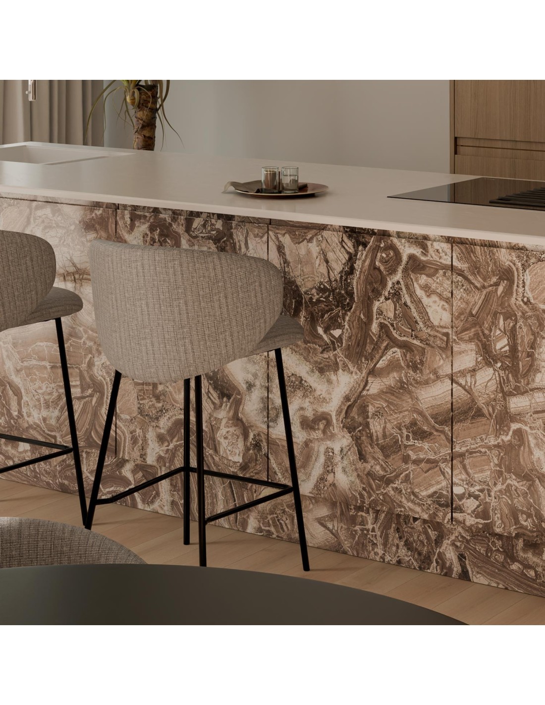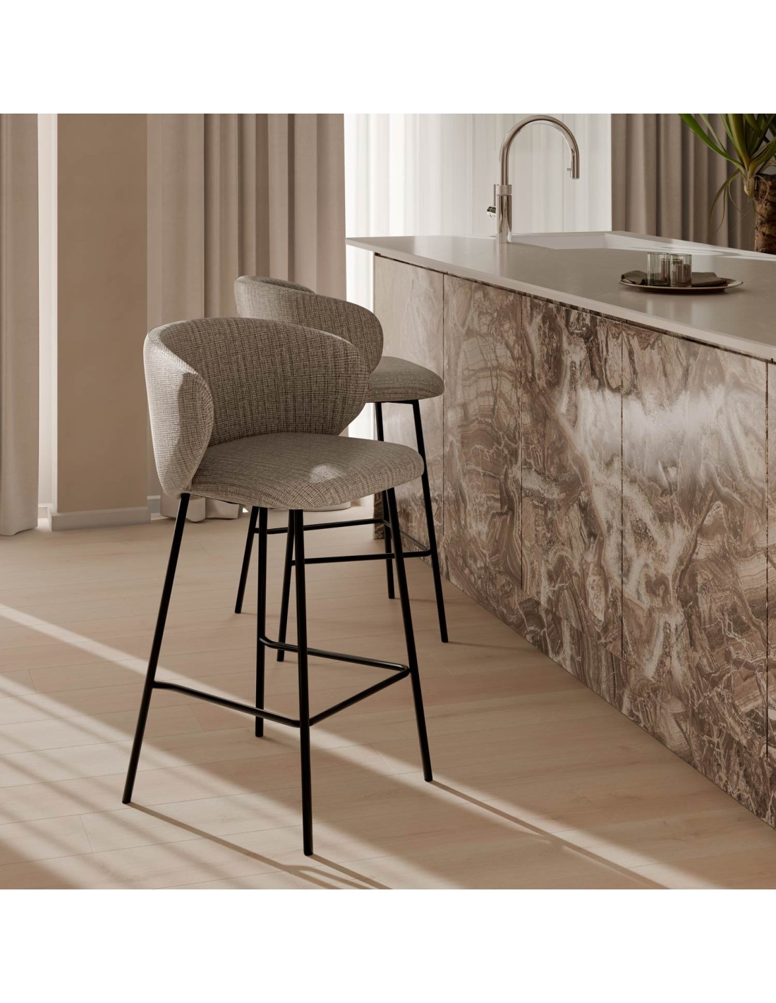 Taburete Alto RENATE 66 cm, Textil / Metal / Taupe