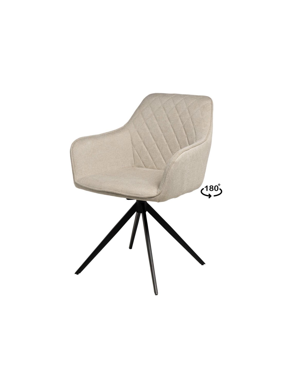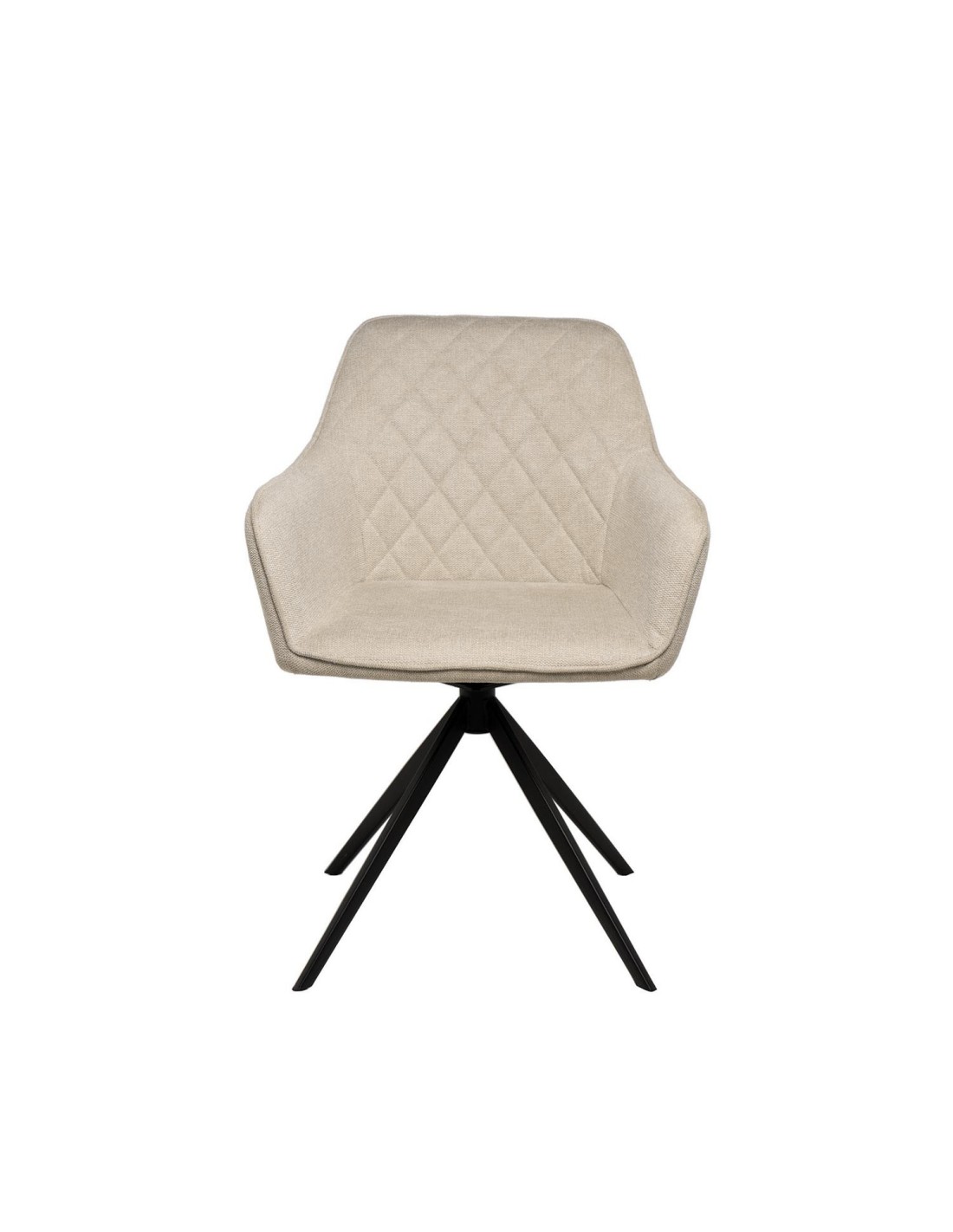 La silla AMY tiene un diseño ligeramente curvilíneo muy favorecedor con un respaldo con patrón de costuras en forma de diamante, siendo un detalle estético muy distintivo. La base metálica, compuesta por cuatro patas delgadas en ángulo y pintadas en negro, proporciona un contraste atractivo. Además, la silla cuenta con la capacidad de girar 180º con retorno automático, aumentando su funcionalidad y versatilidad. Perfecta para oficinas, la silla AMY combina comodidad y estilo moderno, siendo una opción ideal para quienes buscan una pieza llamativa y práctica.