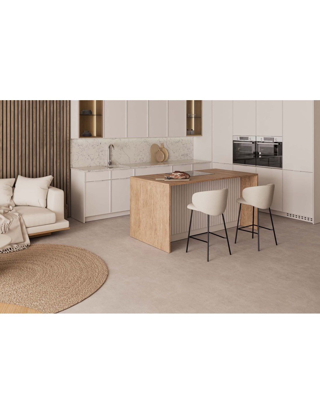 Añade un toque de elegancia sin renunciar a la comodidad con el taburete alto RENATE. Esta pieza destaca por su diseño moderno y funcionalidad. Su respaldo alto y ergonómico proporciona un excelente soporte para la espalda, mientras que el asiento acolchado ofrece un confort adicional, convirtiendo al taburete RENATE en la opción ideal para cocinas, bares o áreas de descanso. El reposapiés integrado no solo mejora la estabilidad del taburete, sino que también ofrece un lugar cómodo para descansar los pies. El tejido en color beige, confeccionado en 100% poliéster, aporta un aspecto sofisticado y elegante.