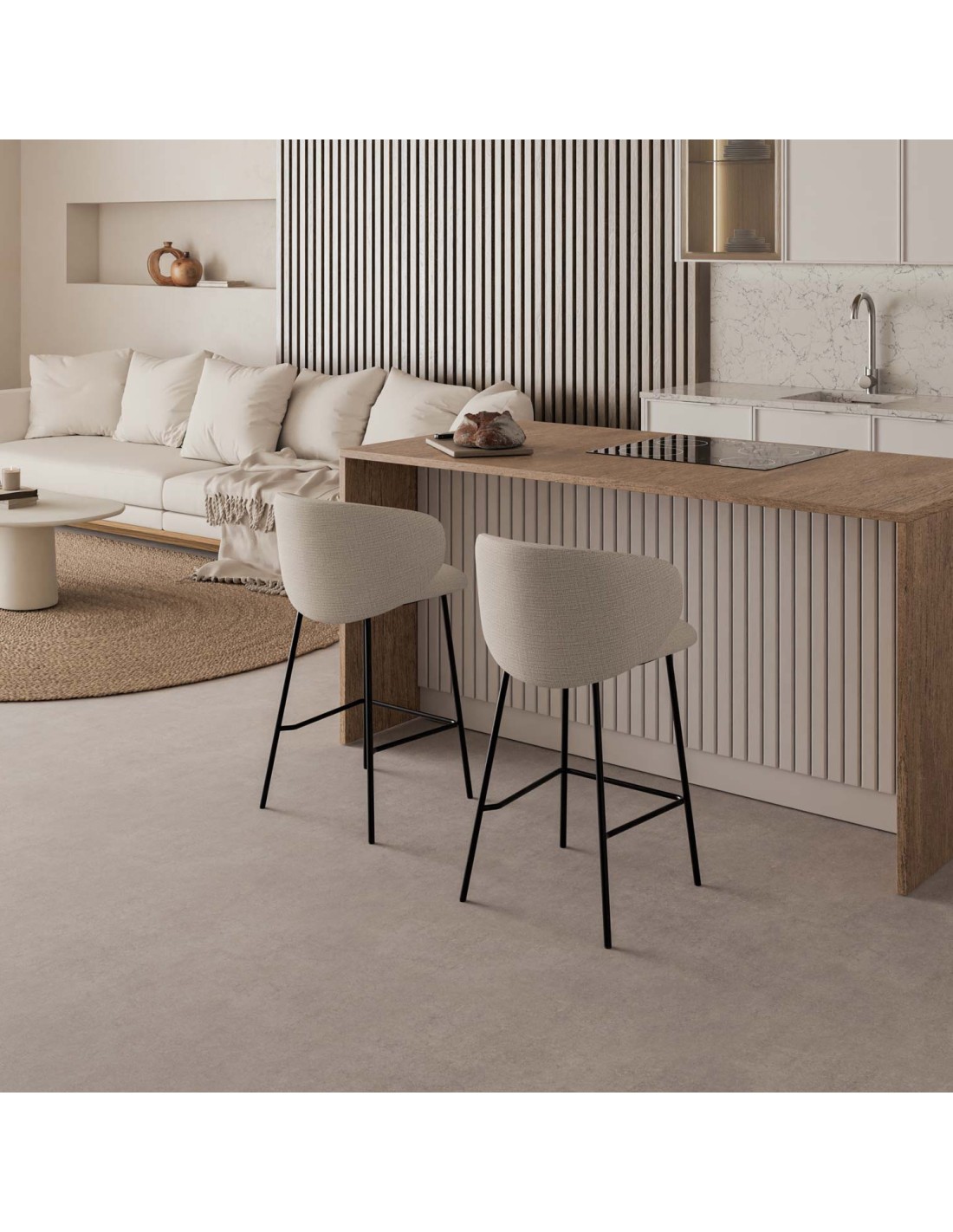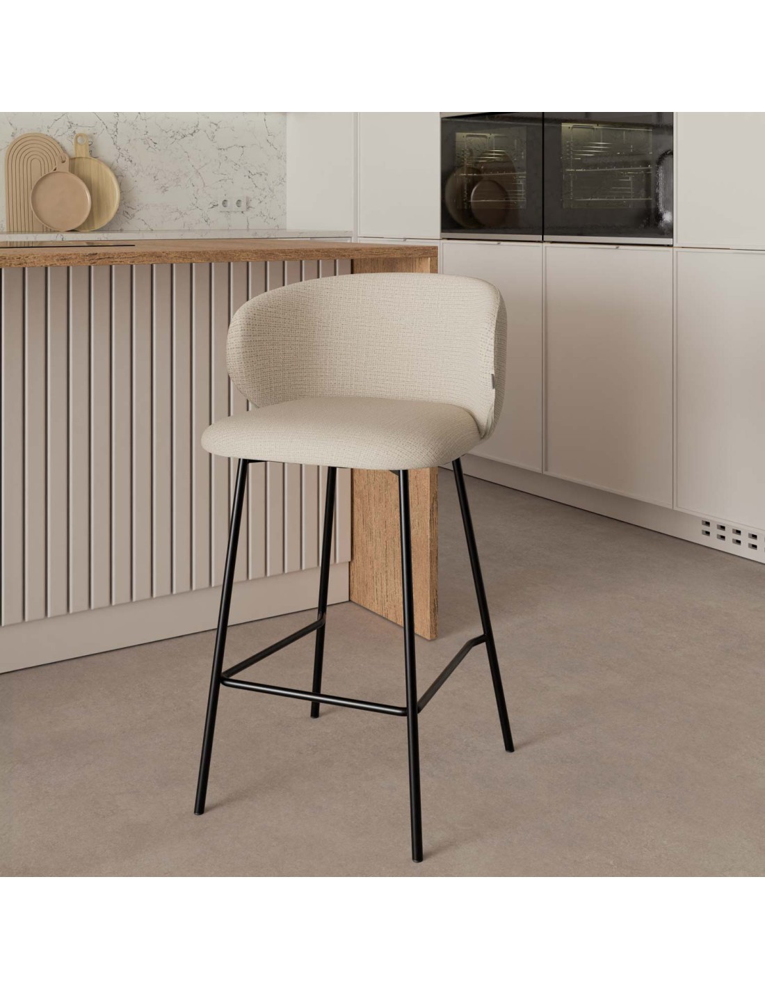 Taburete Alto RENATE 66 cm, Textil / Metal / Beige
