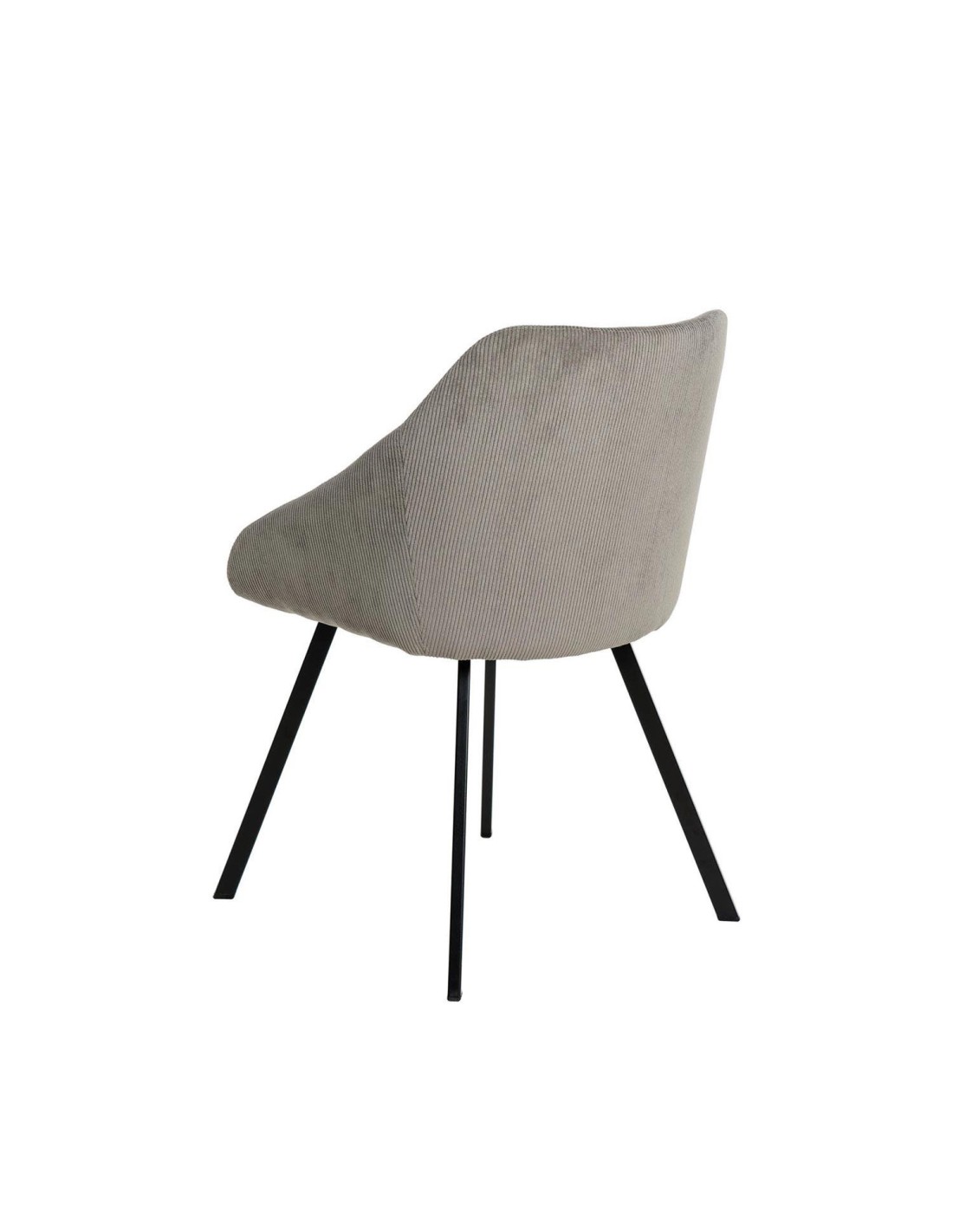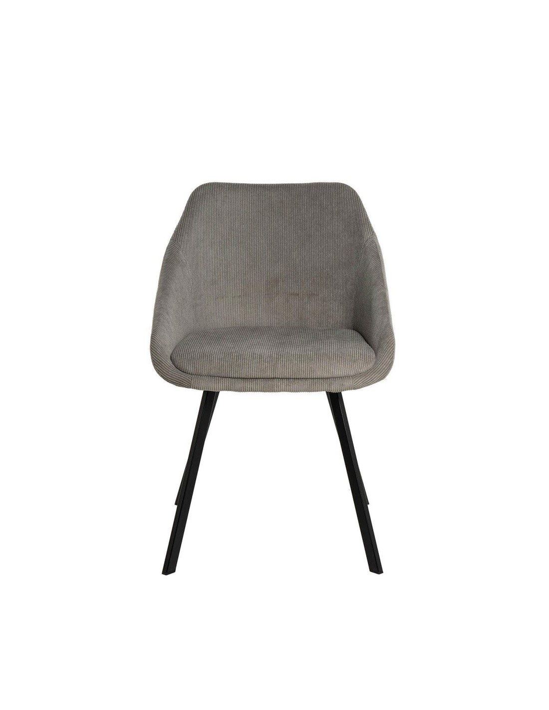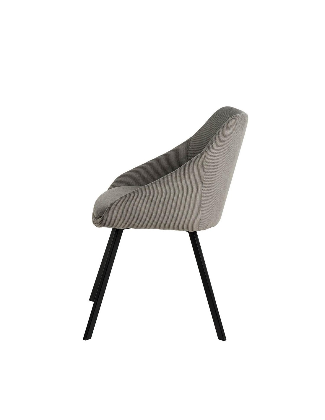 La silla ARKYN está tapizada en un suave tejido de pana en color gris claro, es agradable al tacto y fácil de limpiar, lo que la hace perfecta para el uso diario. Su diseño elegante y moderno incluye patas metálicas en color negro, que no solo añaden un toque de sofisticación, sino que también garantizan una gran estabilidad. El respaldo y el asiento curvados están diseñados para proporcionar un confort óptimo, adaptándose a la forma del cuerpo para ofrecer un soporte ergonómico. Ideal para comedores, oficinas o cualquier espacio que busque una combinación de comodidad y estilo, esta silla se integra perfectamente en una variedad de decoraciones interiores.