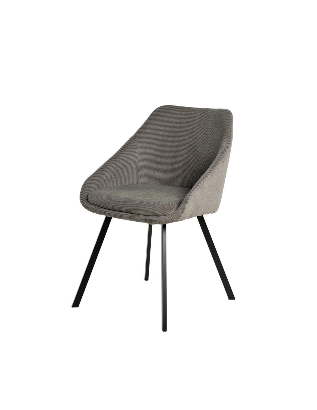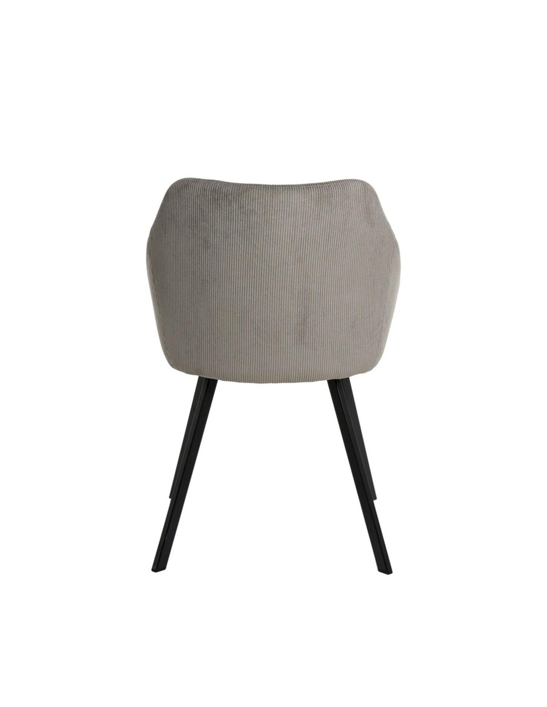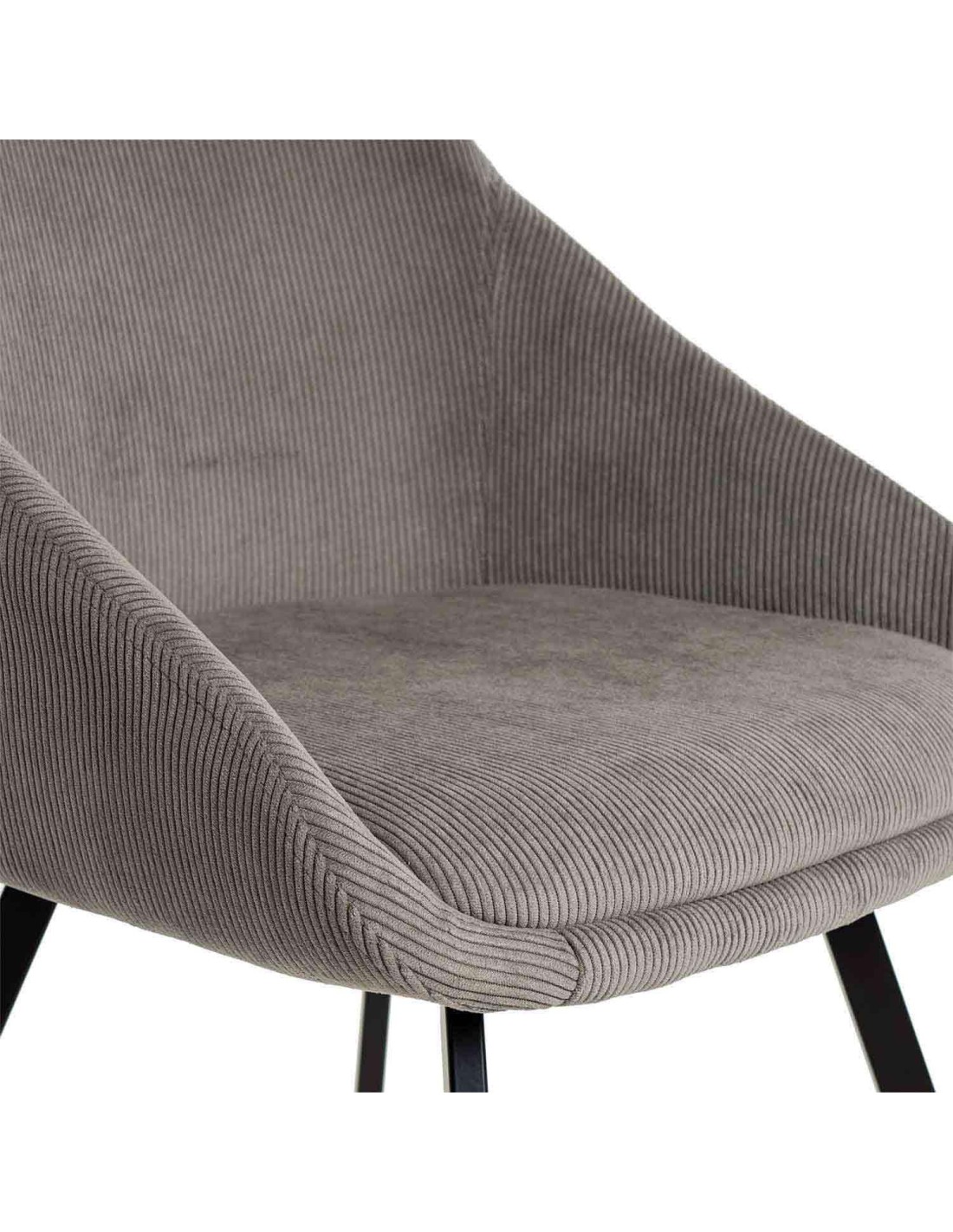 La silla ARKYN está tapizada en un suave tejido de pana en color gris claro, es agradable al tacto y fácil de limpiar, lo que la hace perfecta para el uso diario. Su diseño elegante y moderno incluye patas metálicas en color negro, que no solo añaden un toque de sofisticación, sino que también garantizan una gran estabilidad. El respaldo y el asiento curvados están diseñados para proporcionar un confort óptimo, adaptándose a la forma del cuerpo para ofrecer un soporte ergonómico. Ideal para comedores, oficinas o cualquier espacio que busque una combinación de comodidad y estilo, esta silla se integra perfectamente en una variedad de decoraciones interiores.